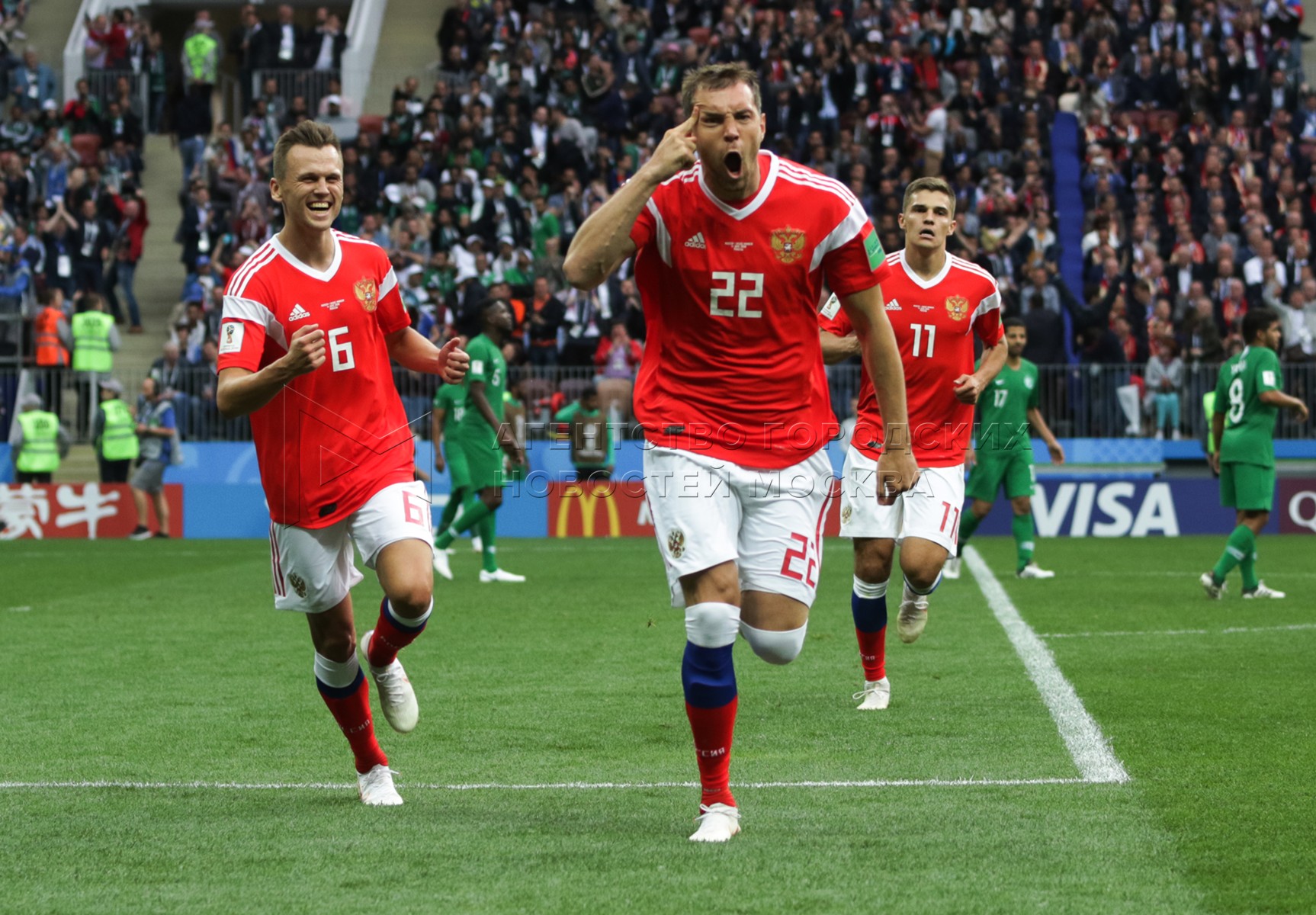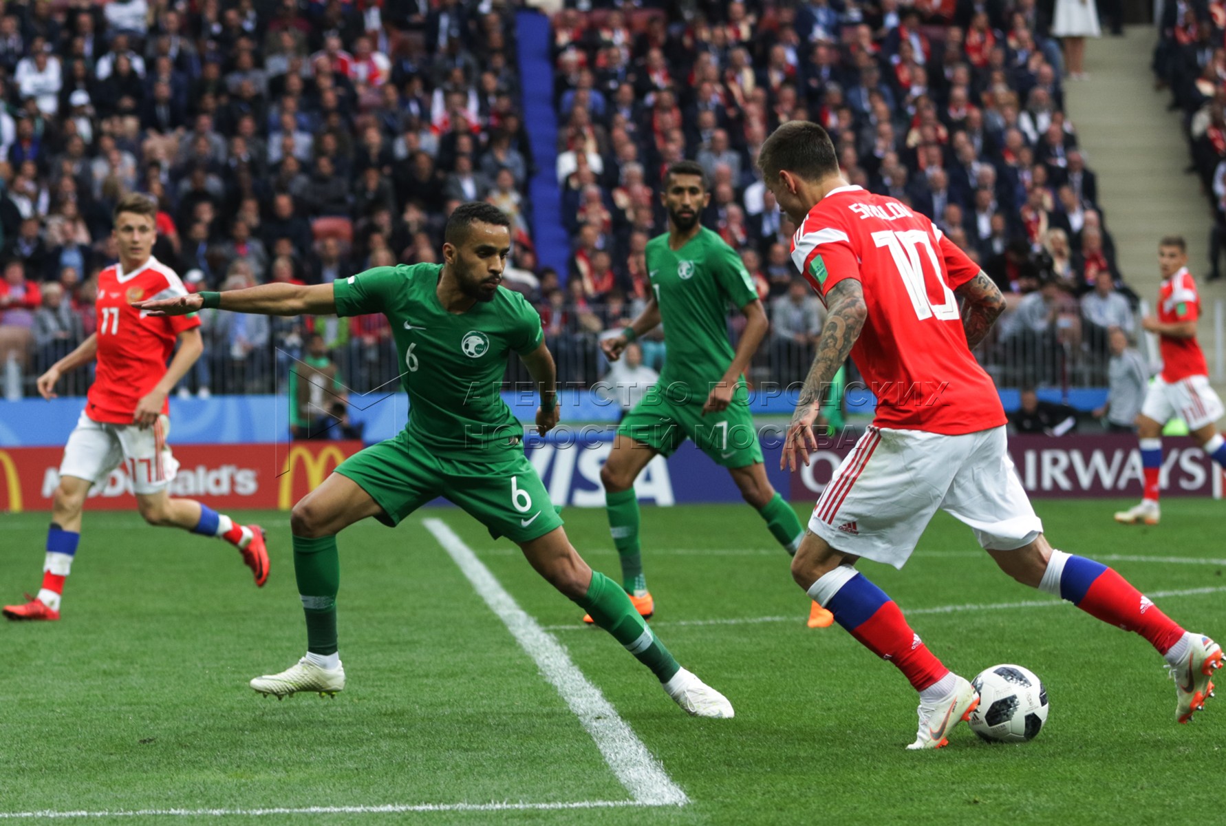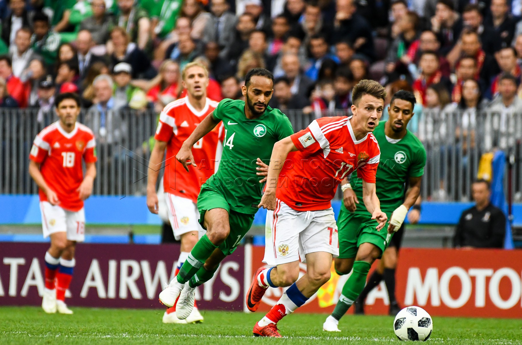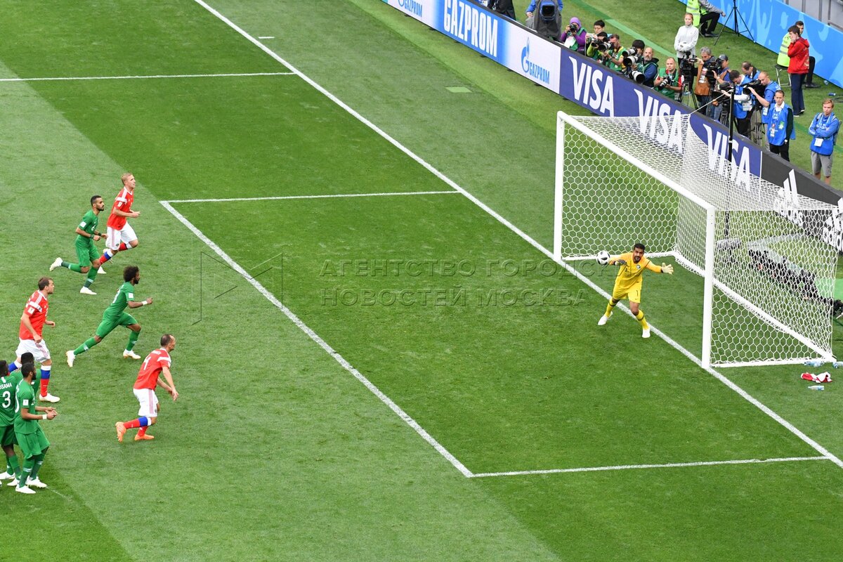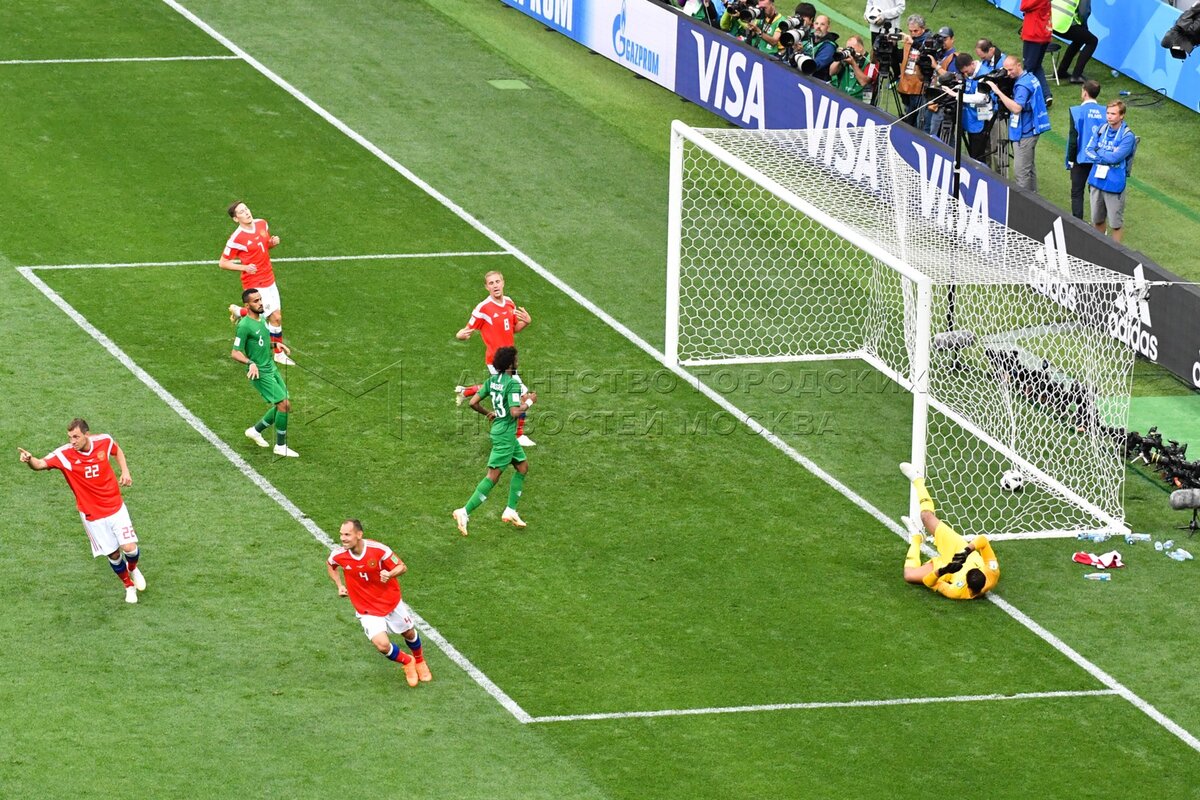 - Заголовок: Матч ЧМ-2018 между сборными России и Саудовской Аравии на стадионе «Лужники»