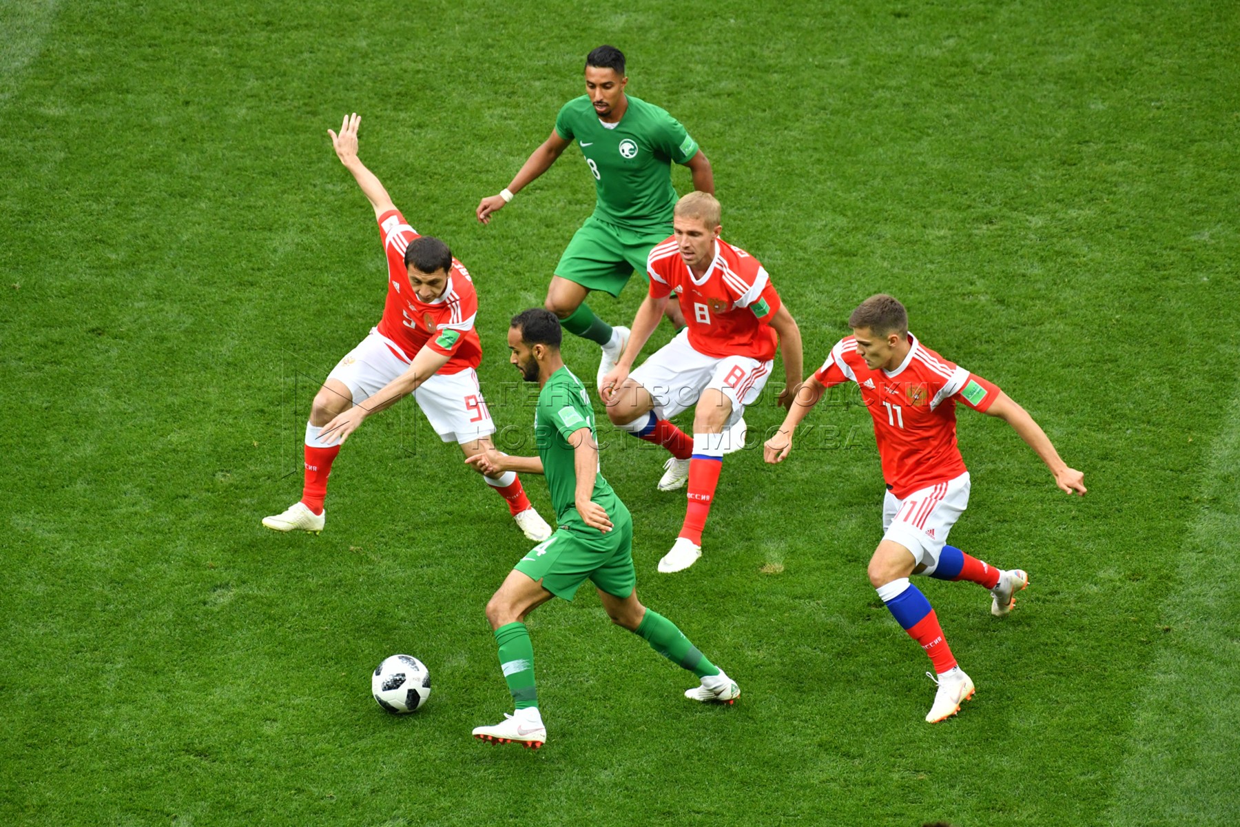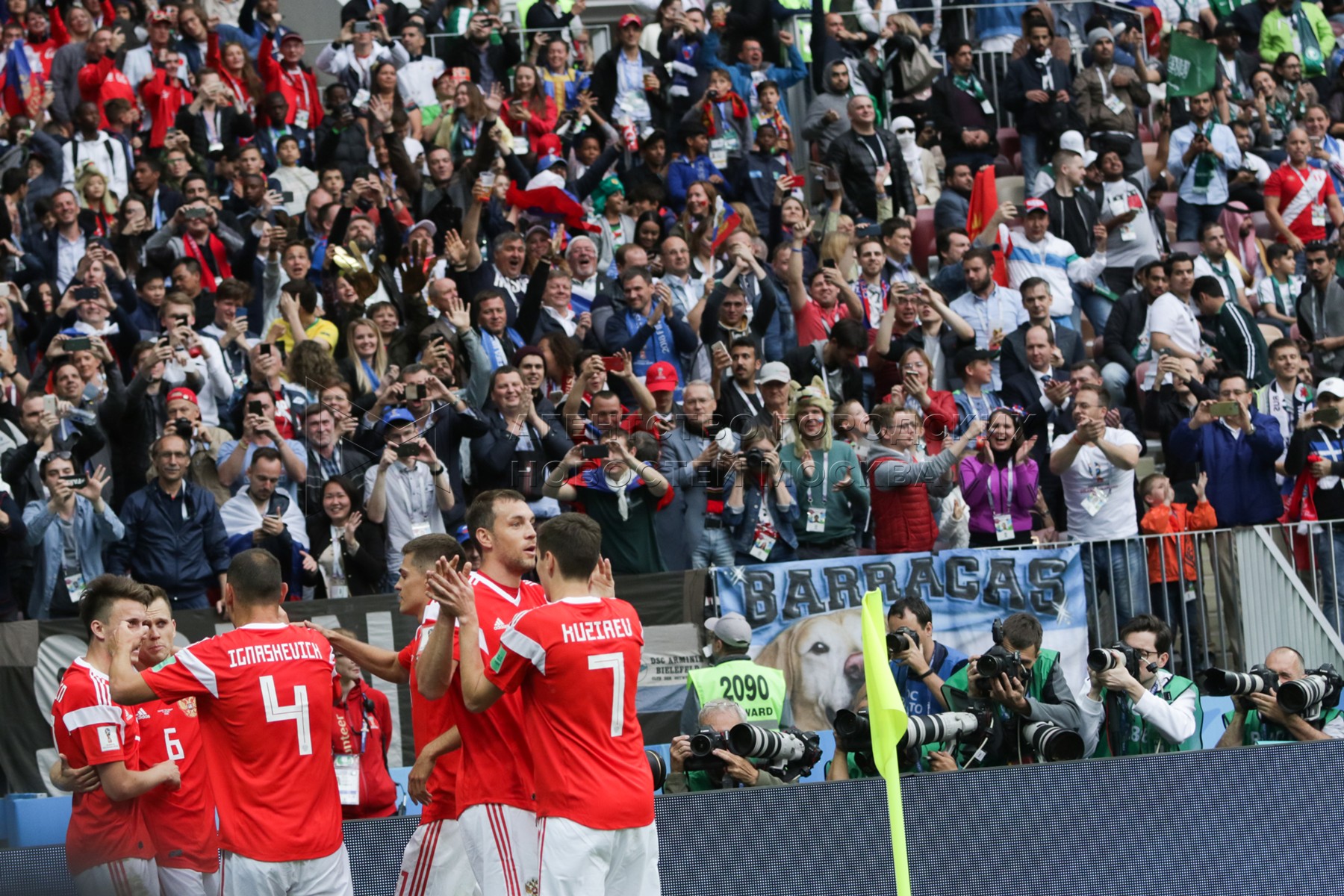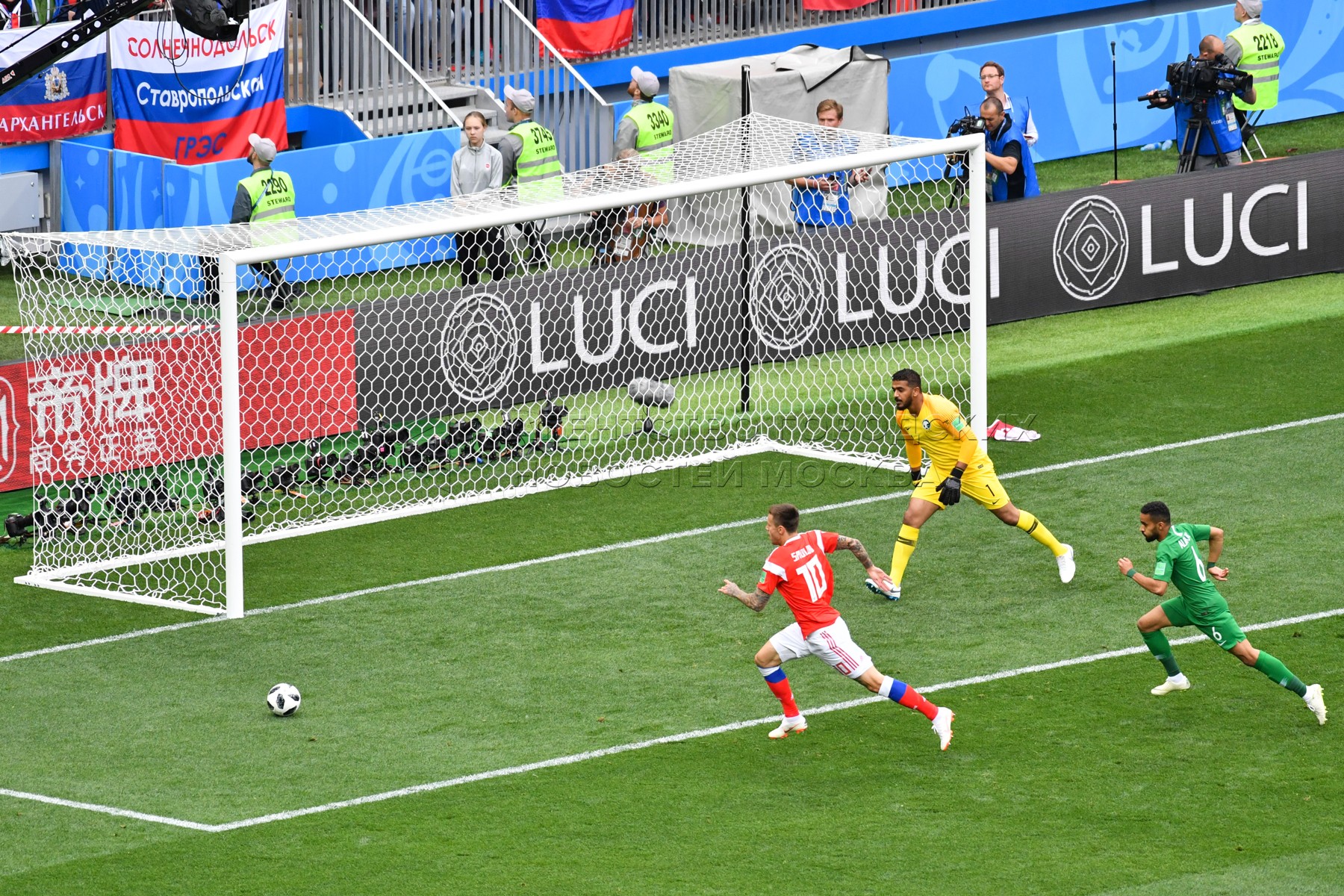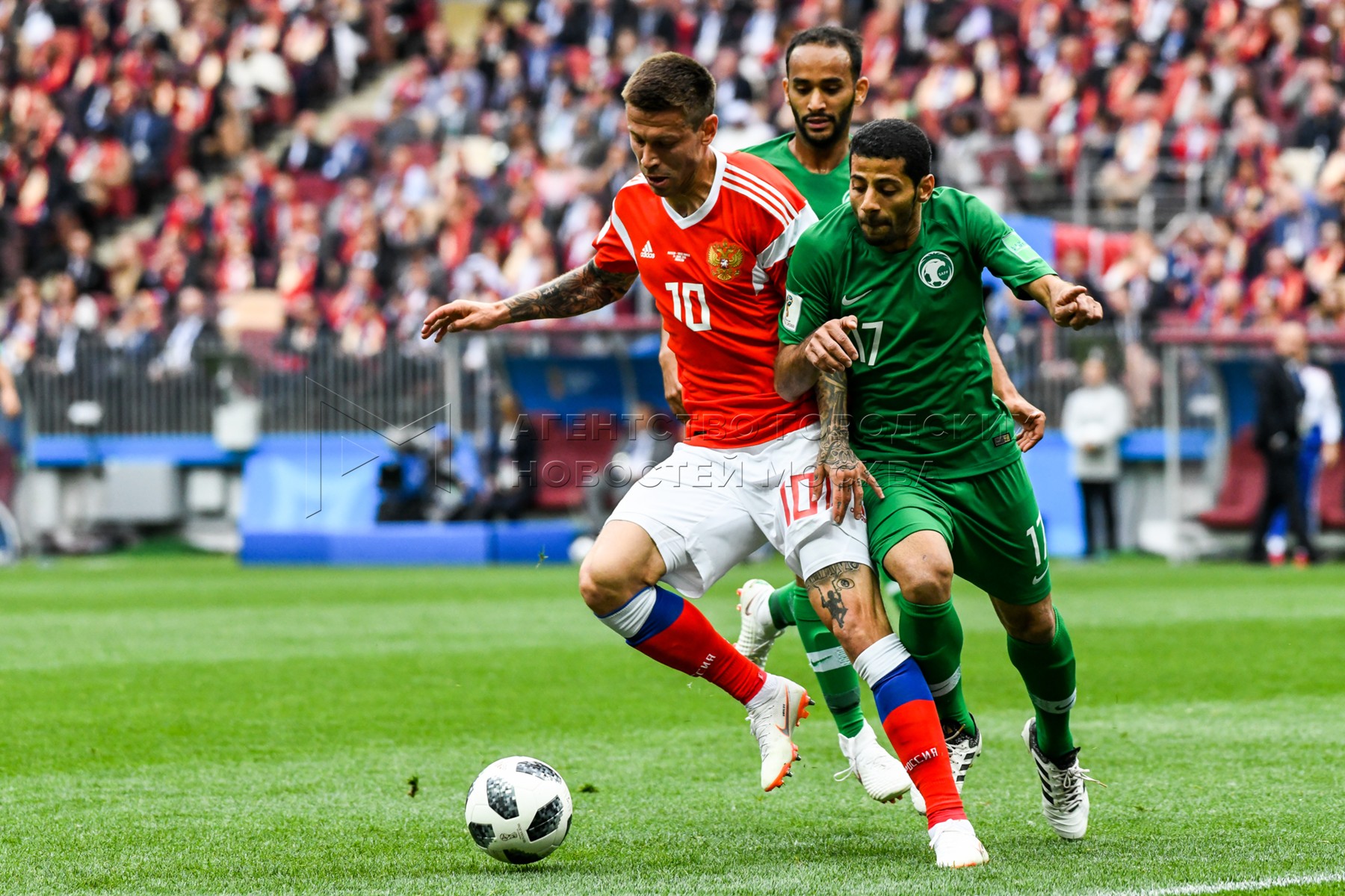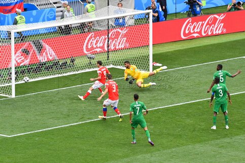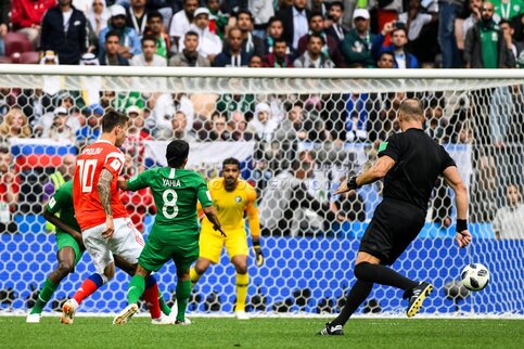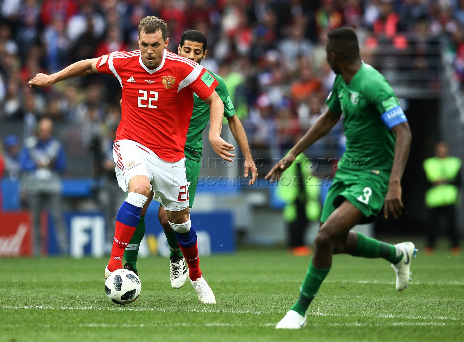 - Заголовок: Матч ЧМ-2018 между сборными России и Саудовской Аравии на стадионе «Лужники»