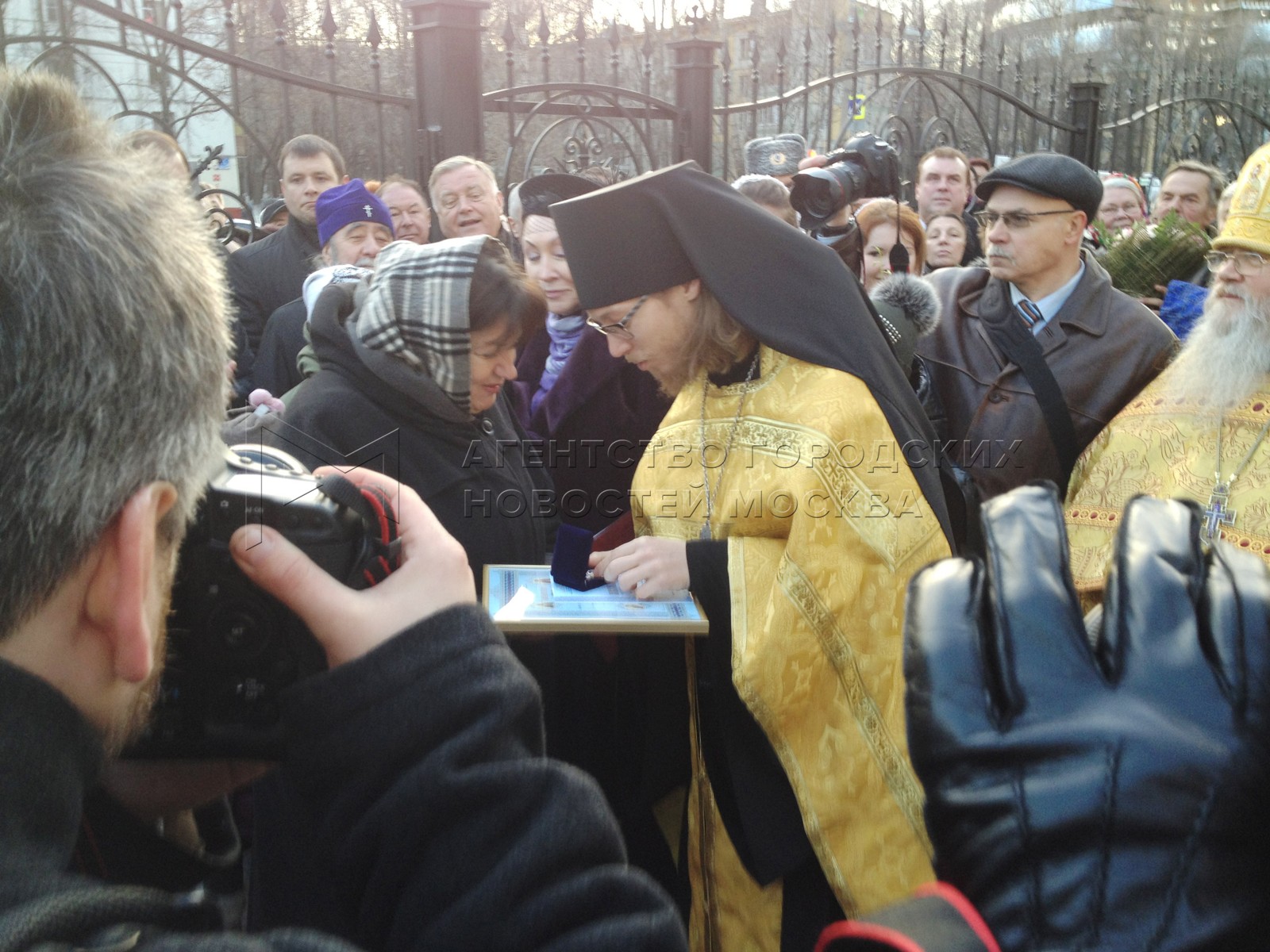 • Описание: Супруга главы РЖД и попечительского совета Фонда Андрея Первозванного Владимира Якунина (слева) на открытии памятника великому князю Дмитрию Донскому, его супруге Ефросинии и их детям.