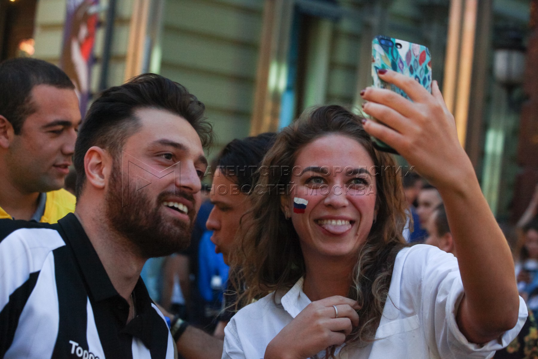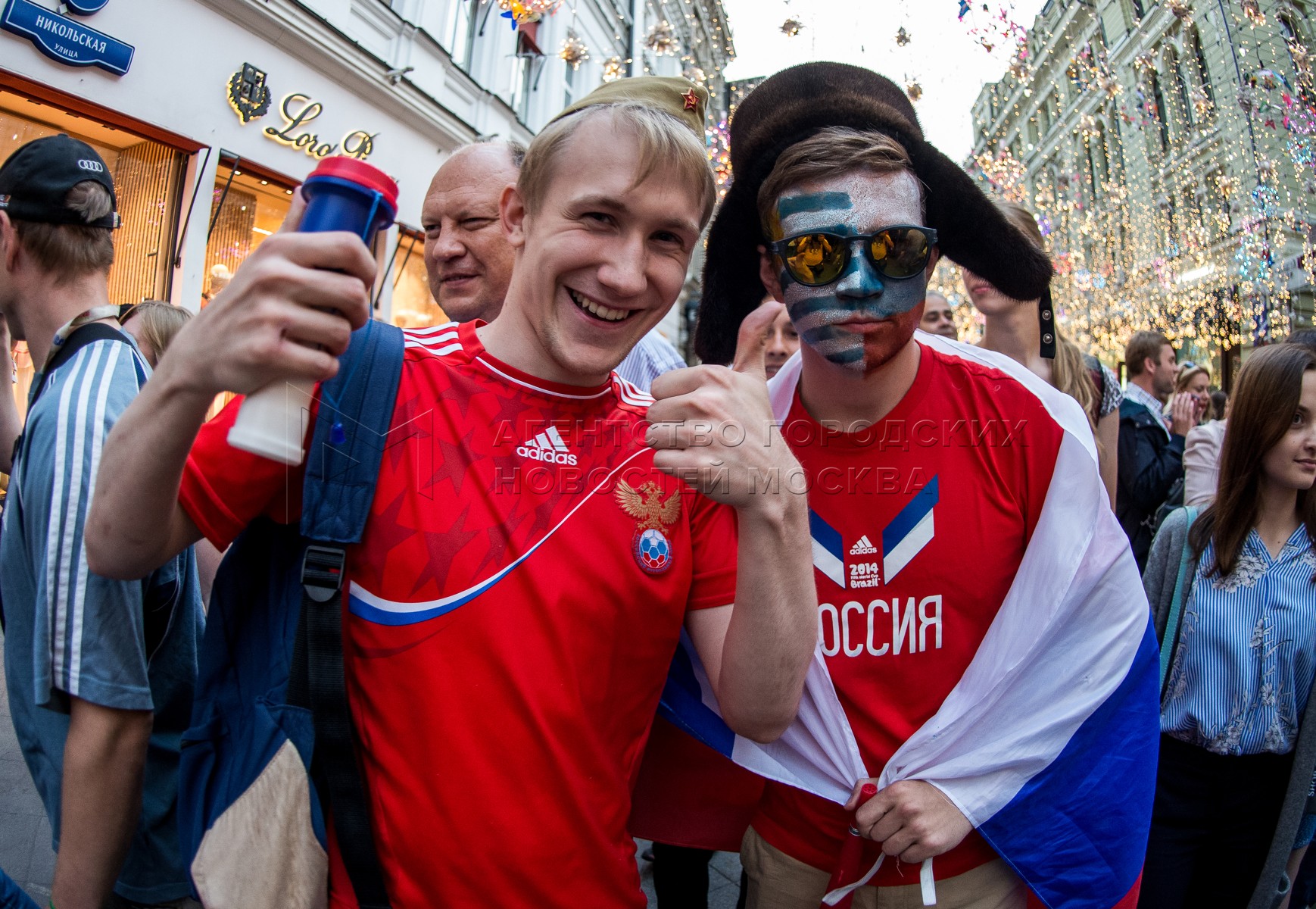 Болельщики в Москве после матча чемпионата мира по футболу 2018 г. между сборными...