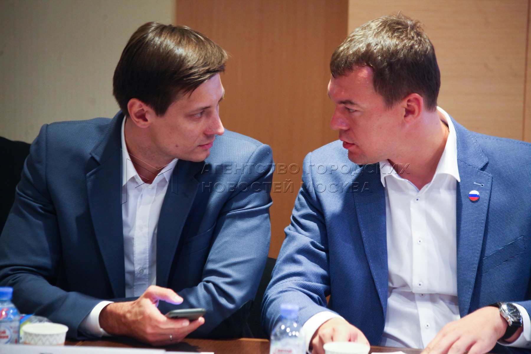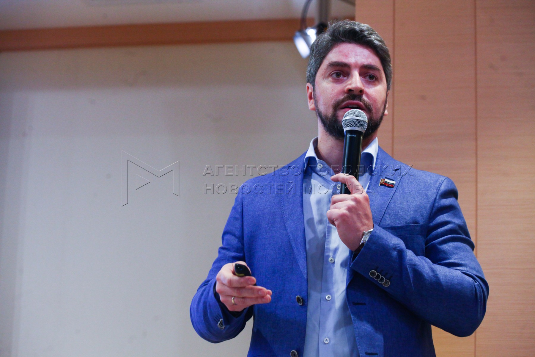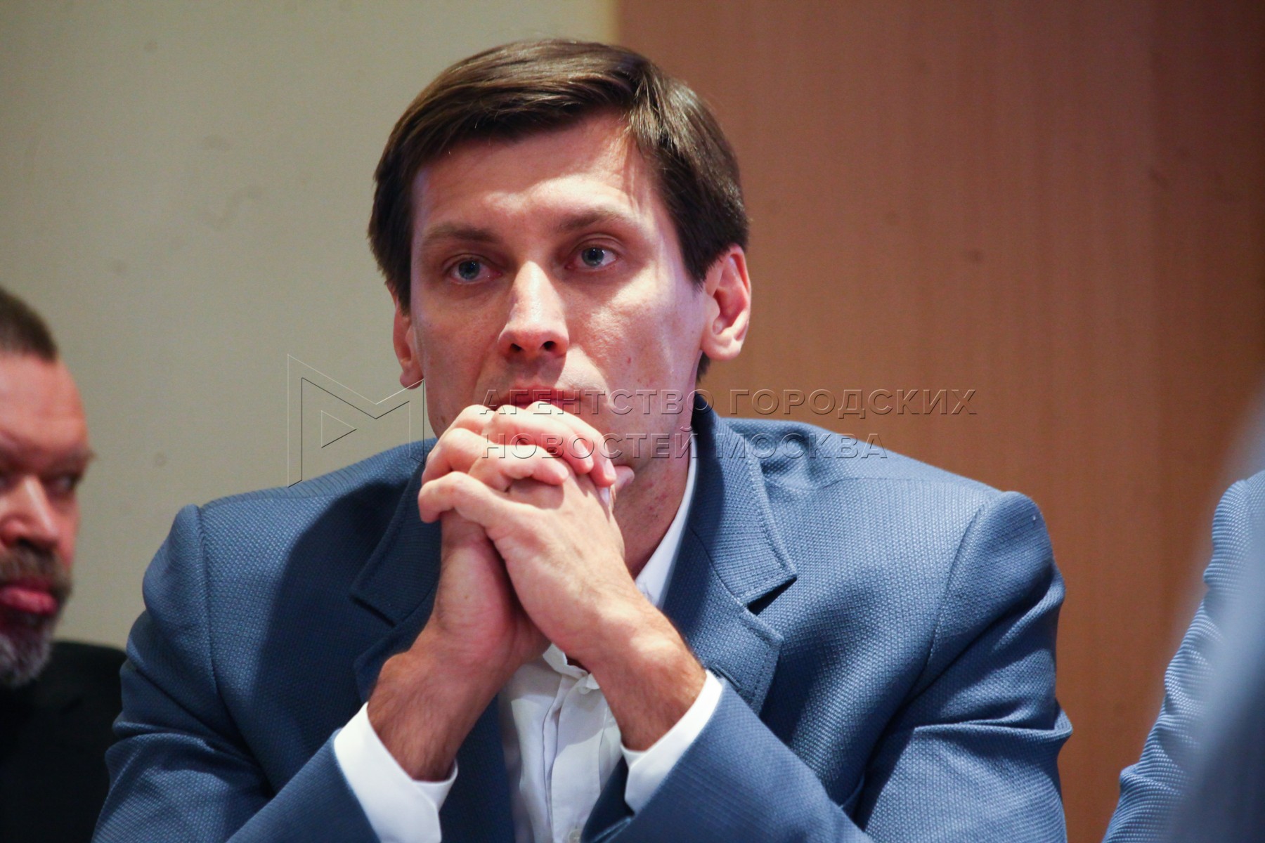 Кандидат от регионального отделения партии «Гражданская инициатива» Дмитрий Гудков во время встречи муниципальных депутатов с кандидатами на должность мэра Москвы.