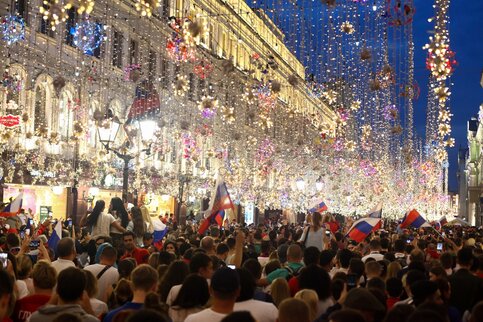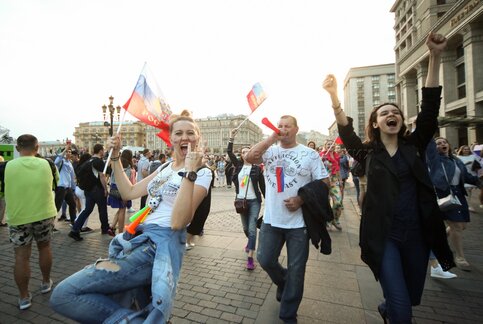 Болельщики после матча плей-офф чемпионата мира по футболу 2018 г. между сборными России и Испании. Автор фото: Сергей Киселев.