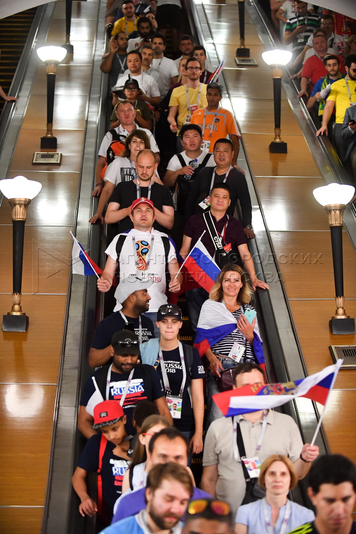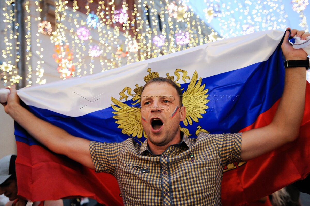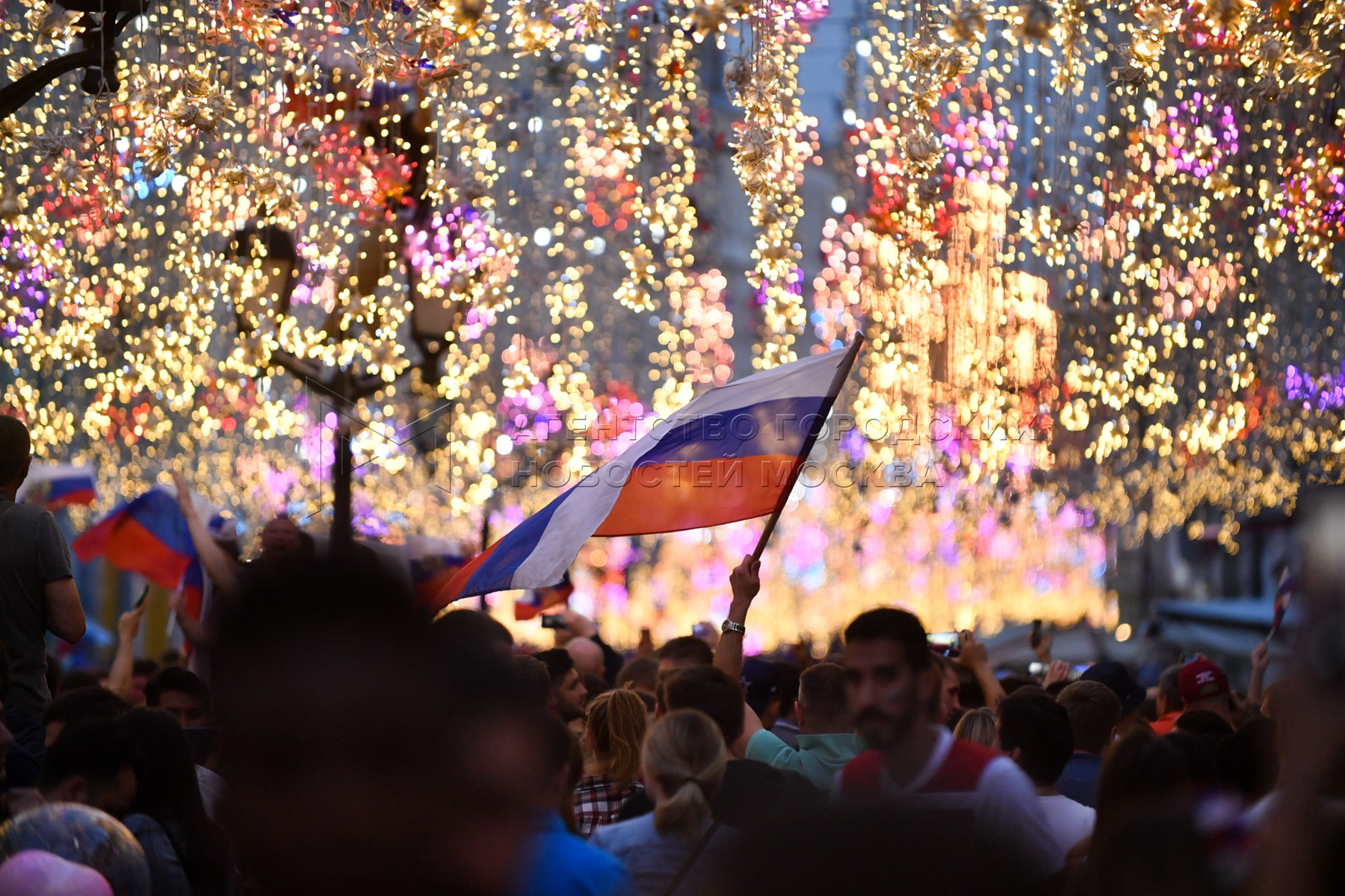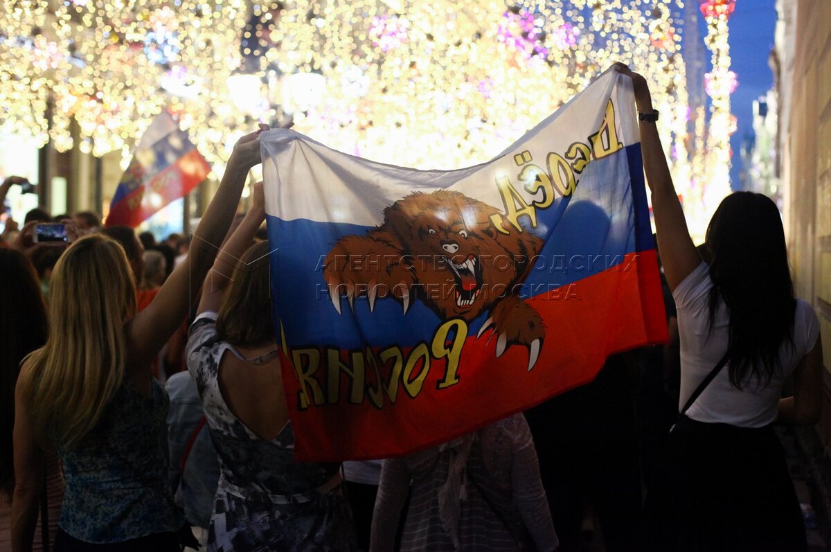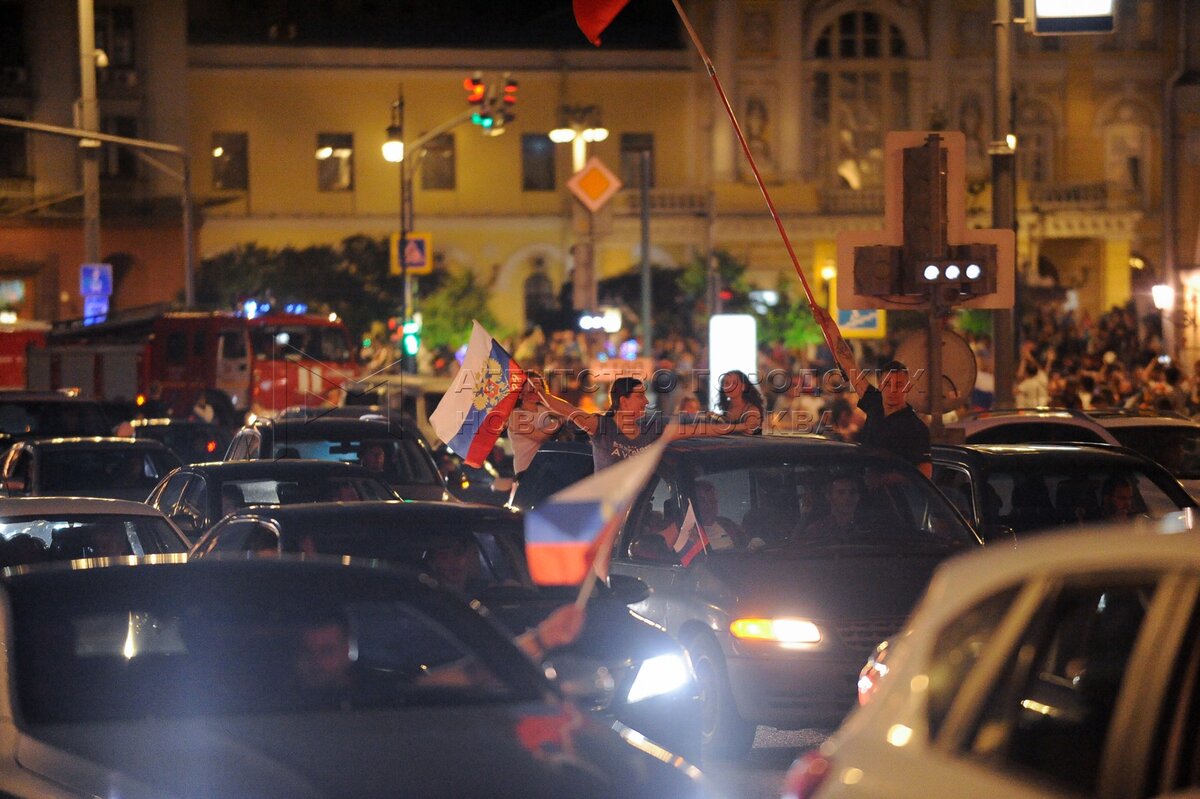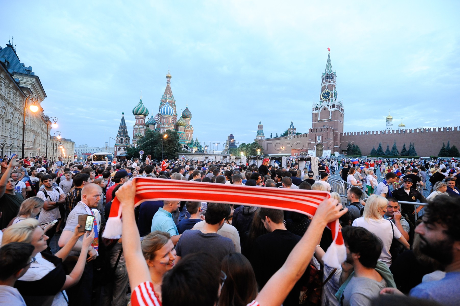 • Описание: Болельщики после матча плей-офф чемпионата мира по футболу 2018 г. между сборными России и Испании. Автор фото: Сергей Киселев.