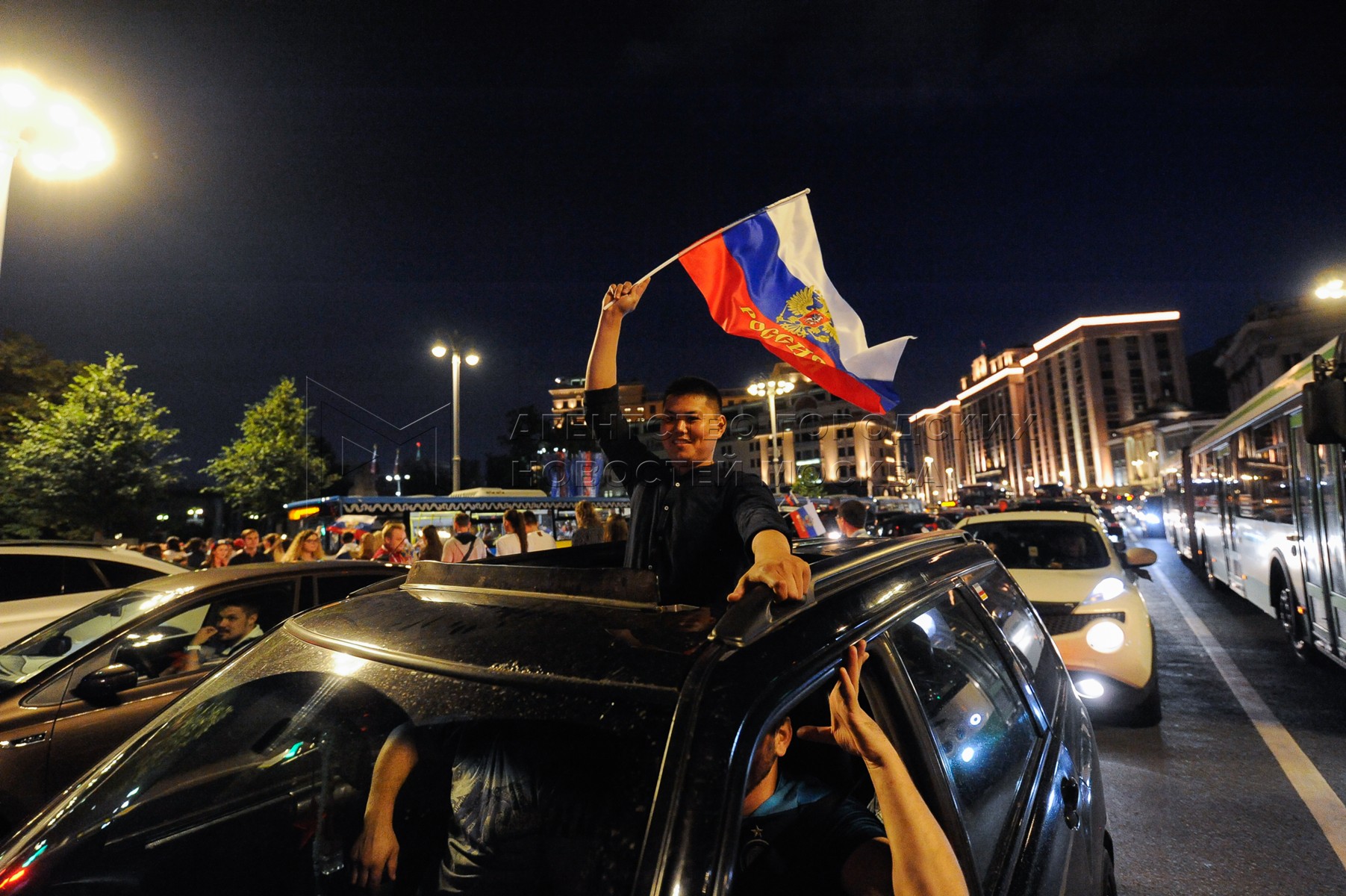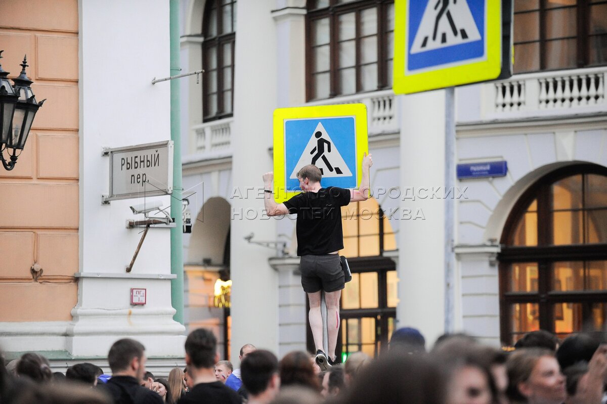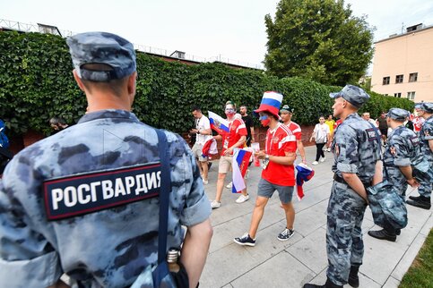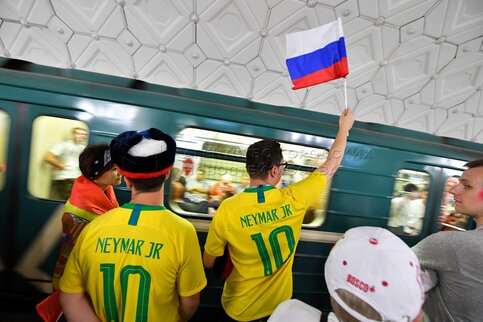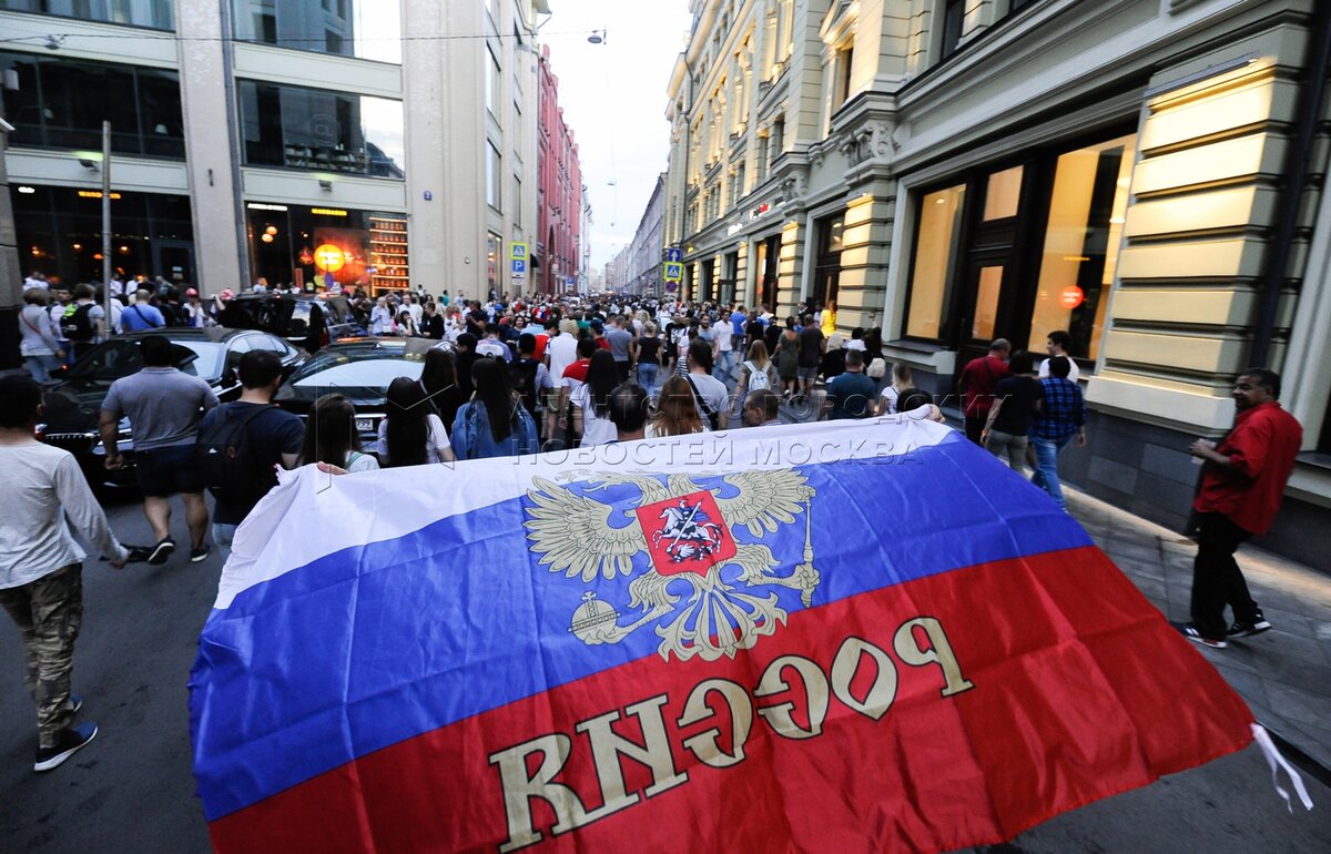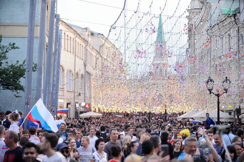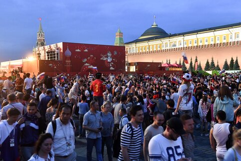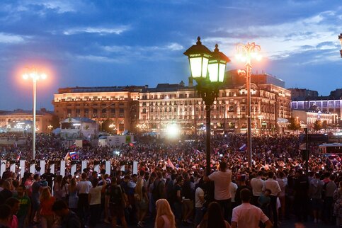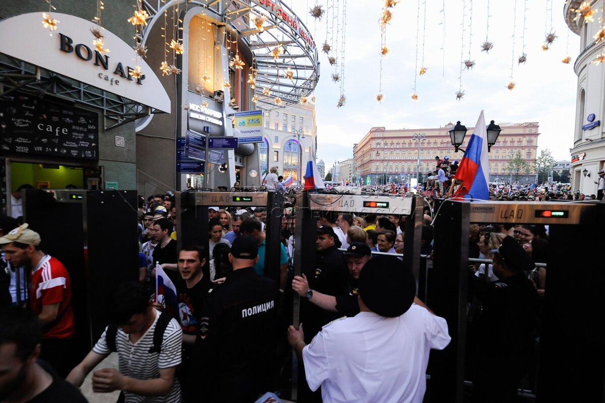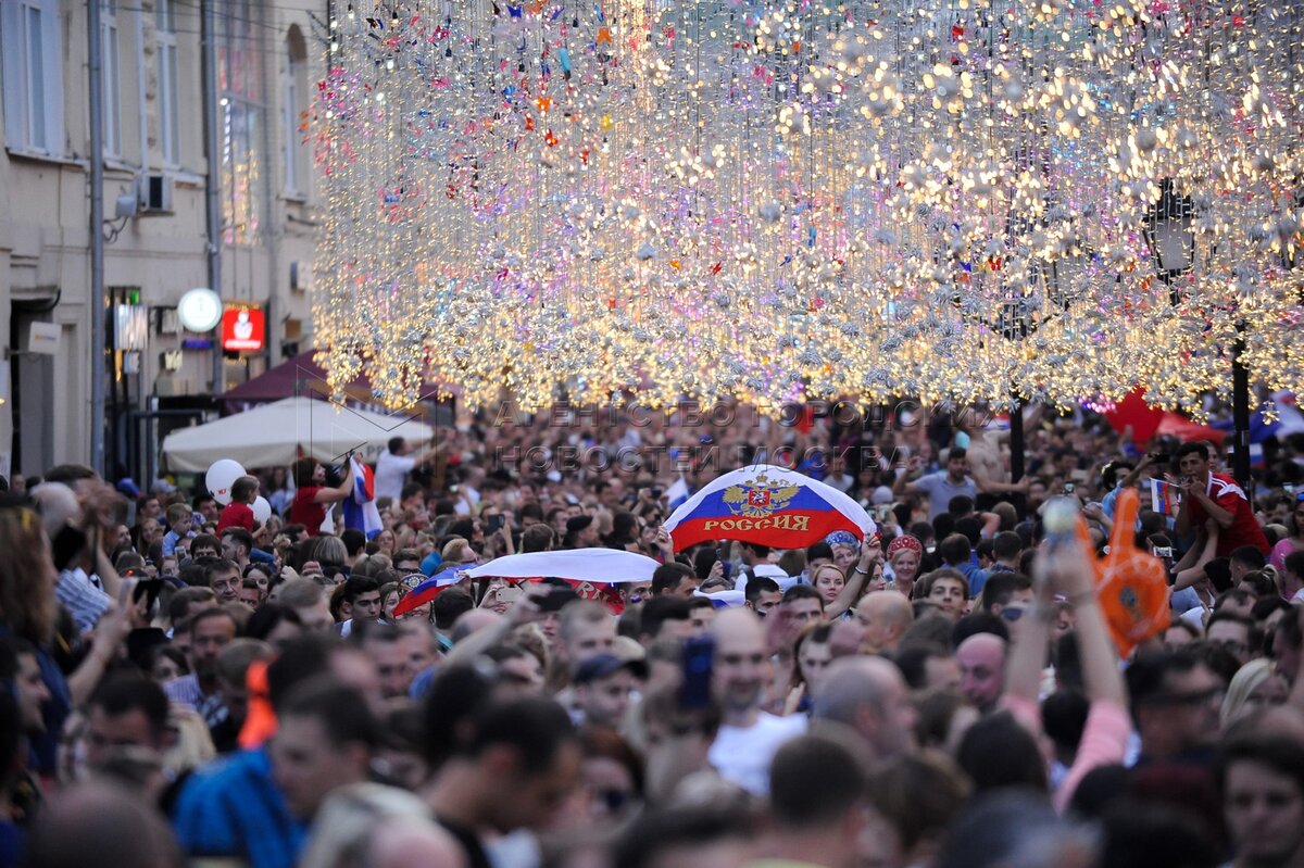 • Описание: Болельщики после матча плей-офф чемпионата мира по футболу 2018 г. между сборными России и Испании. Автор фото: Сергей Киселев.