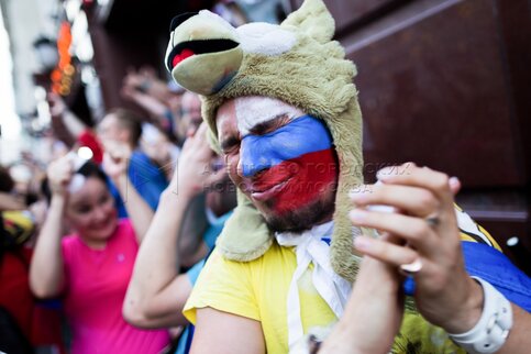Болельщики после матча плей-офф чемпионата мира по футболу 2018 г. между сборными...