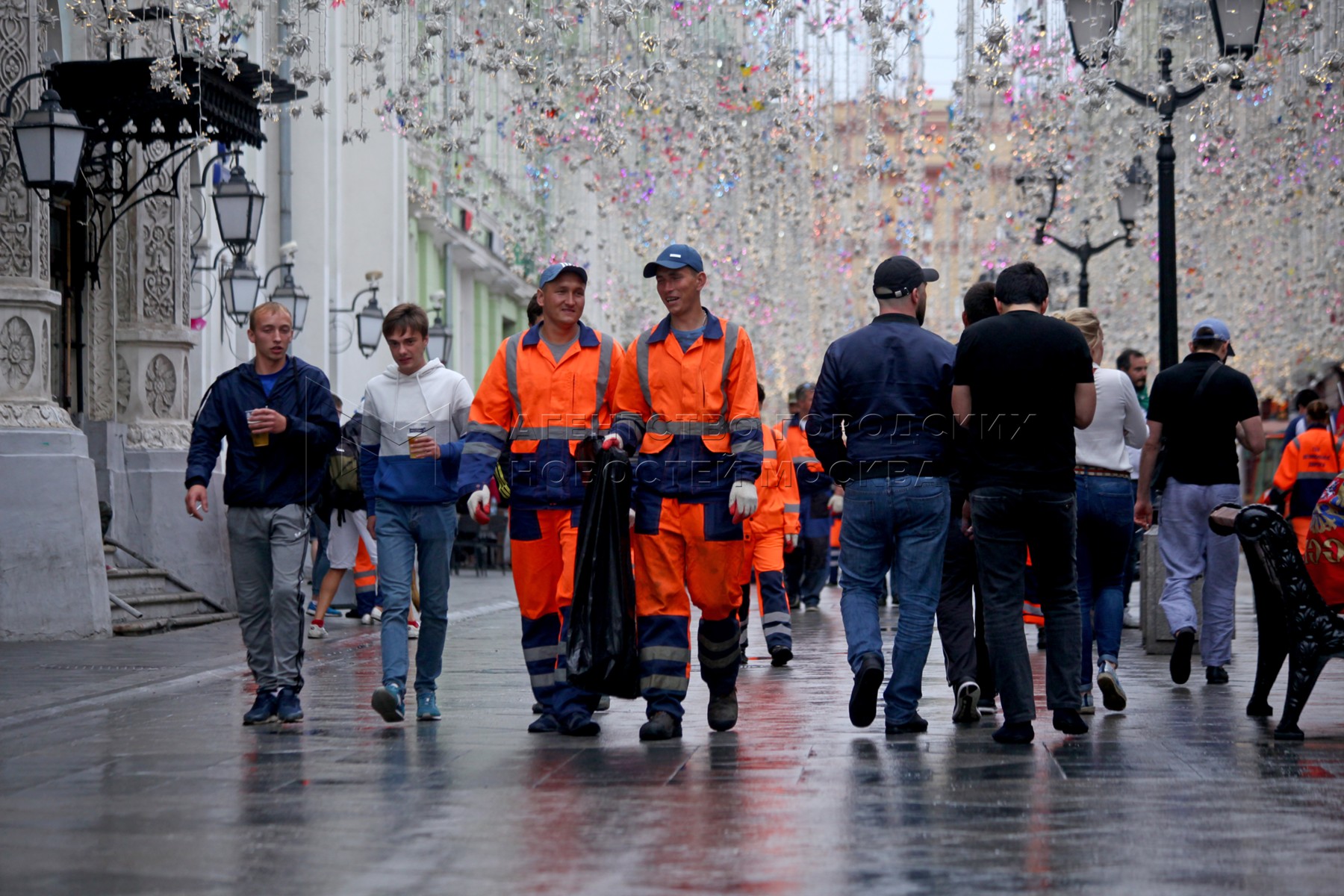 Уборка в центре столицы после празднования болельщиками победы сборной России в м...