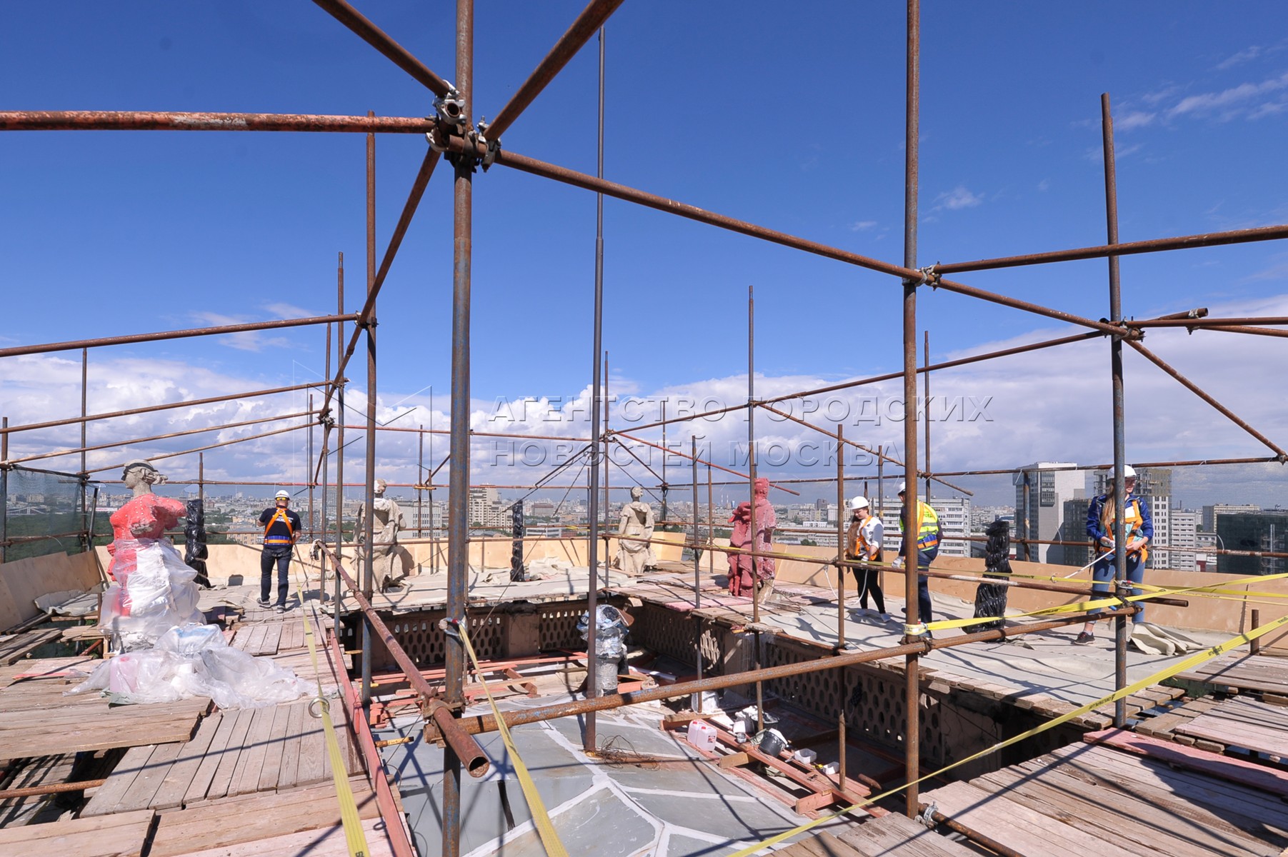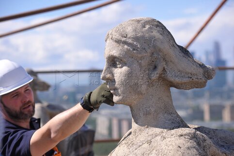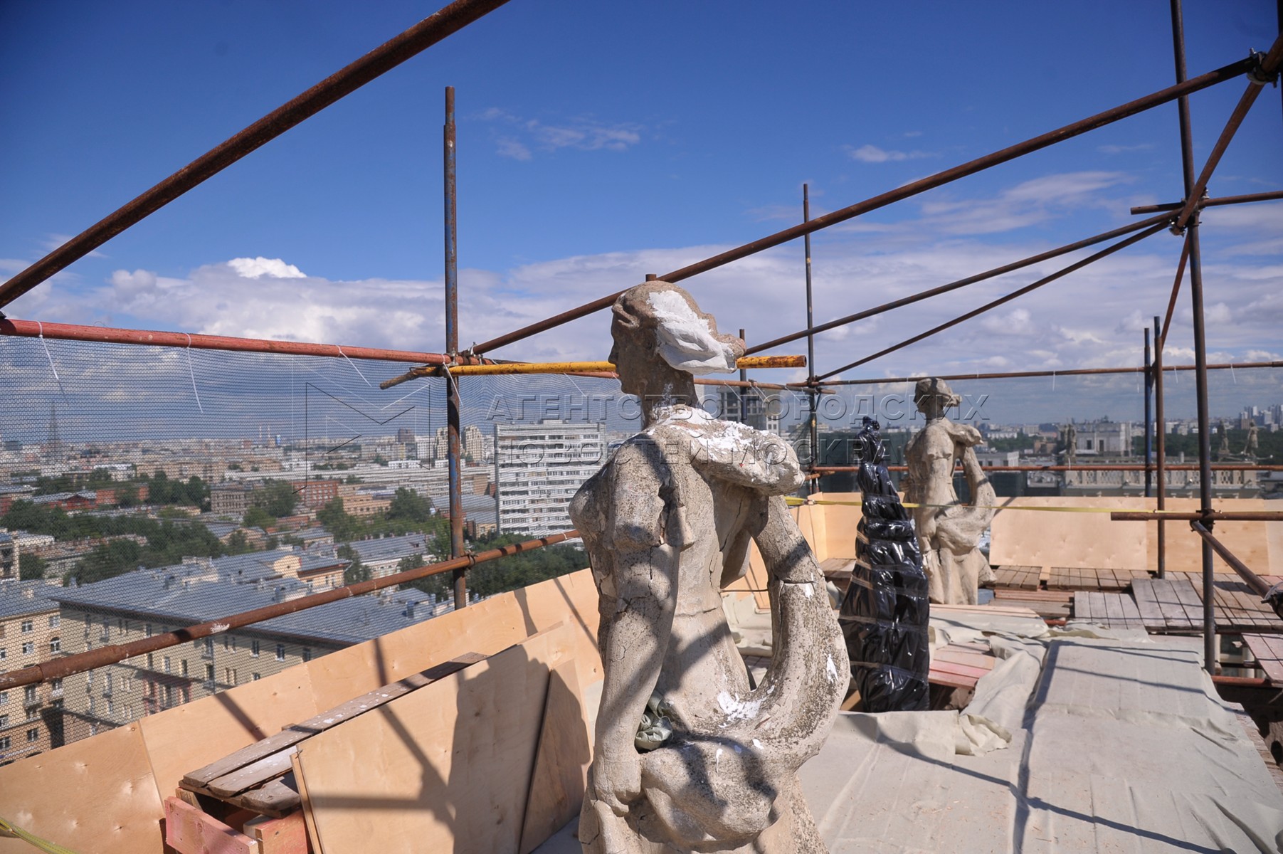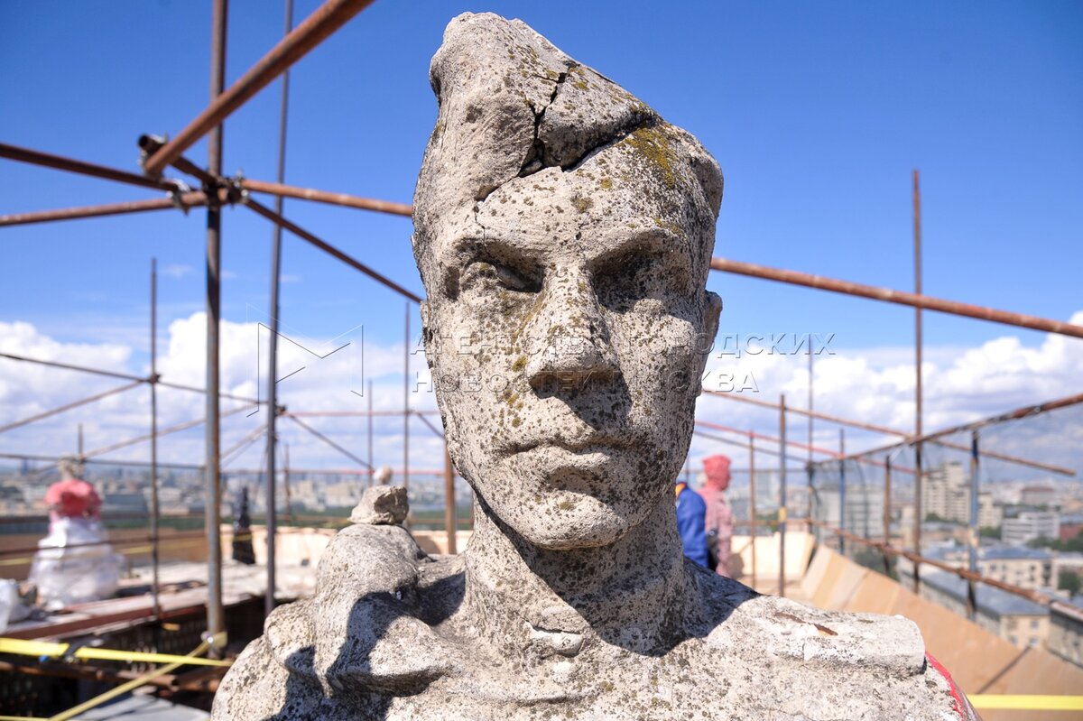 • Описание: Начало работ по реставрации 16 скульптур «Дома у Калужской заставы».