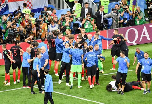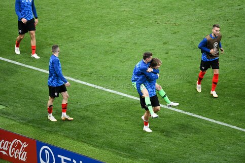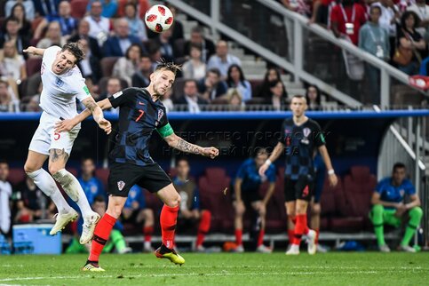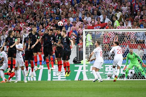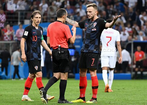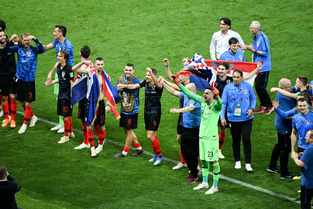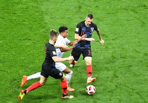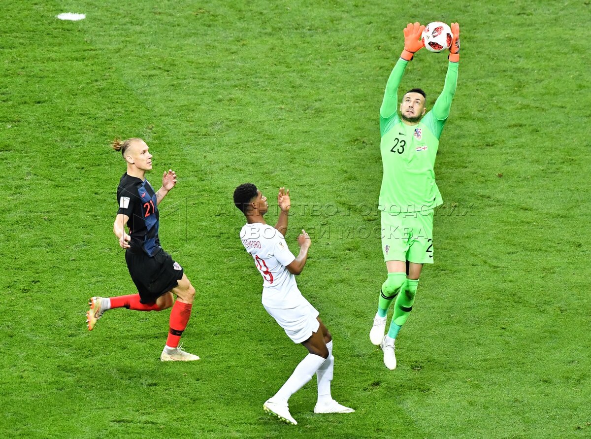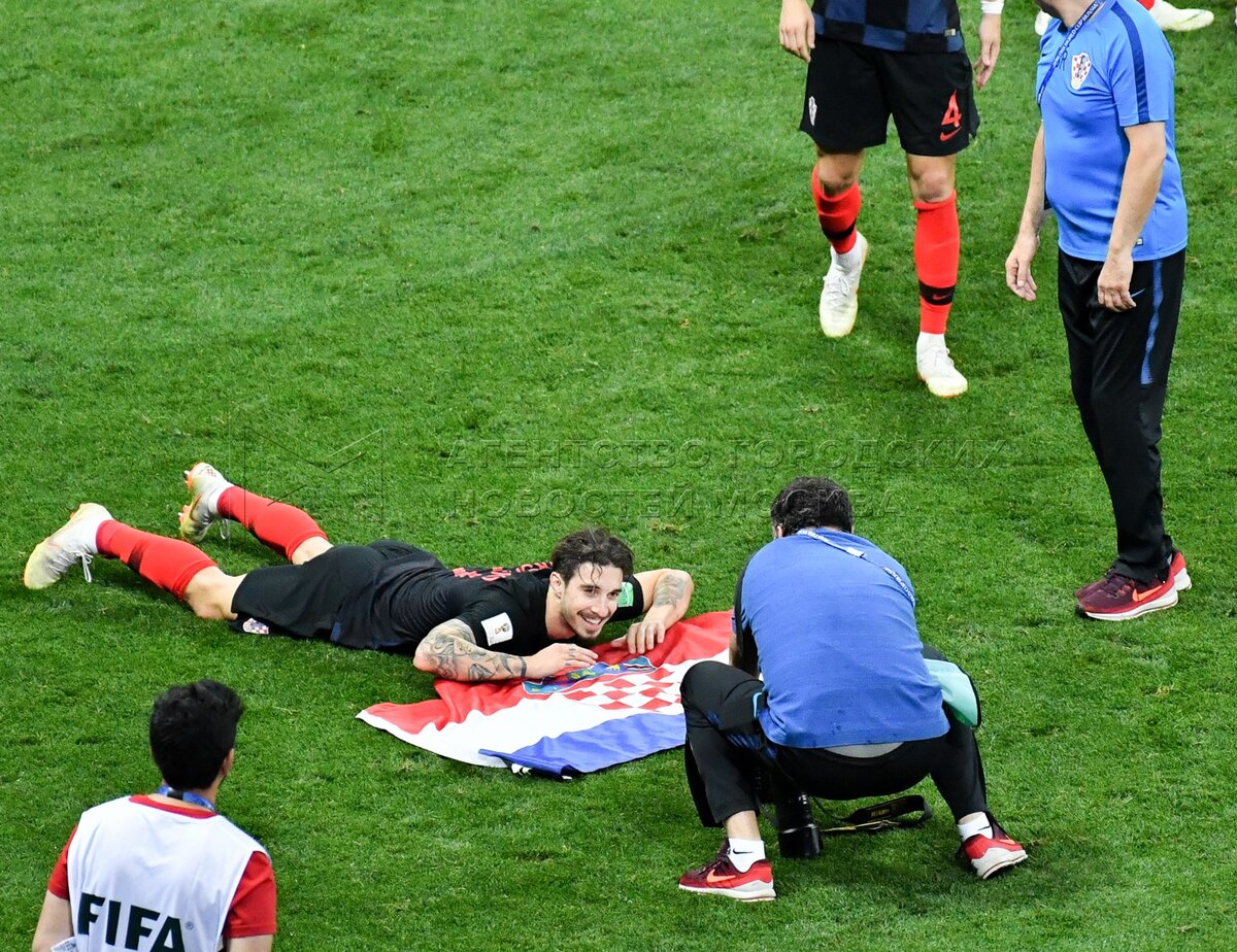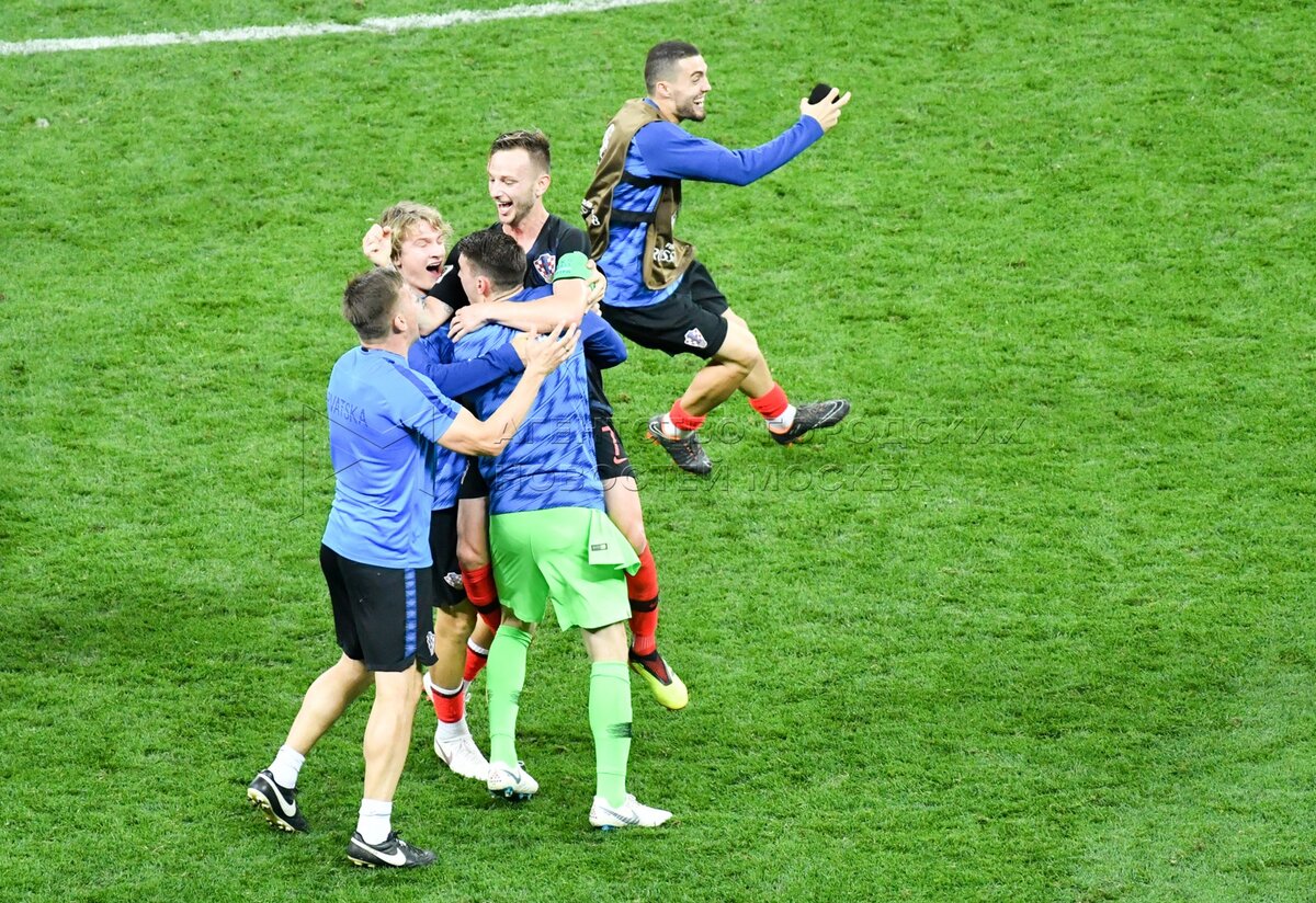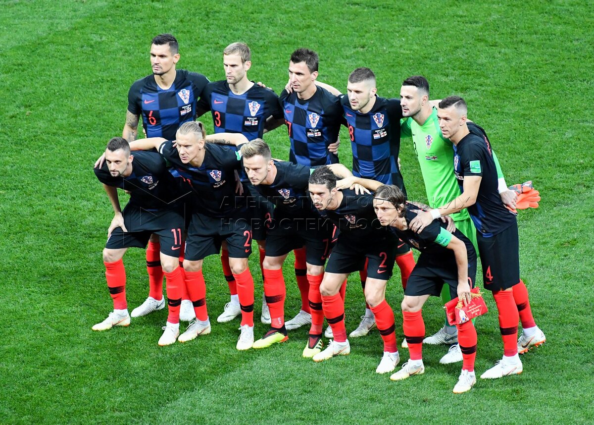 - Описание: Игроки сборной Хорватии перед Марцело Брозович, Домагой Вида, Иван Ракитич, Шиме Врсалько, Лука Модрич (слева направо на первом плане), Деян Ловрен, Иван Стринич, Марио Манджукич, Анте Ребич, Вратарь Даниел Субашич, Иван Перишич (слева направо на втором плане) перед началом матча чемпионата мира по футболу между сборными Хорватии и Англии на стадионе «Лужники». Автор фото: Сергей Киселев.