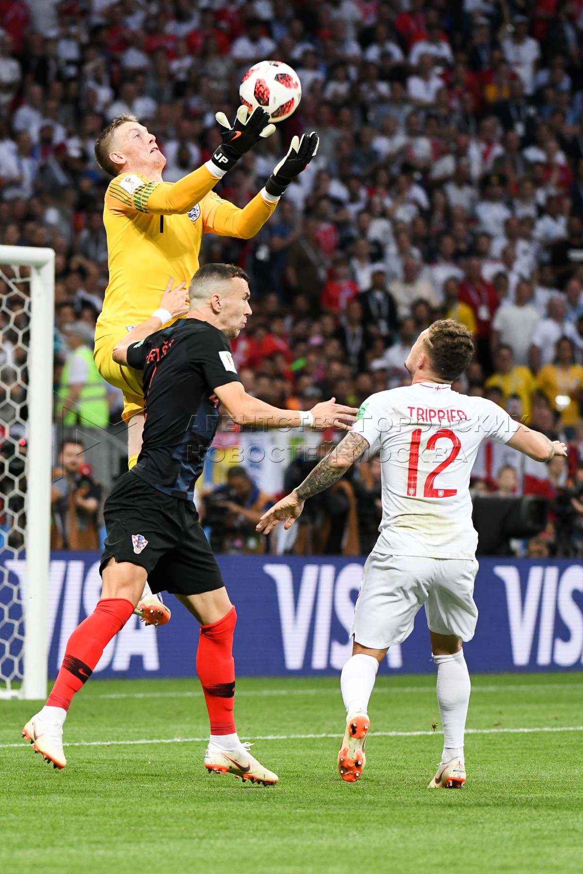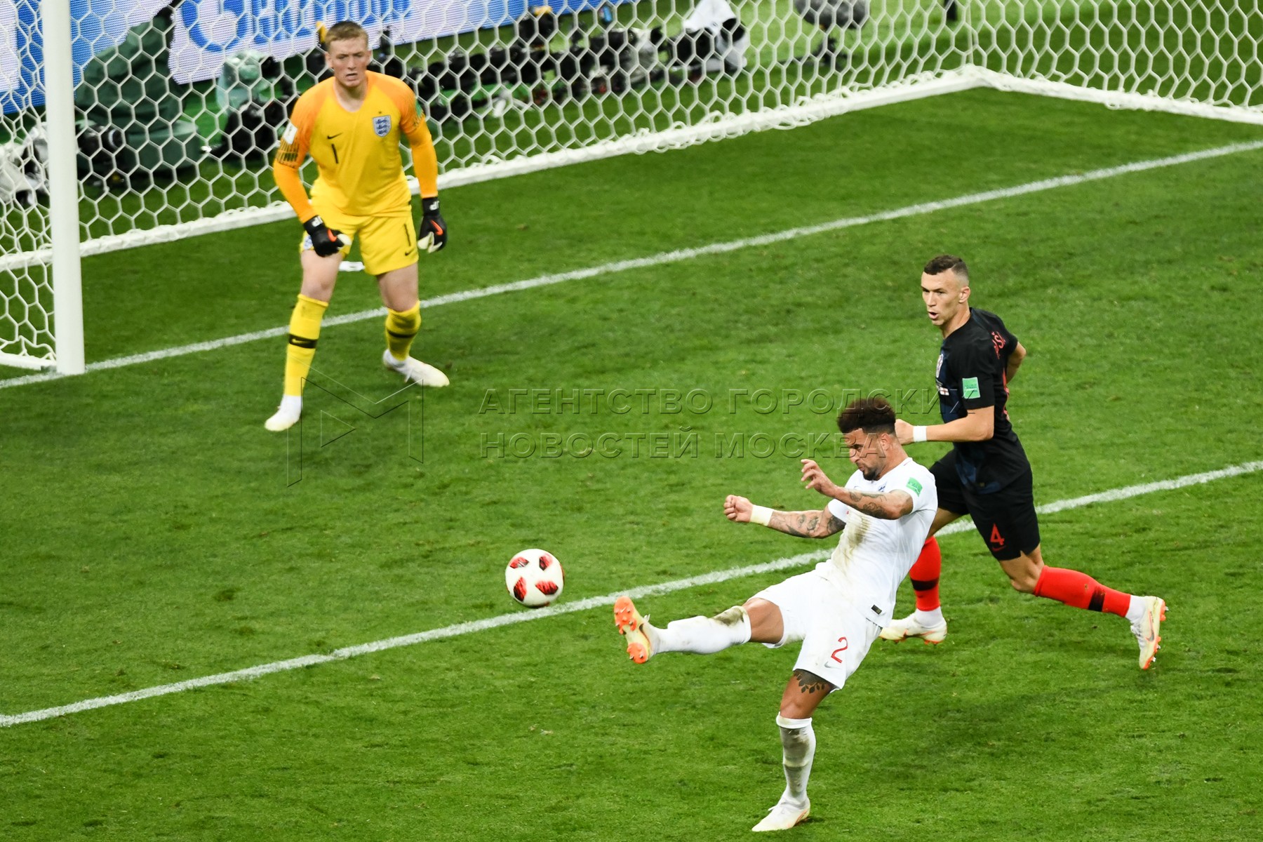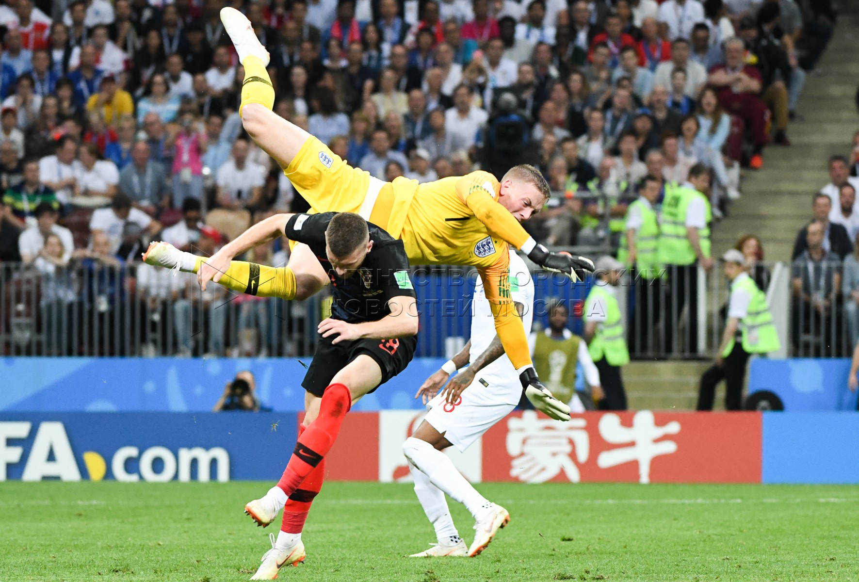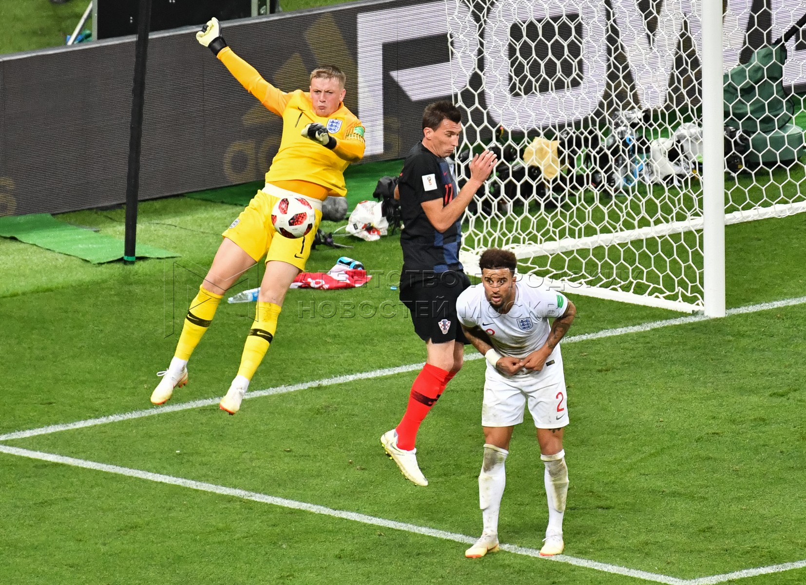 Вратарь сборной Англии Джордан Пикфорд (слева), игрок сборной Хорватии Марио Ман...