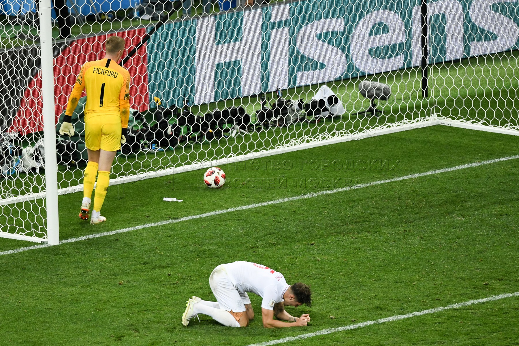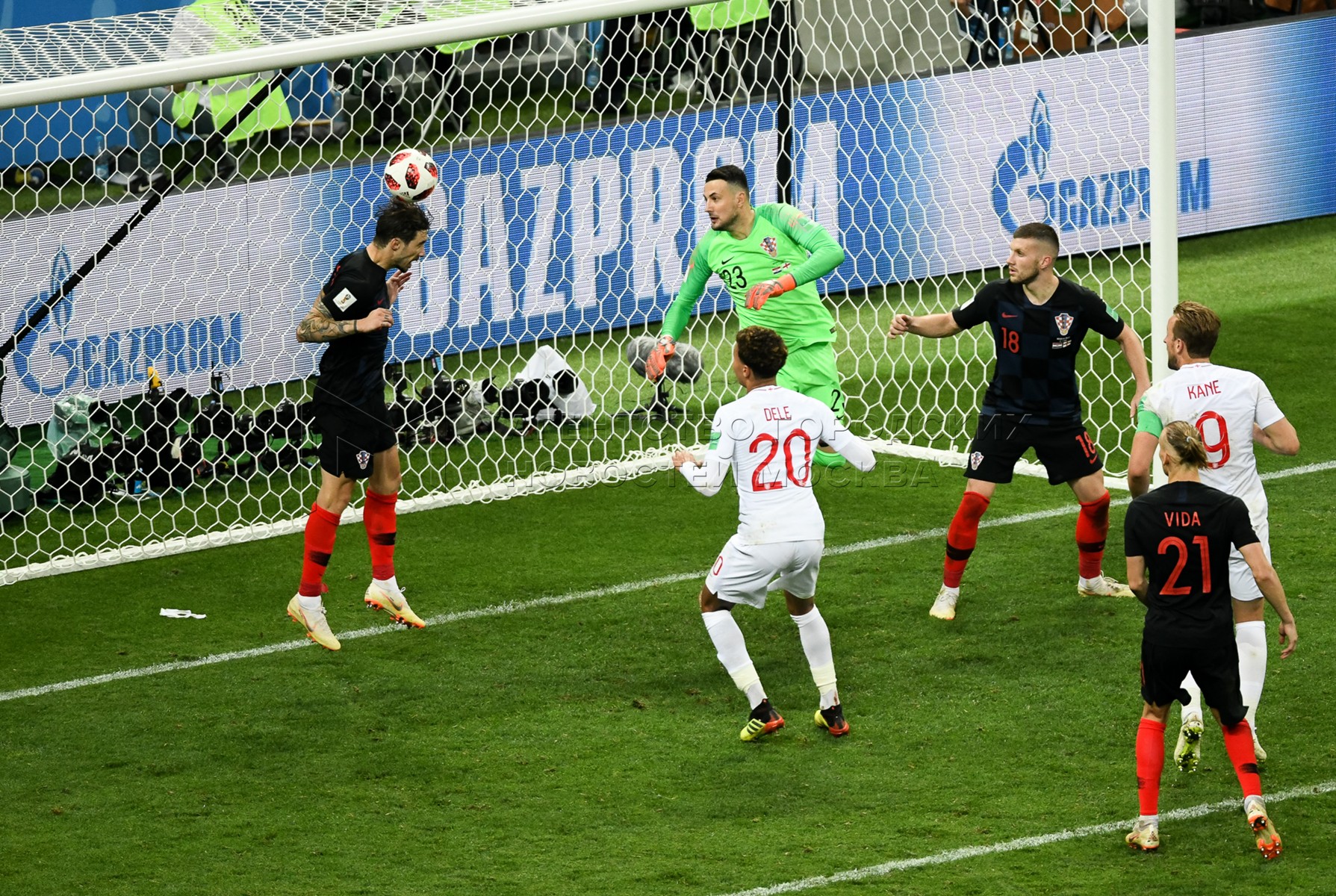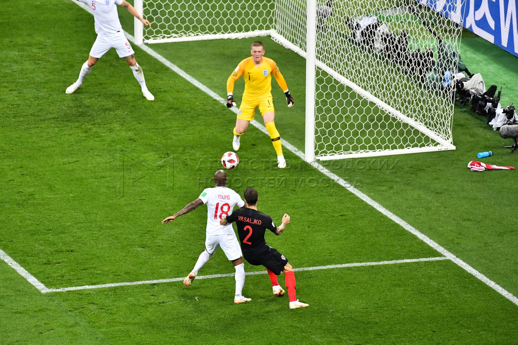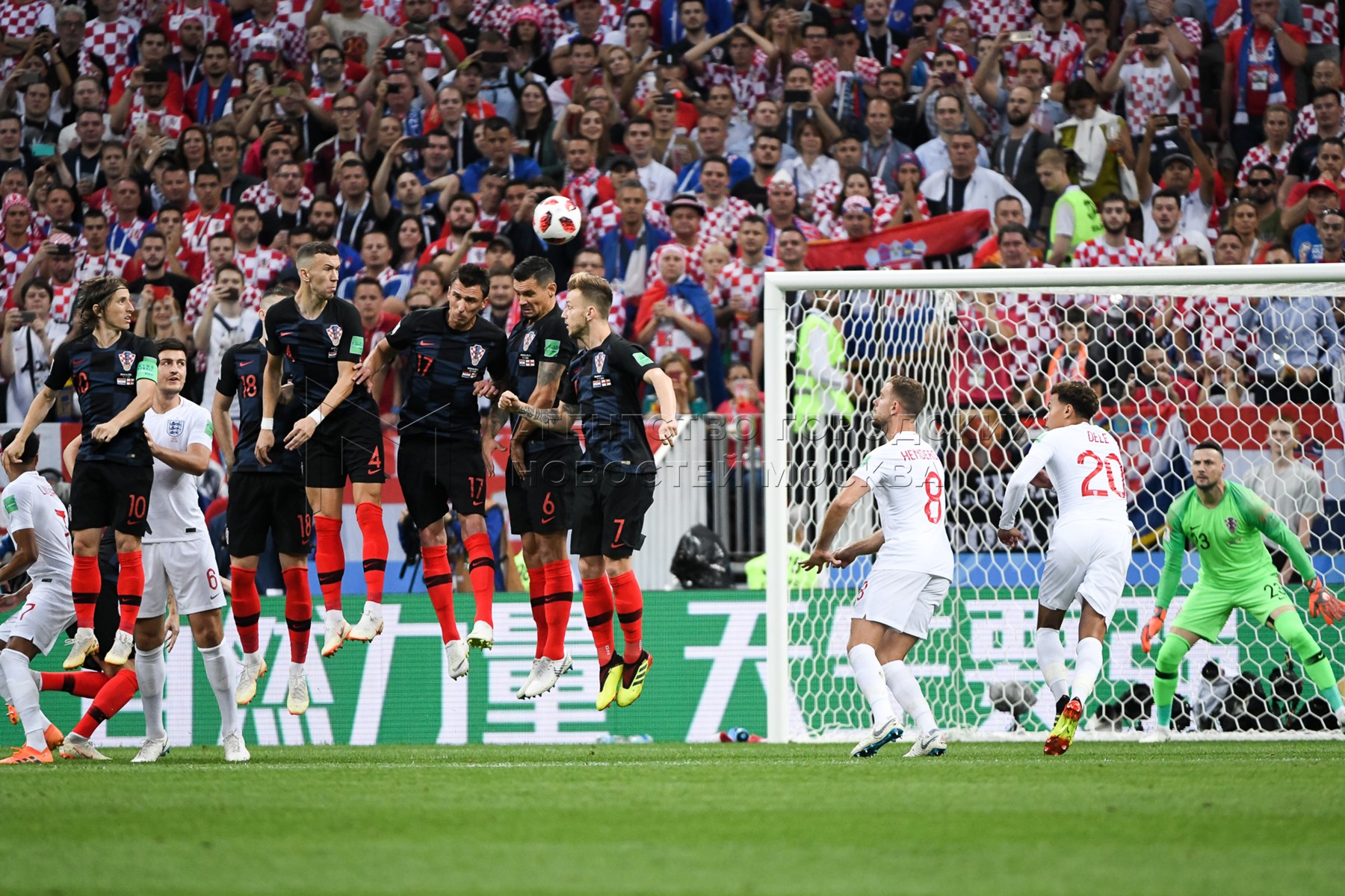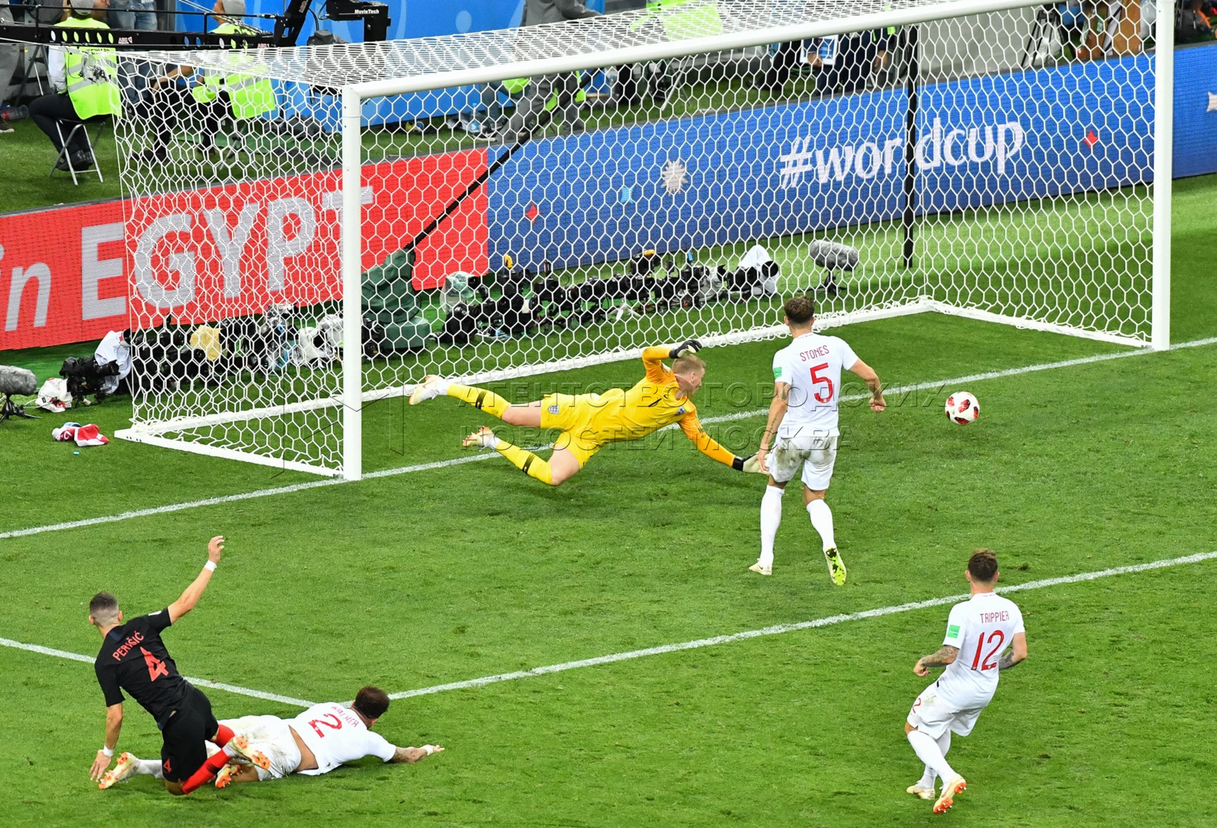 Вратарь сборной Англии Джордан Пикфорд (слева), игрок сборной Хорватии Марио Ман...