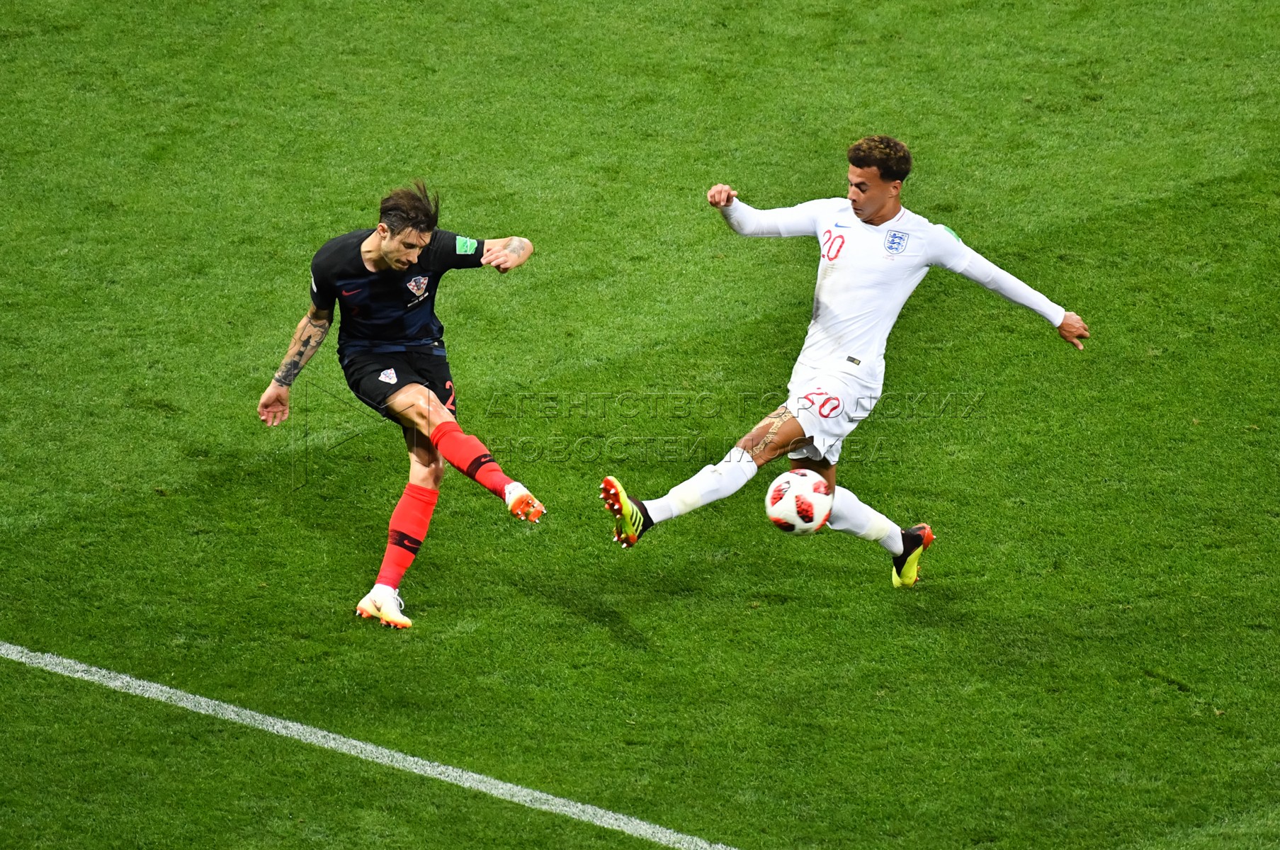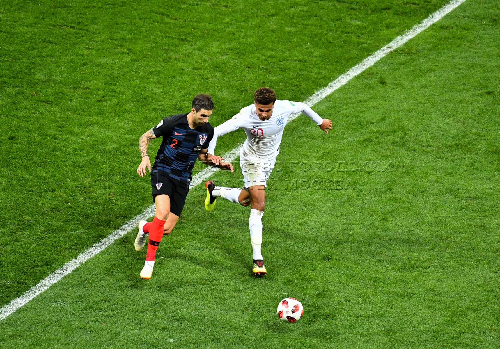 Игрок сборной Хорватии Шиме Врсалько, игрок сборной Англии Деле Алли (слева напра...