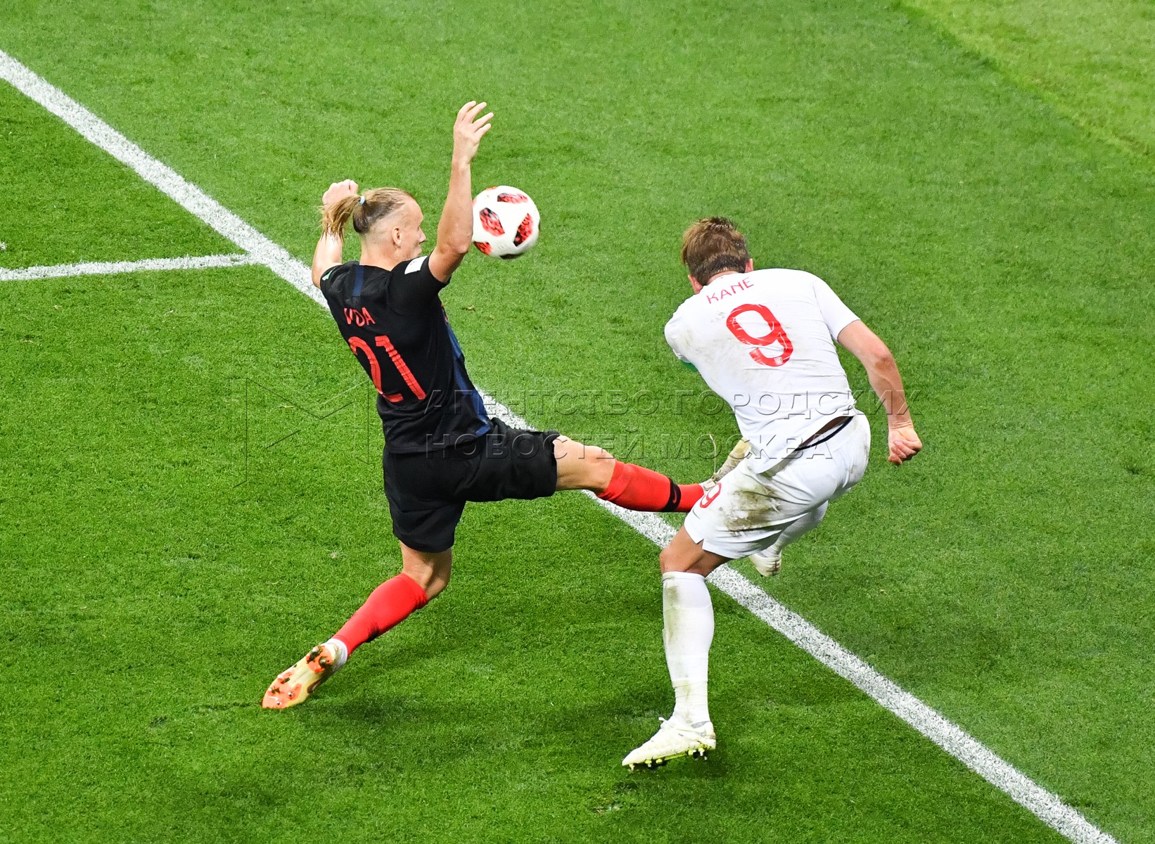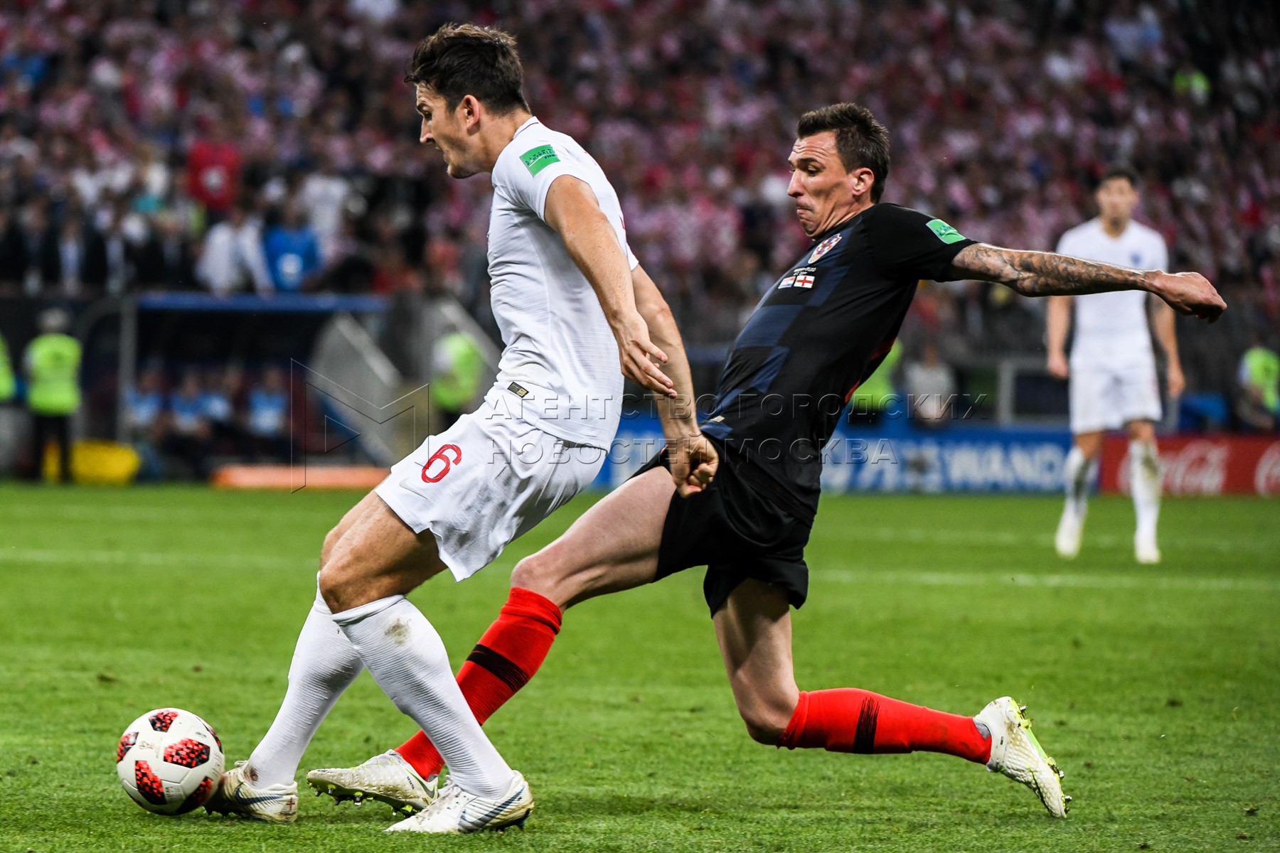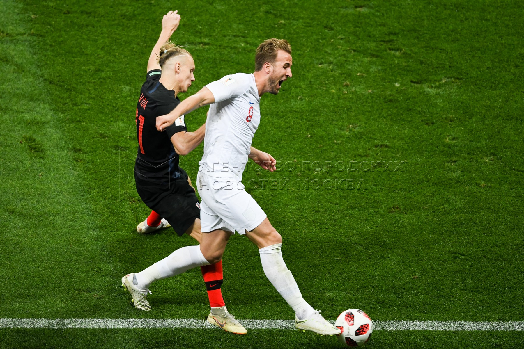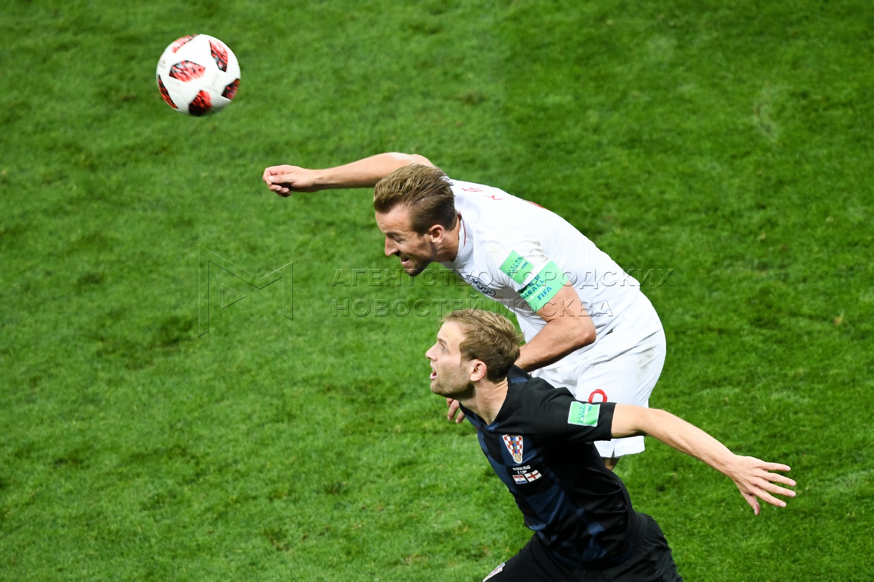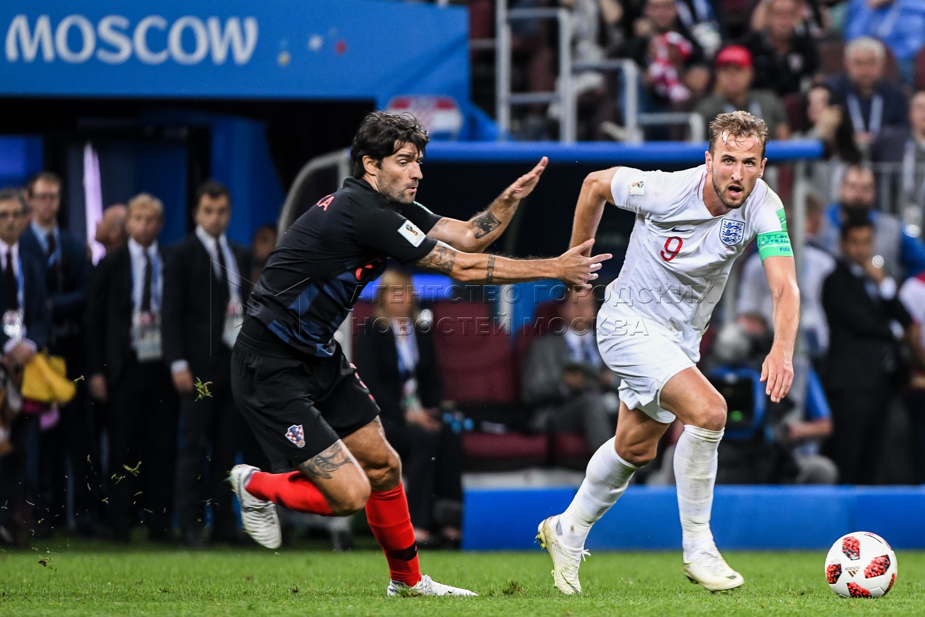 Игрок сборной Хорватии Домагой Вида, игрок сборной Англии Харри Кейн (слева напр...