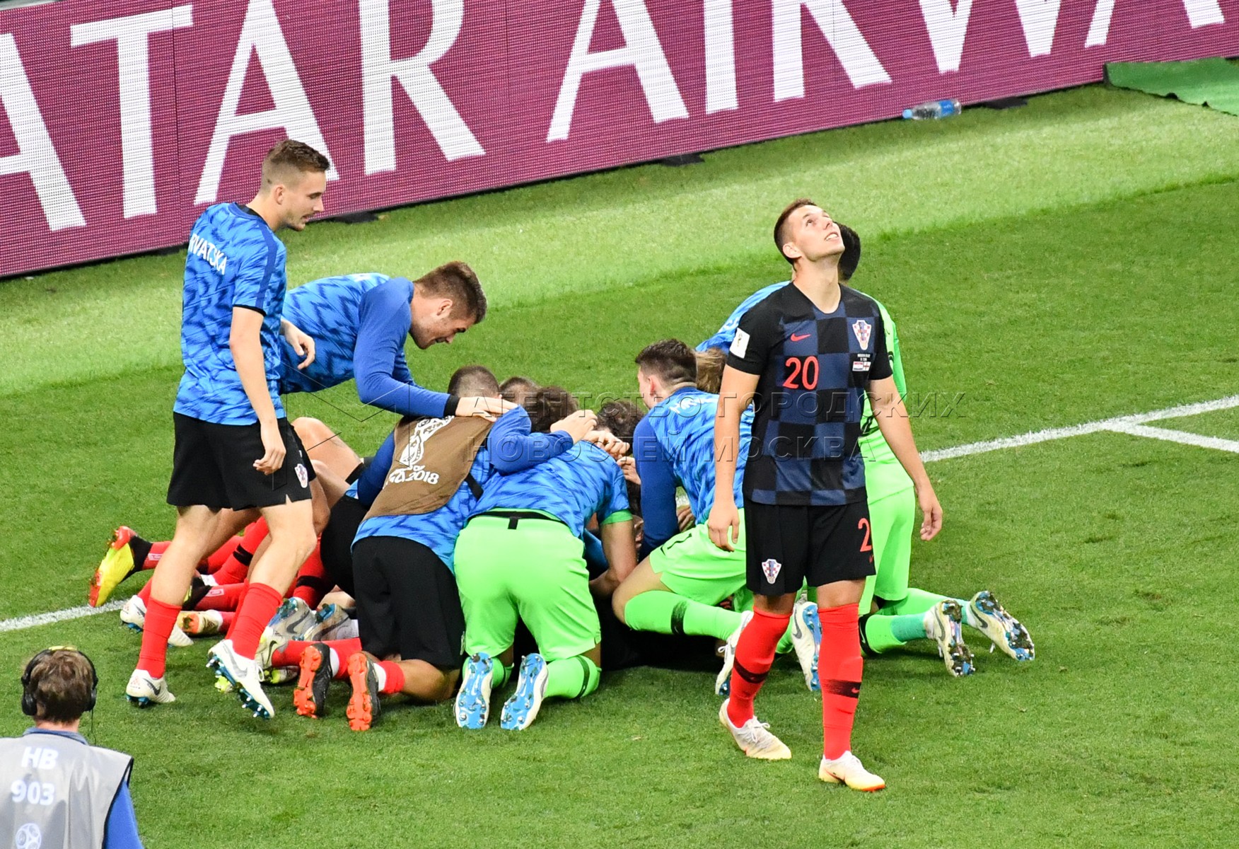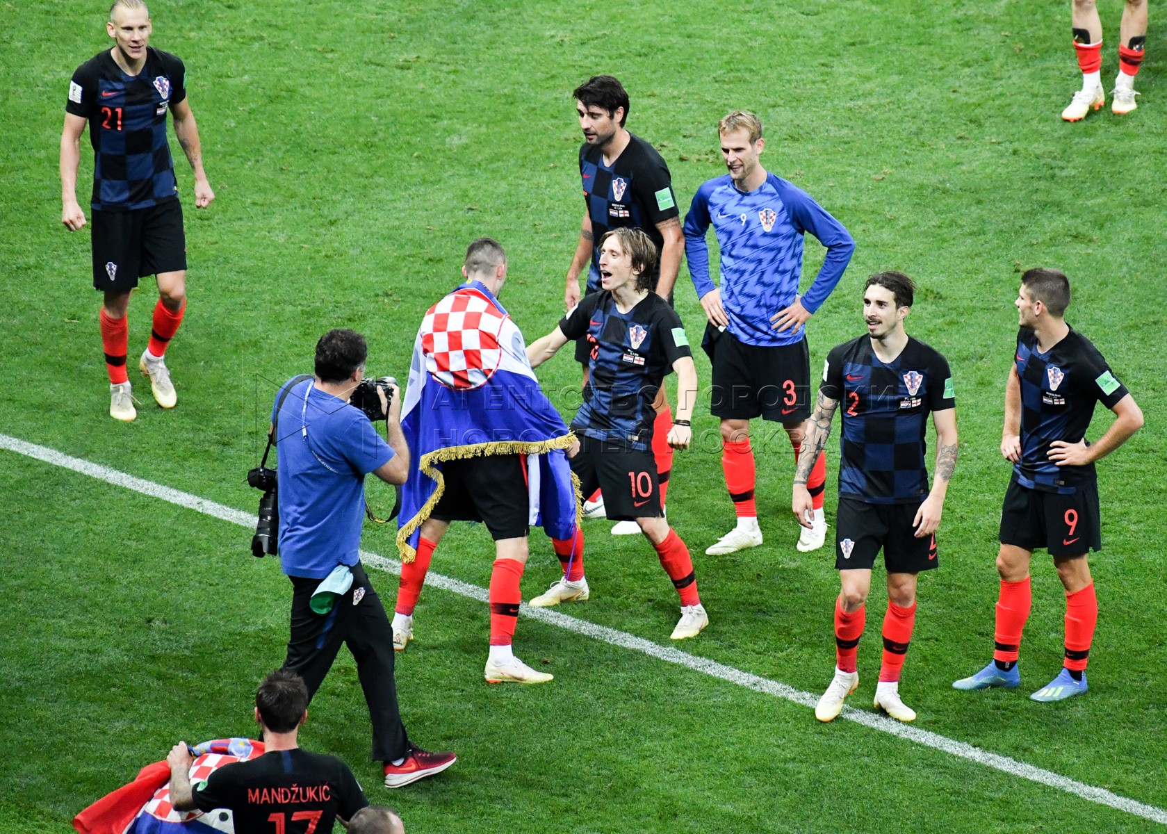 Игроки сборной Хорватии во время матча ЧМ-2018 между сборными Хорватии и Англии ...