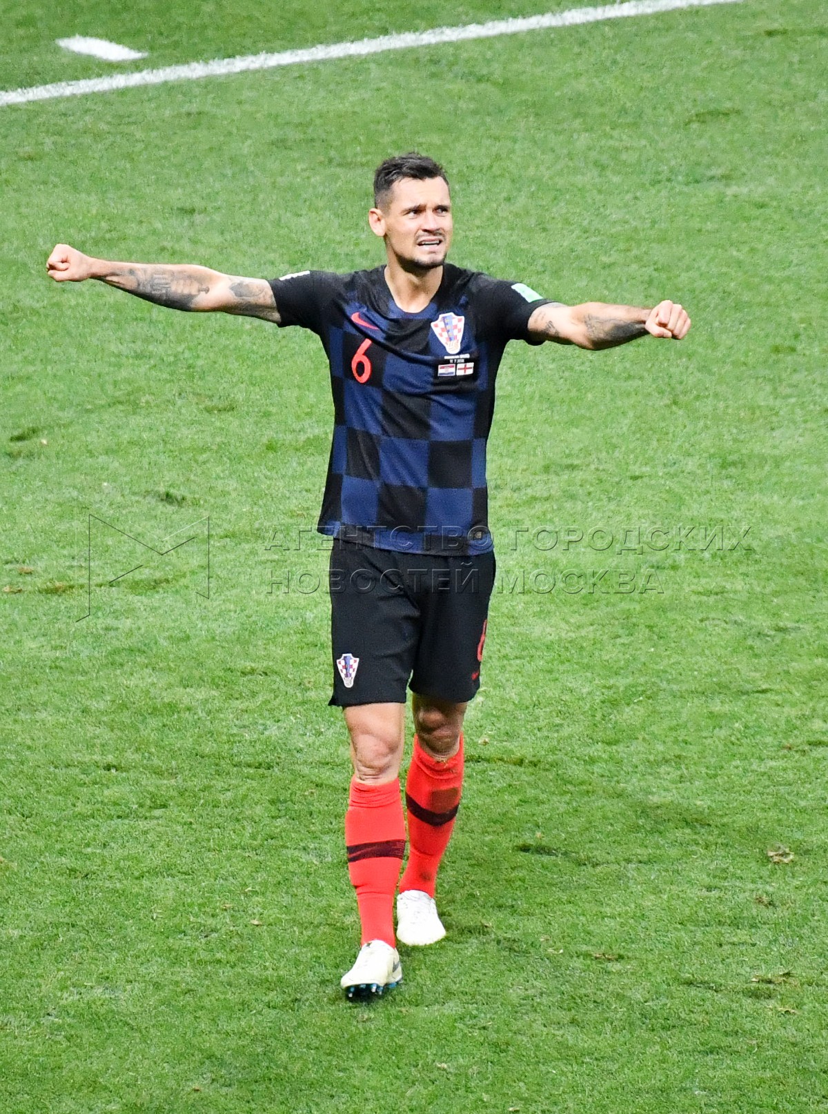 Игрок сборной Хорватии Деян Ловрен во время матча ЧМ-2018 между сборными Хорвати...