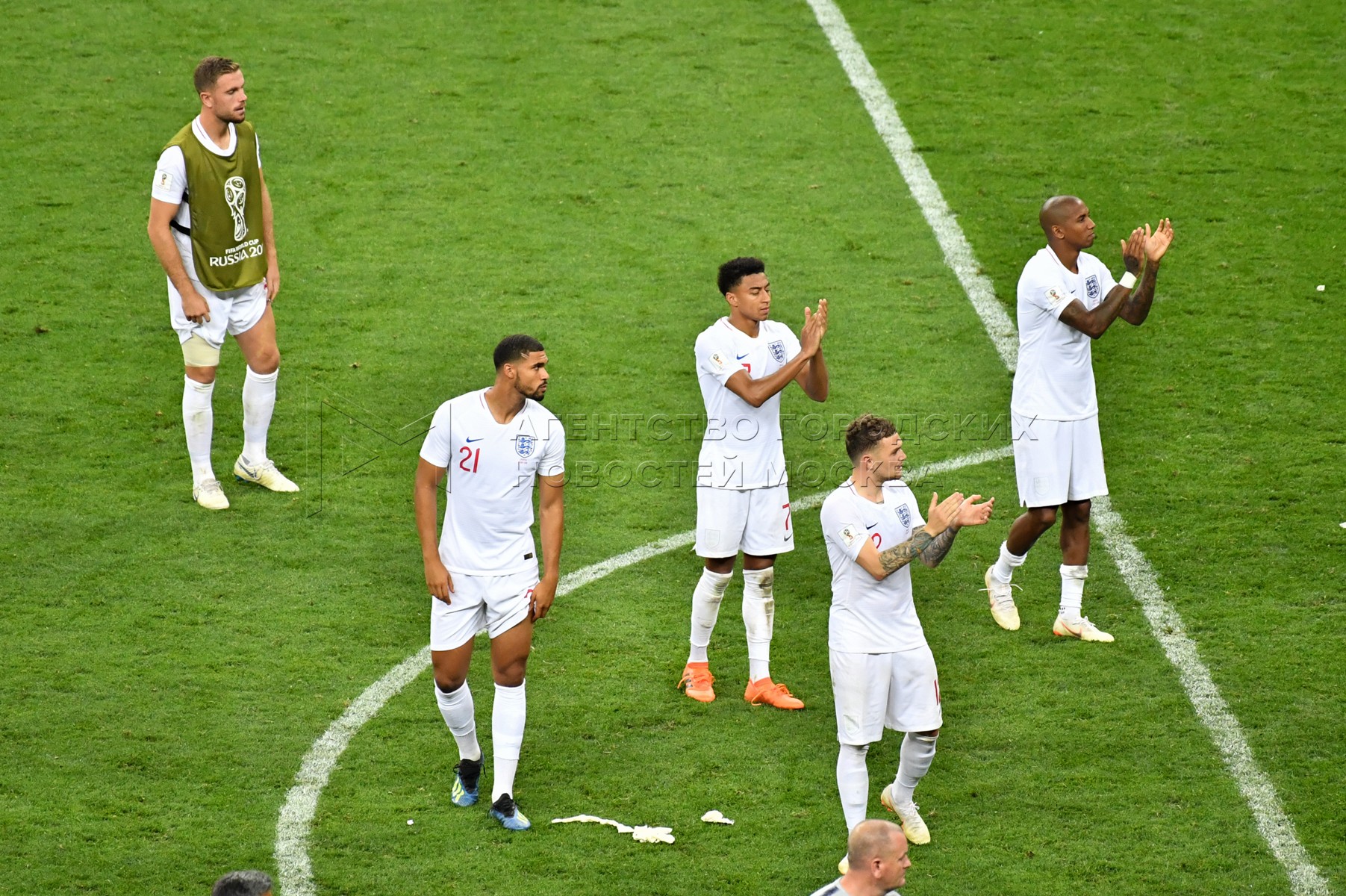 Игроки сборной Англии после окончания матча ЧМ-2018 между сборными Хорватии и Анг...