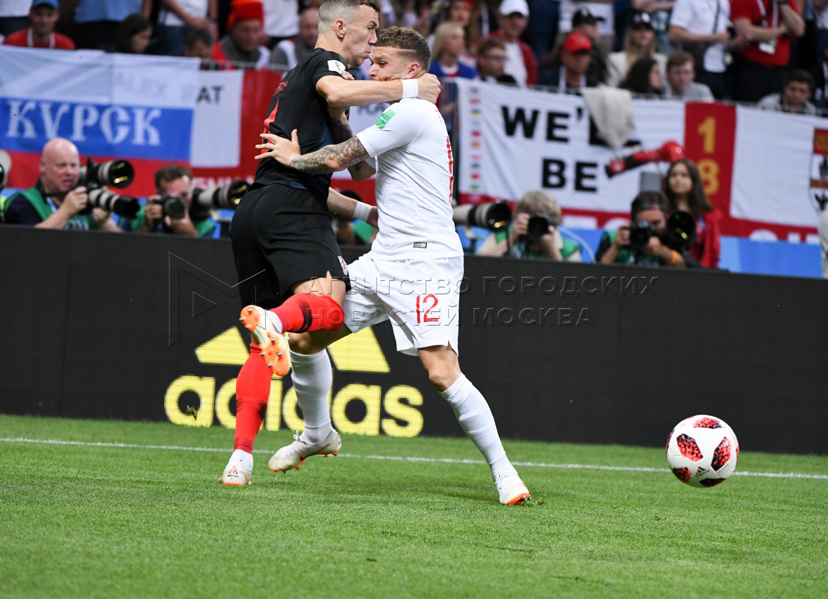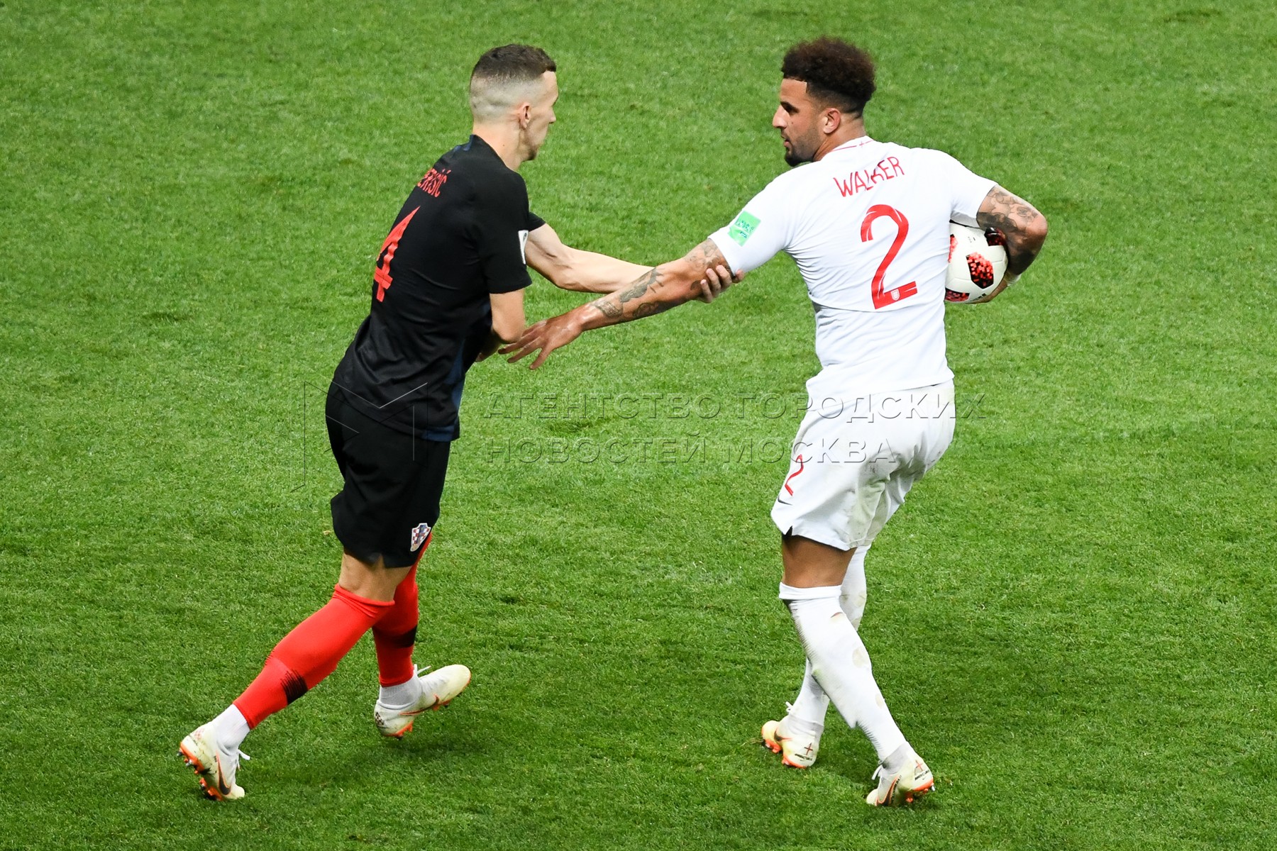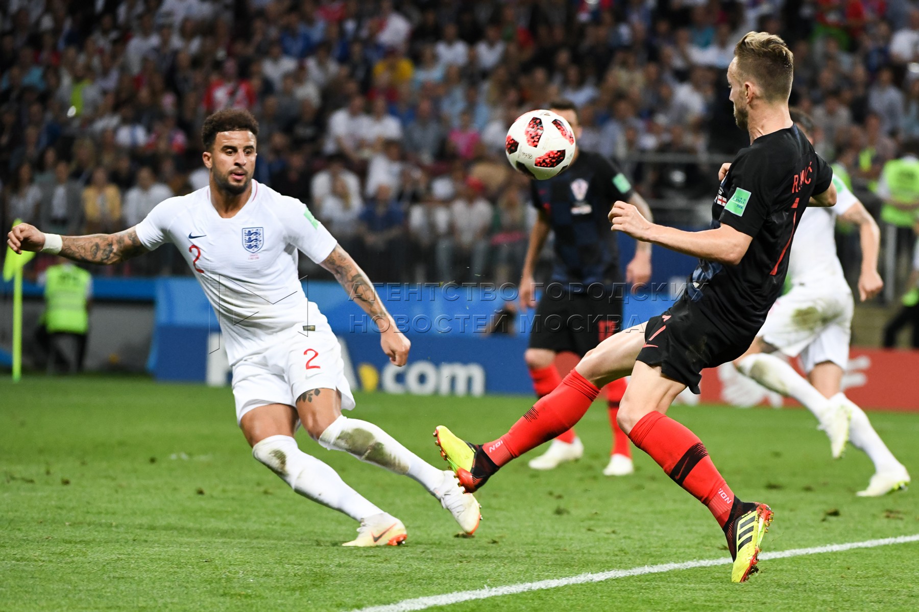 Игрок сборной Англии Киран Триппьер (слева), игрок сборной Хорватии Иван Перишич ...