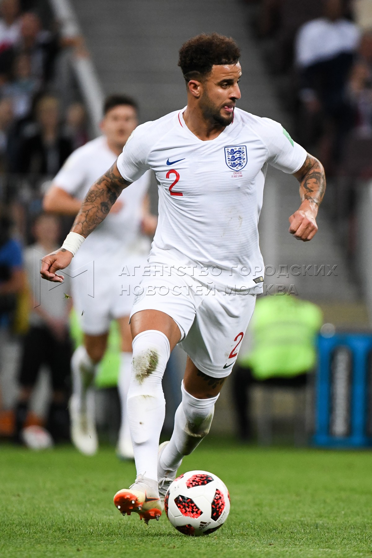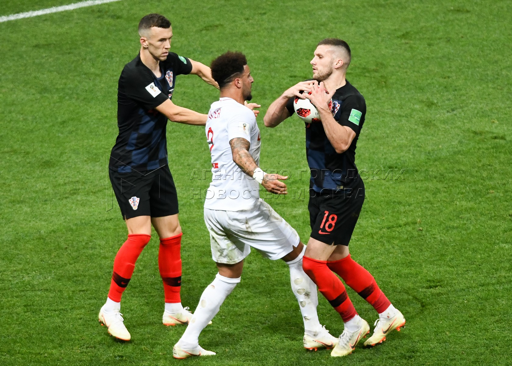 Игрок сборной Англии Киран Триппьер (на втором плане), игрок сборной Хорватии Ива...