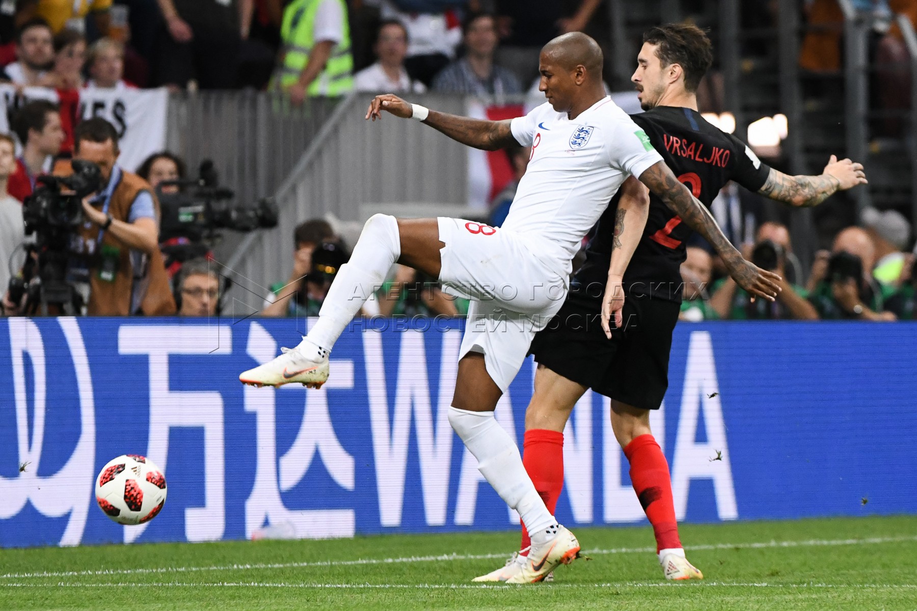 Игрок сборной Хорватии Домагой Вида (слева), игрок сборной Англии Джесси Лингард ...