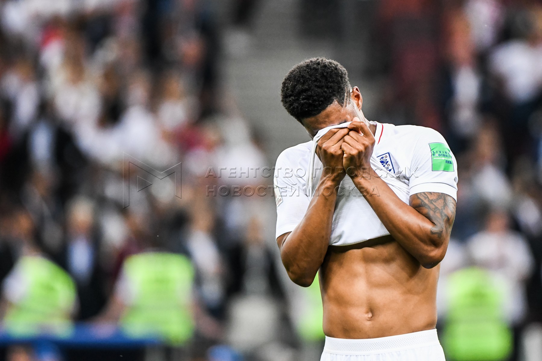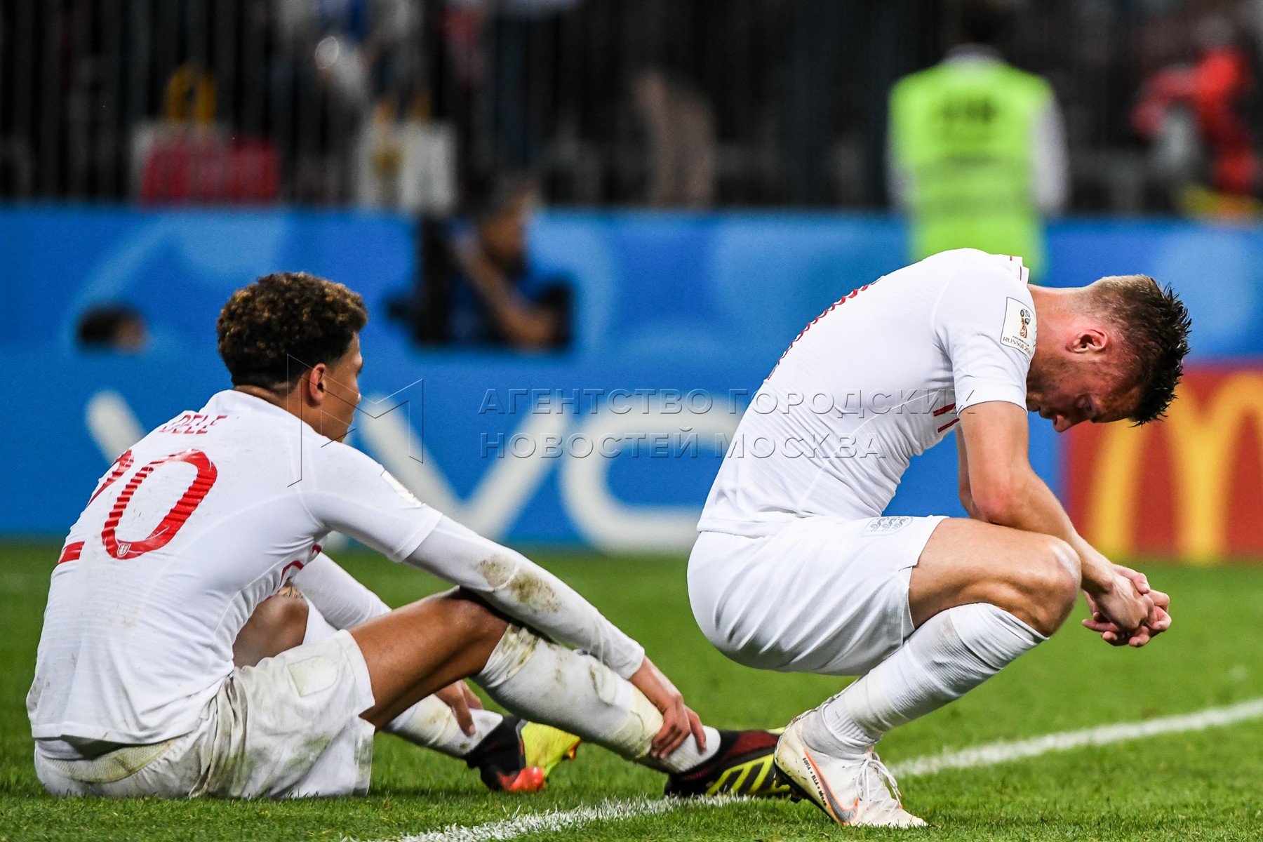 Игрок сборной Англии Харри Магуайр (слева) после окончания матча ЧМ-2018 между сб...