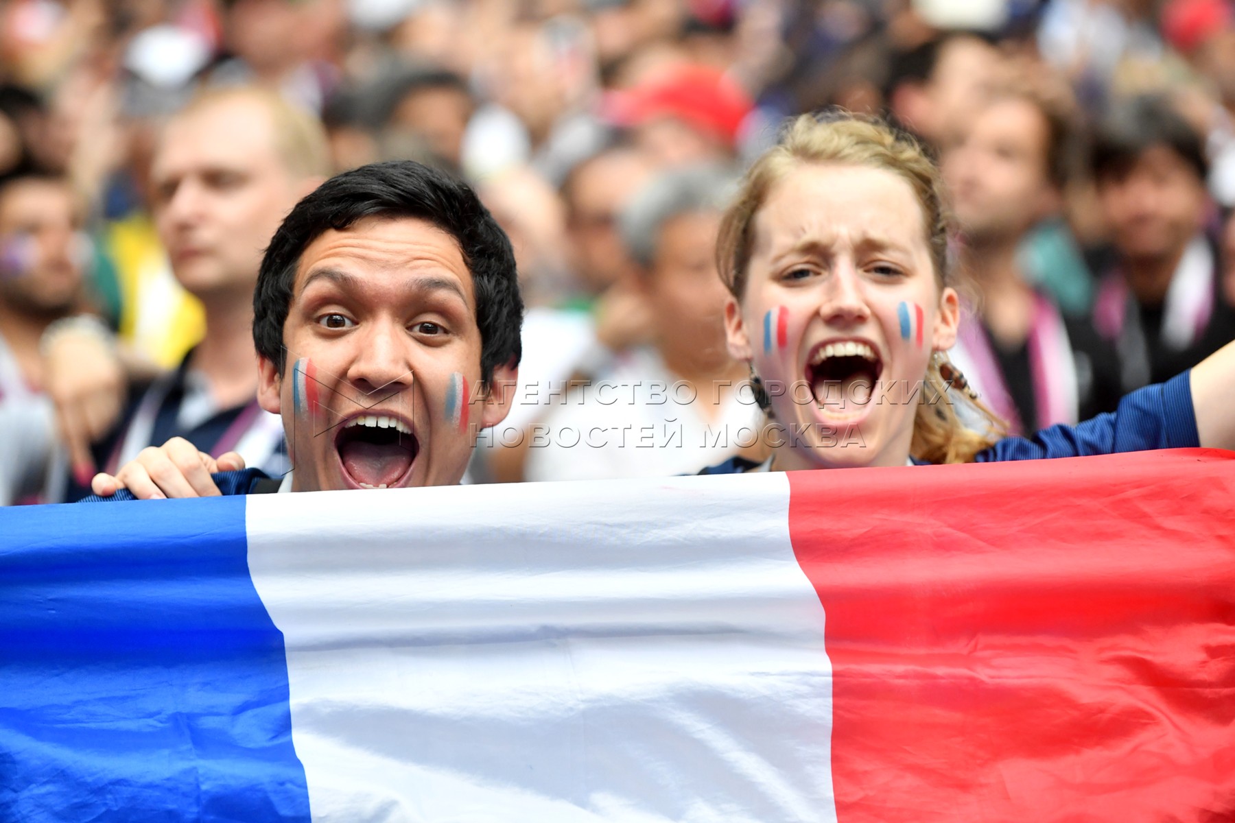 Болельщики во время финального матча чемпионата мира по футболу 2018 г. между сбо...
