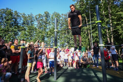 Открытая тренировка с олимпийским чемпионом Алексеем Немовым на воркаут-площадке ...