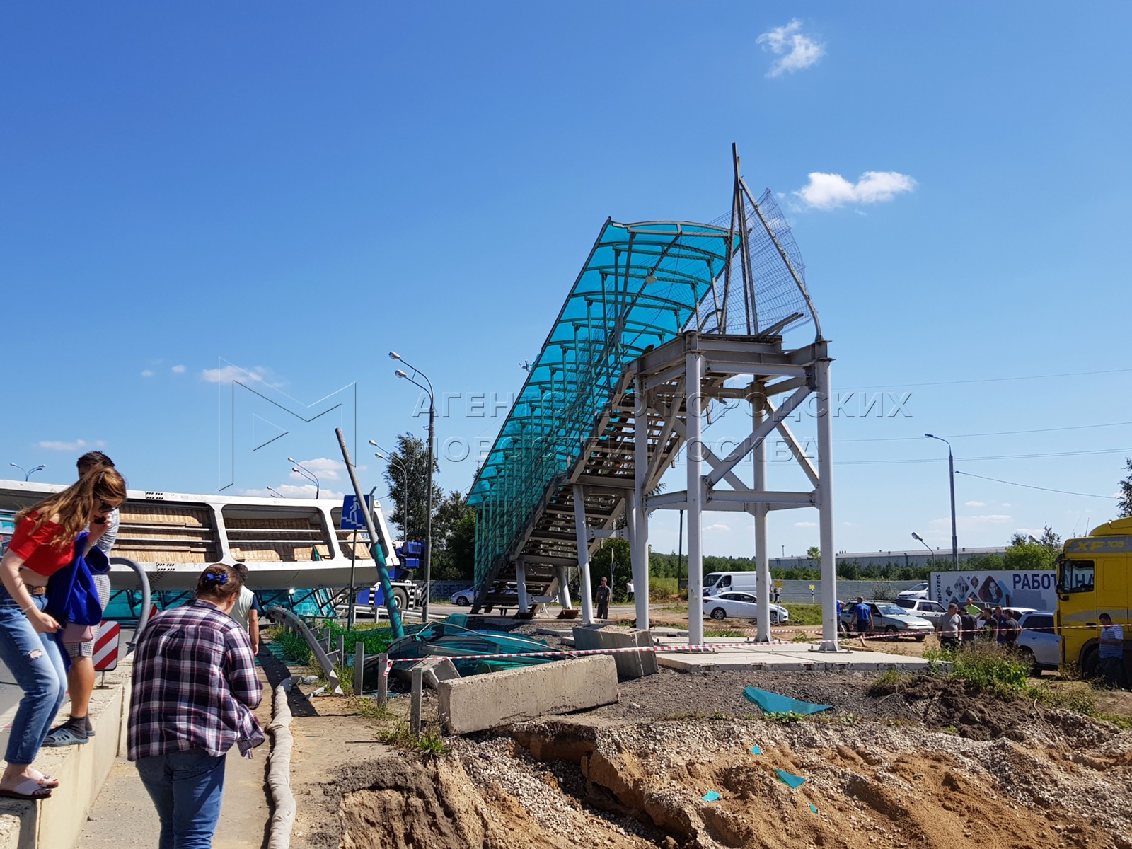 • Описание: Последствия аварии с участием самосвала, врезавшегося в опору надземного пешеходного перехода на 33 км Ярославского шоссе в районе городского округа Пушкино.