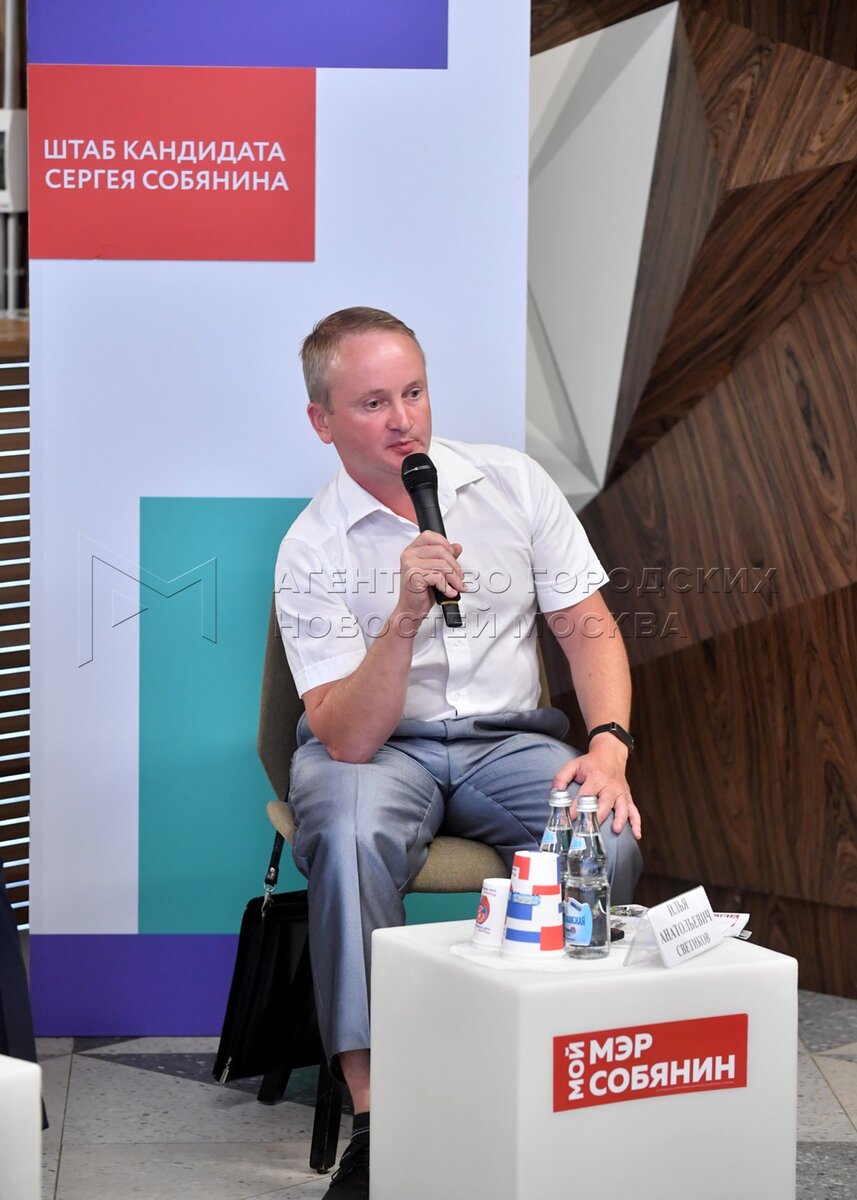 - Описание: Кандидат в мэры Москвы Сергей Собянин в избирательном штабе во время обсуждения с экспертным сообществом программ по развитию столичных районов в рамках своей агитационной кампании. Автор фото: Киселев Сергей.