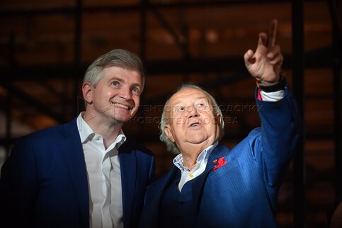 Руководитель департамента культуры Москвы Александр Кибовский (слева) и скульптор...