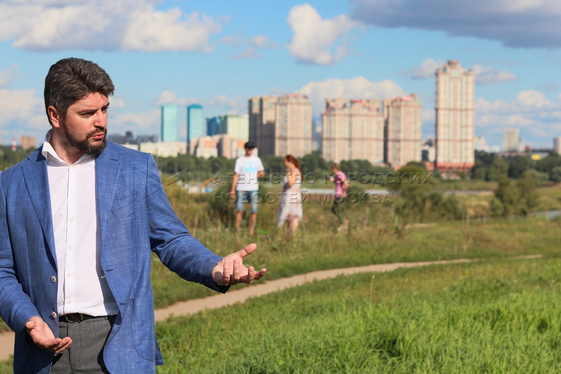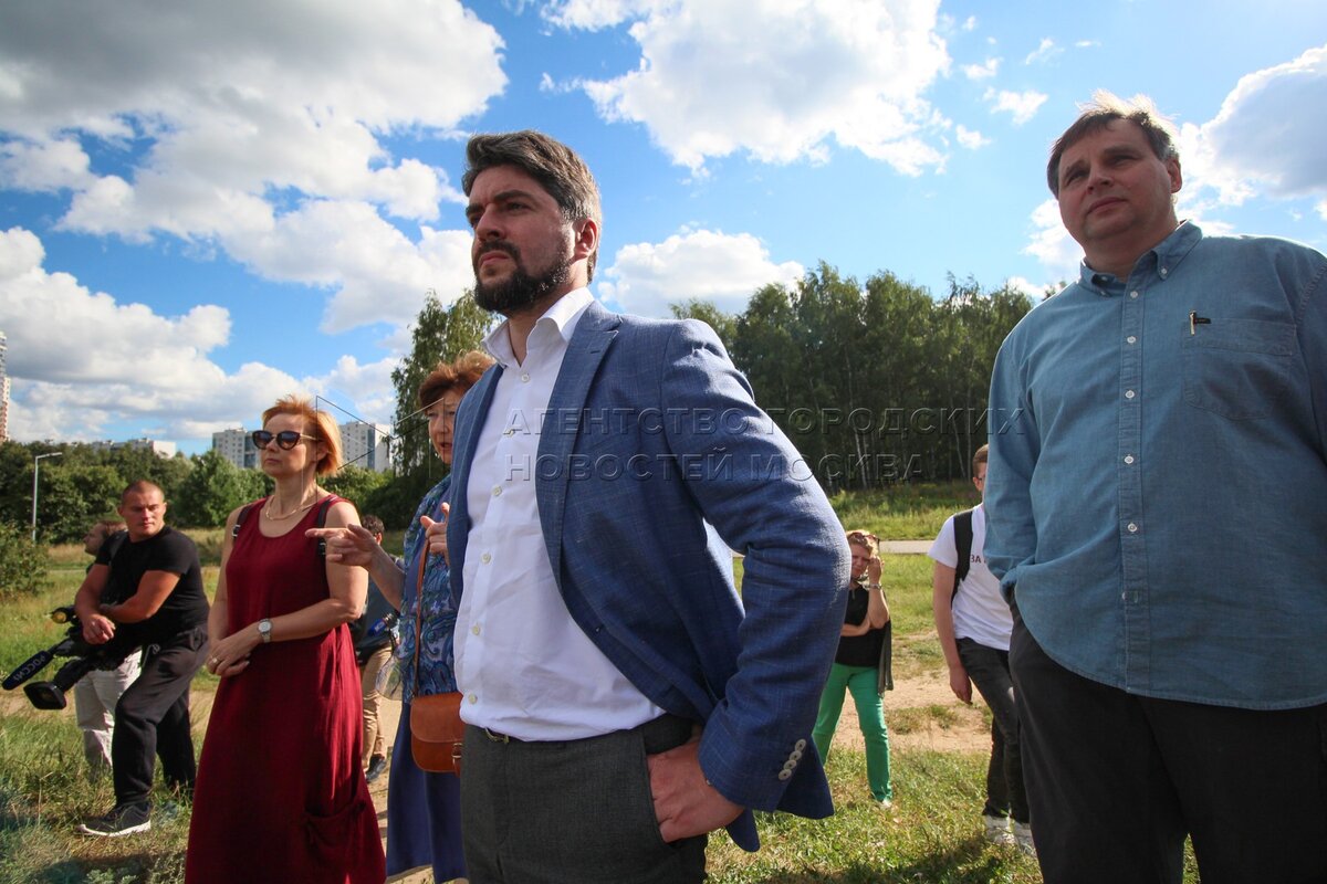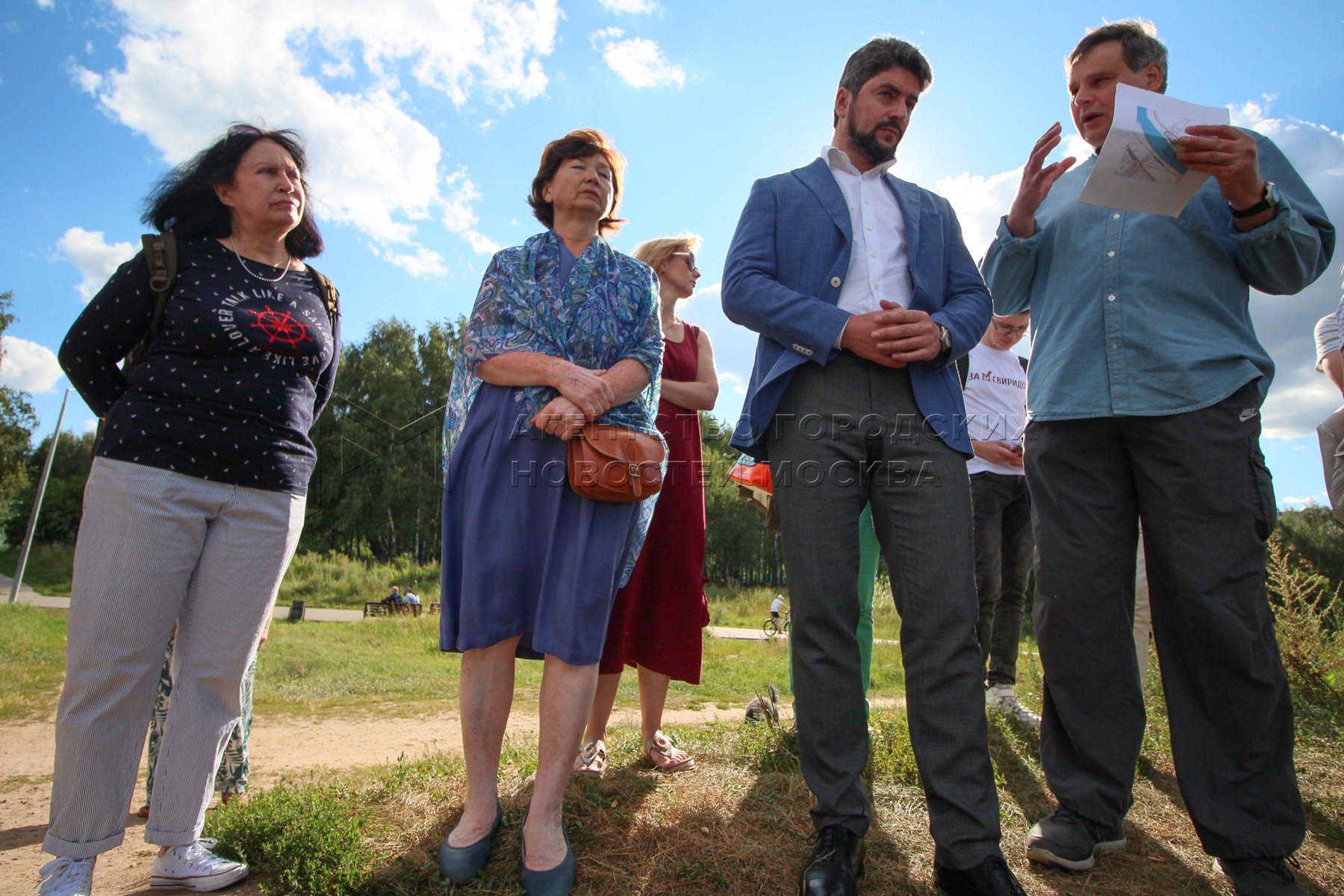 Встреча кандидата в мэры столицы Ильи Свиридова с жителями района Строгино для обсуждения строительства моста через Москву-реку на территории у стадиона «Спартак».