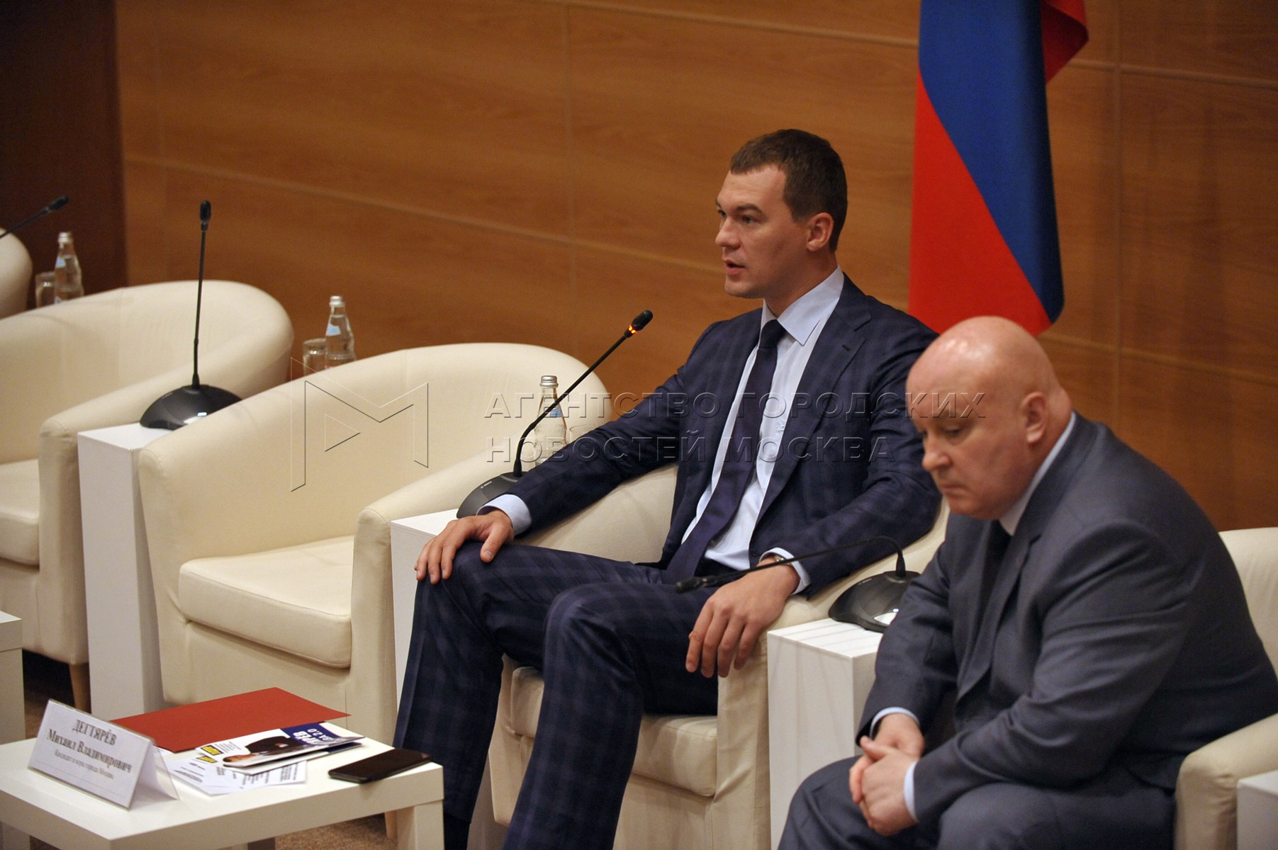 - Описание: Кандидат в мэры Москвы от ЛДПР Михаил Дегтярев во время круглого стола «Москва глазами москвичей» в Малом зале Госдумы.