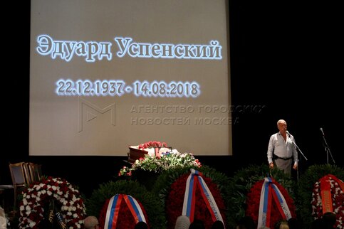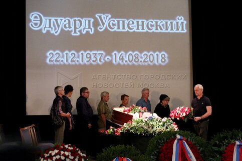 • Описание: Церемония прощания с детскими писателем Эдуардом Успенским в большом зале Центрального дома литераторов. Автор: Кардашов Антон.
