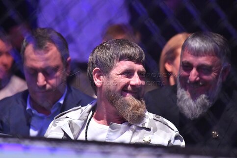Глава Чеченской республики Рамзан Кадыров (в центре) во время поединка в рамках т...