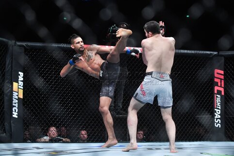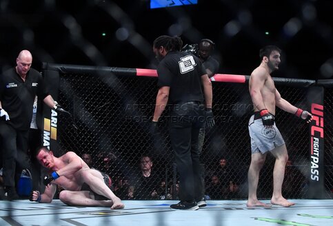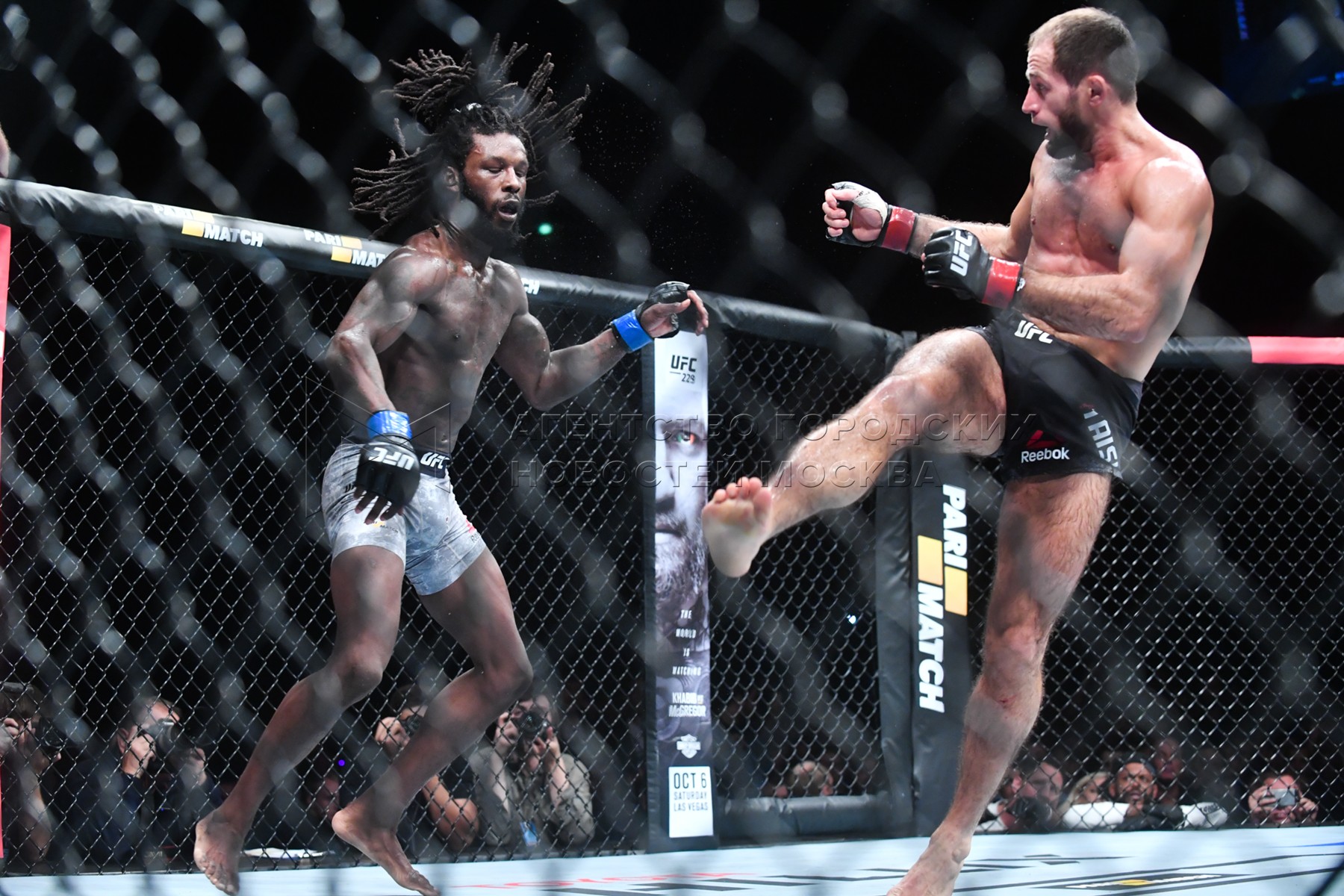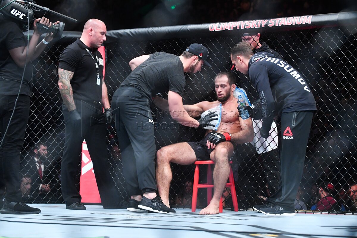 Боец Рамазан Эмеев (Россия) во время поединка в рамках турнира UFC Fight Night Mo...