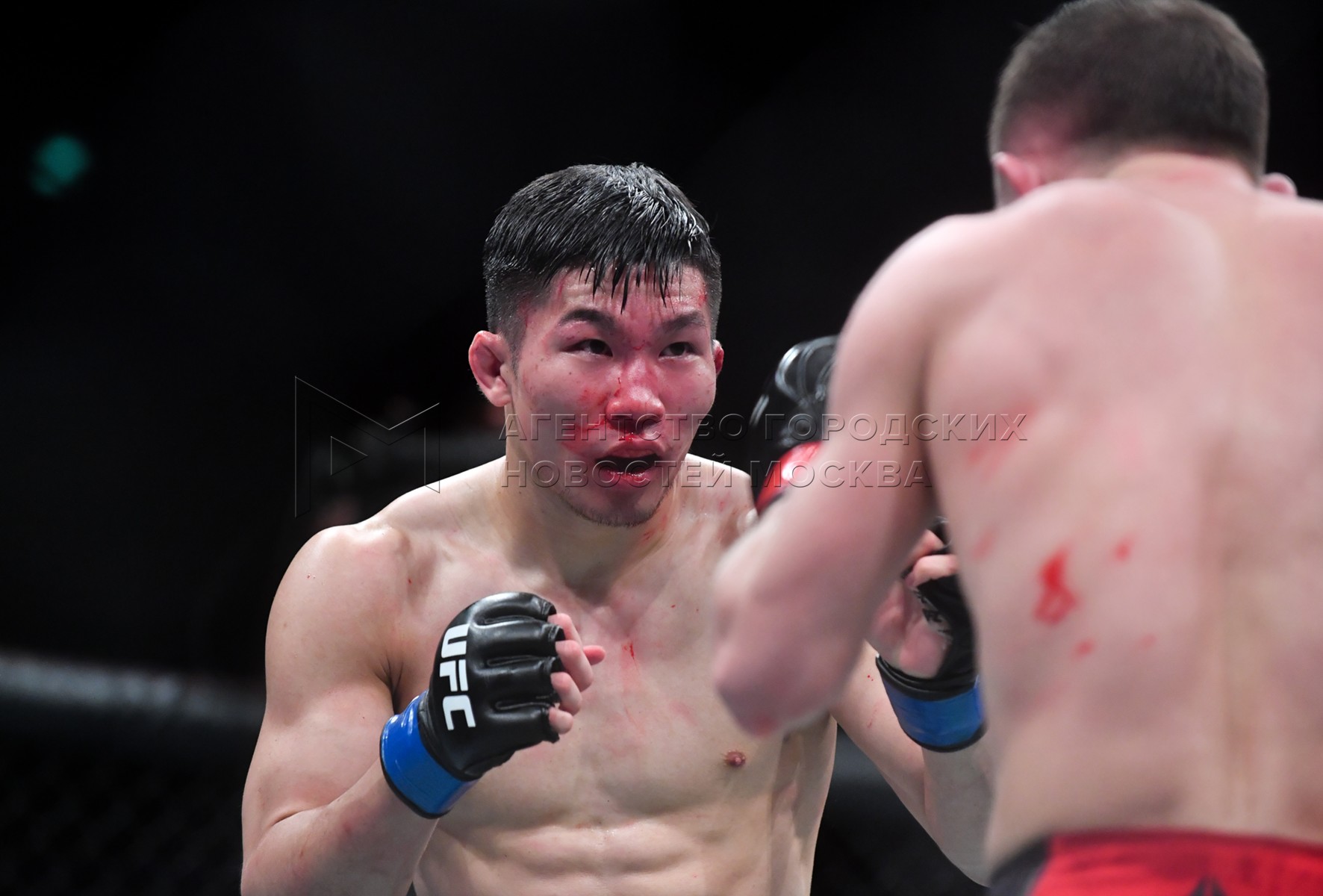 Боец Джин Су Сон (Республика Корея) во время поединка в рамках турнира UFC Fight ...