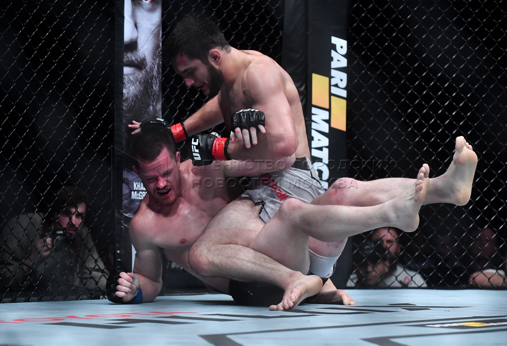 Российский боец смешанного стиля Рустам Хабилов (сверху) и канадский боец смешанн...