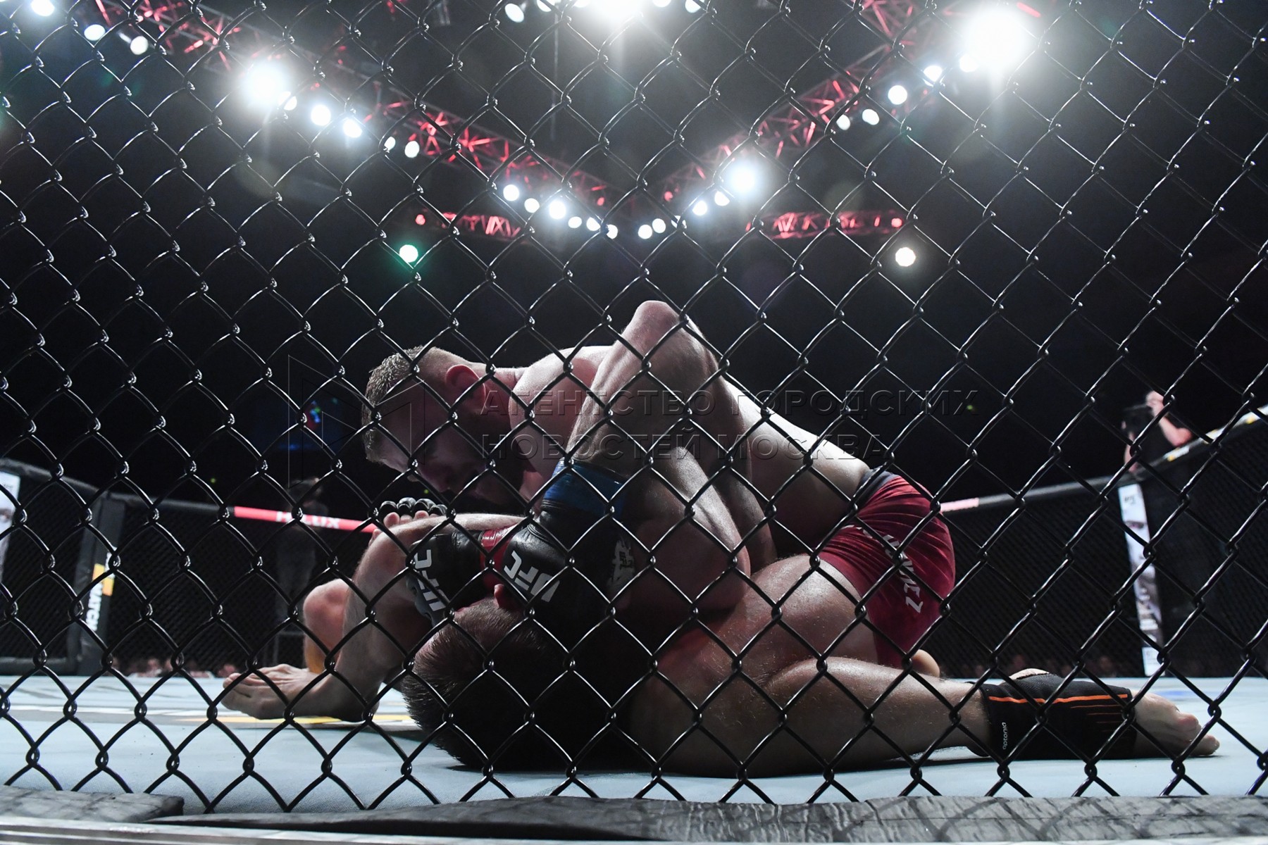 Боец Алексей Олейник (Россия) во время поединка в рамках турнира UFC Fight Night ...