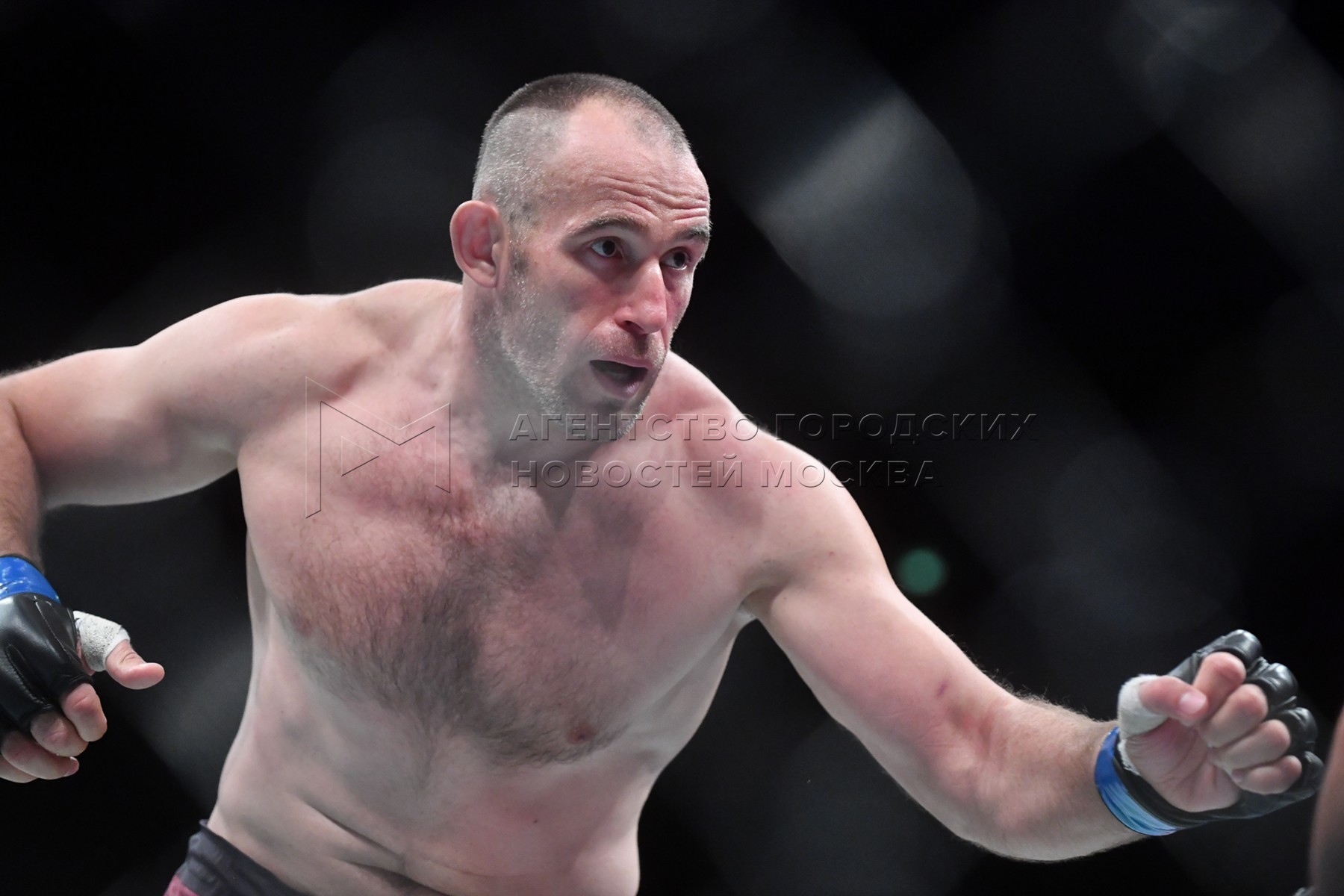 Российский боец смешанного стиля Рустам Хабилов во время поединка в рамках турнир...