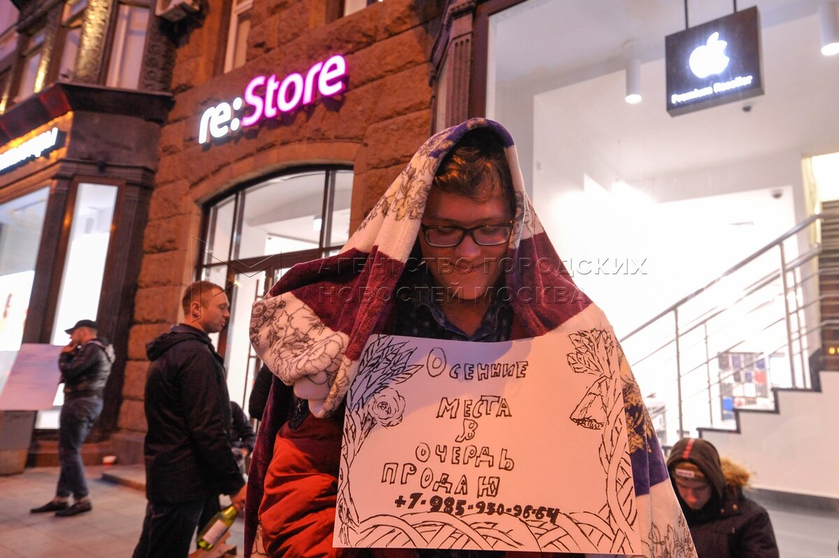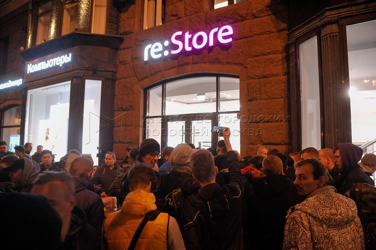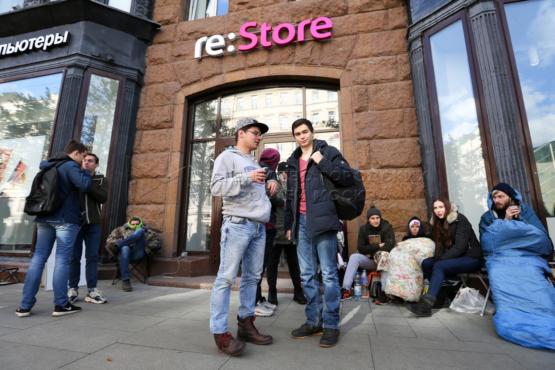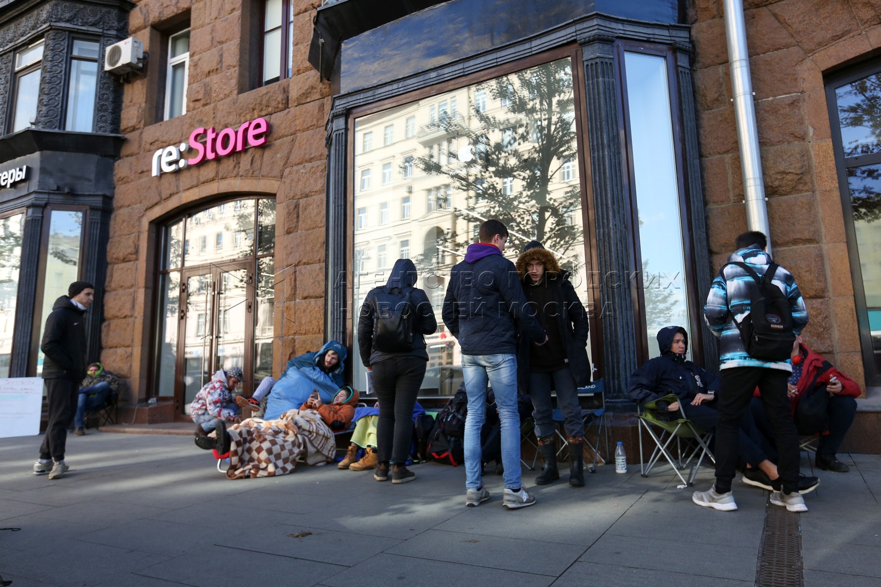 • Заголовок: Очередь у магазина re:Store на ул. Тверская перед стартом продаж новых моделей iPhone