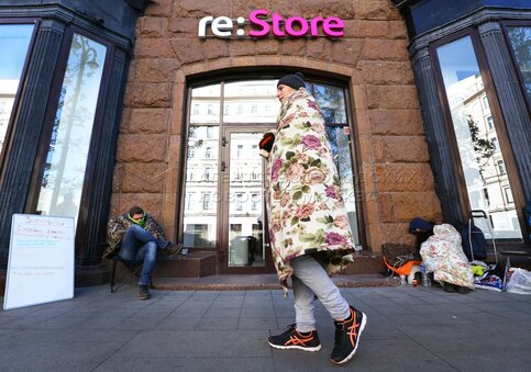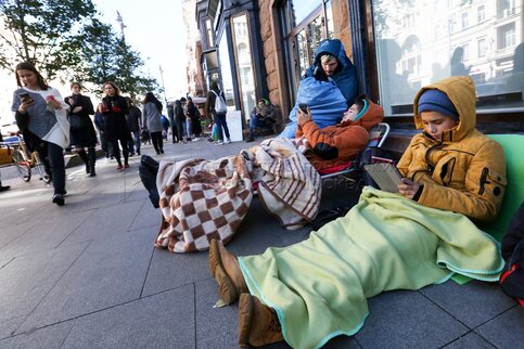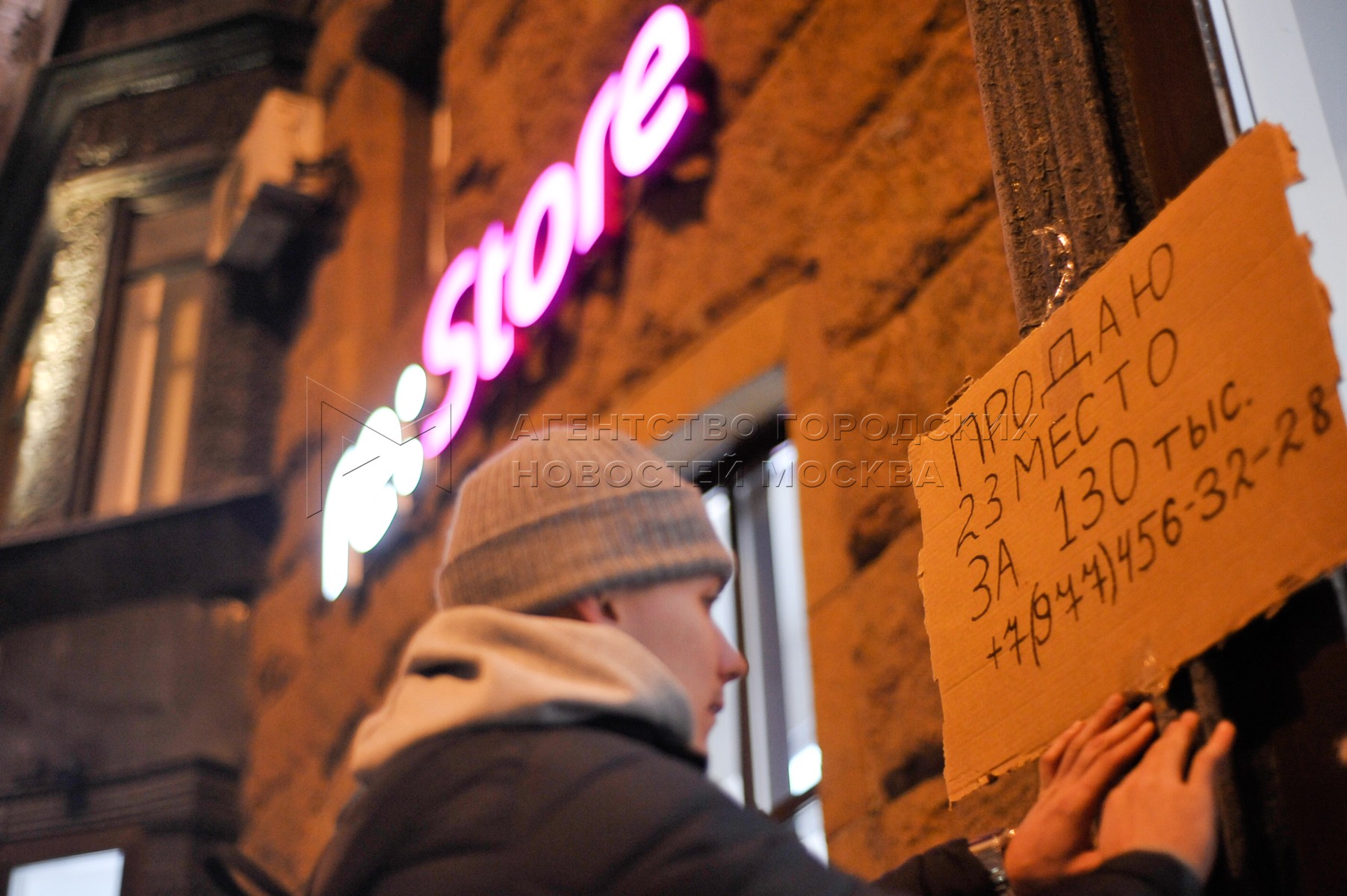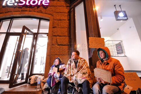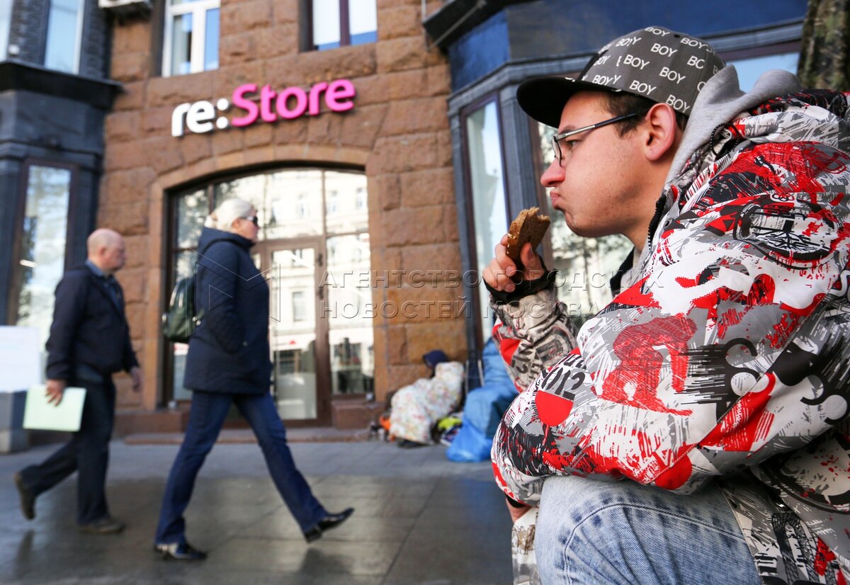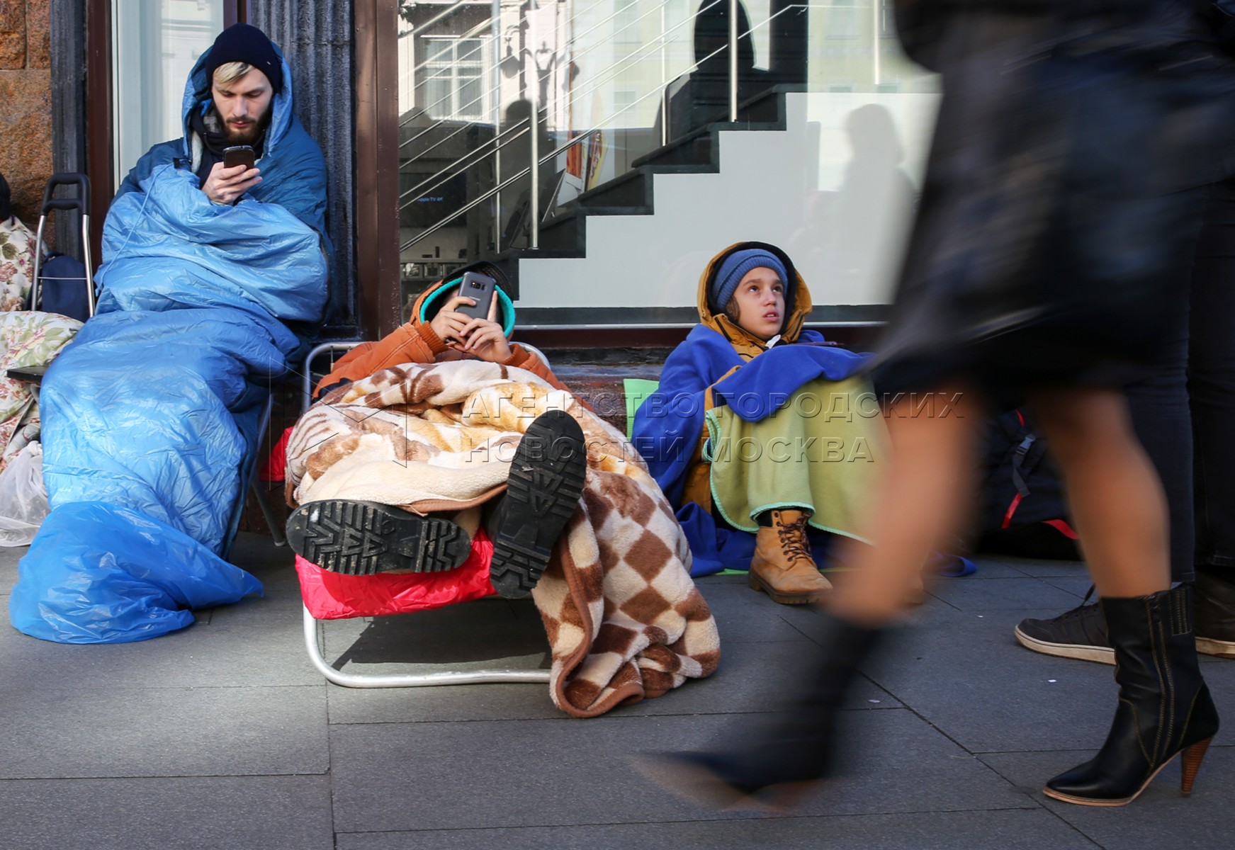 • Заголовок: Очередь у магазина re:Store на ул. Тверская перед стартом продаж новых моделей iPhone