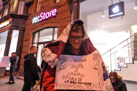 • Описание: Очередь у магазина re:Store на ул. Тверская перед стартом продаж новых моделей iPhone. Автор: Зыков Кирилл.