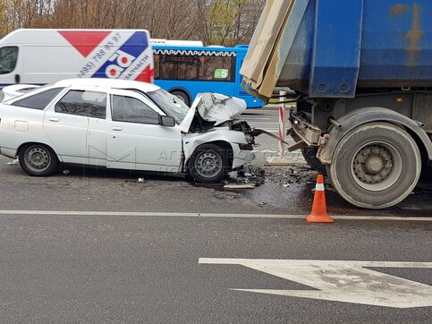 • Описание: Последствия ДТП c участием легкового автомобиля и грузовика в районе д. 32 на ул. Подольских Курсантов.
