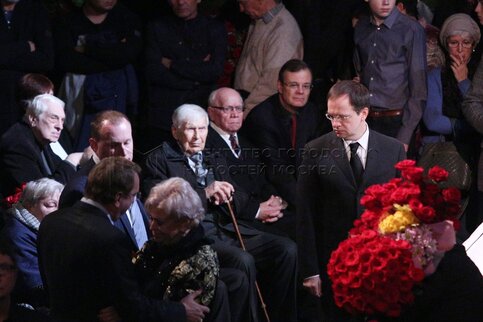 Актер Александр Пашутин (в центре) на церемонии прощания с народным артистом РСФС...