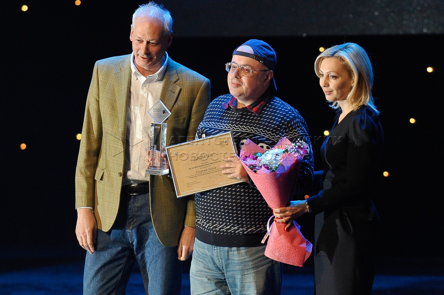 - Описание: Заместитель министра цифрового развития, связи и массовых коммуникаций РФ Алексей Волин, лауреат премии Союза журналистов России «За профессиональное мастерство» специальный корреспондент издательского дома «Аргументы и факты» Георгий Зотов и заместитель председателя Государственной Думы РФ Ольга Тимофеева (слева направо) на торжественном собрании в Центральном академическом театре Российской Армии, посвященном 100-летию Союза журналистов России.