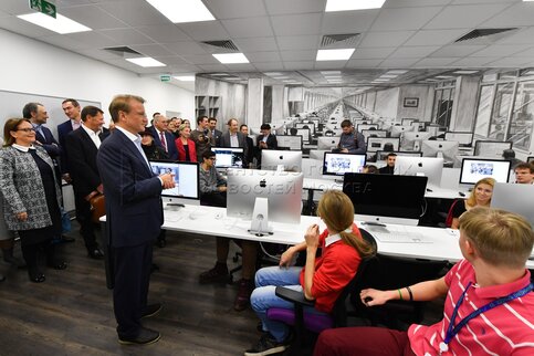 • Описание: Президент, председатель правления Сбербанка РФ Герман Греф на церемонии открытия «Школы 21», созданной при поддержке Сбербанка.