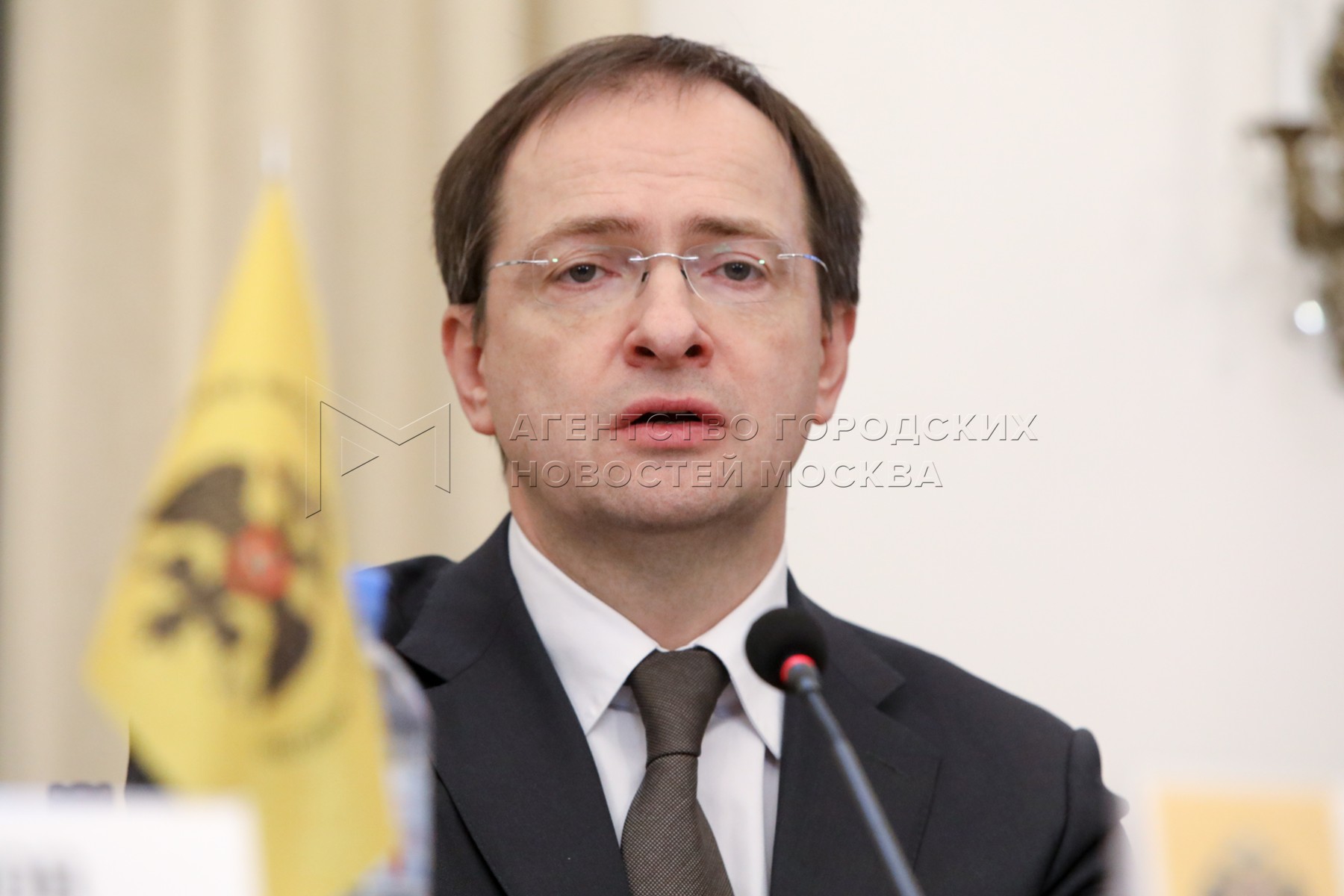 - Описание: Министр культуры РФ, председатель Российского военно-исторического общества Владимир Мединский во время презентации рассекреченных материалов по обороне Москвы в 1941 г. в штаб-квартире РВИО.