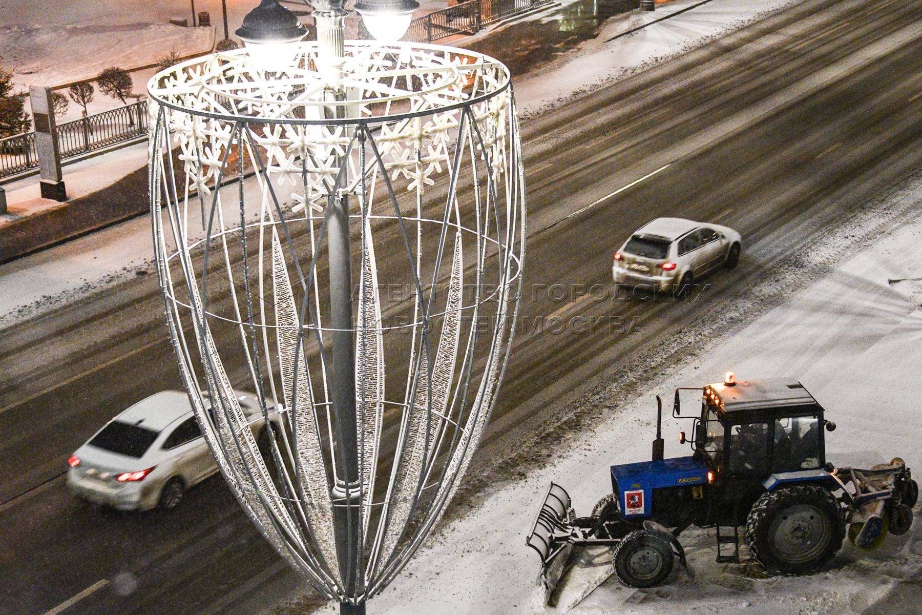 • Заголовок: Устранение последствий ночного снегопада в Москве