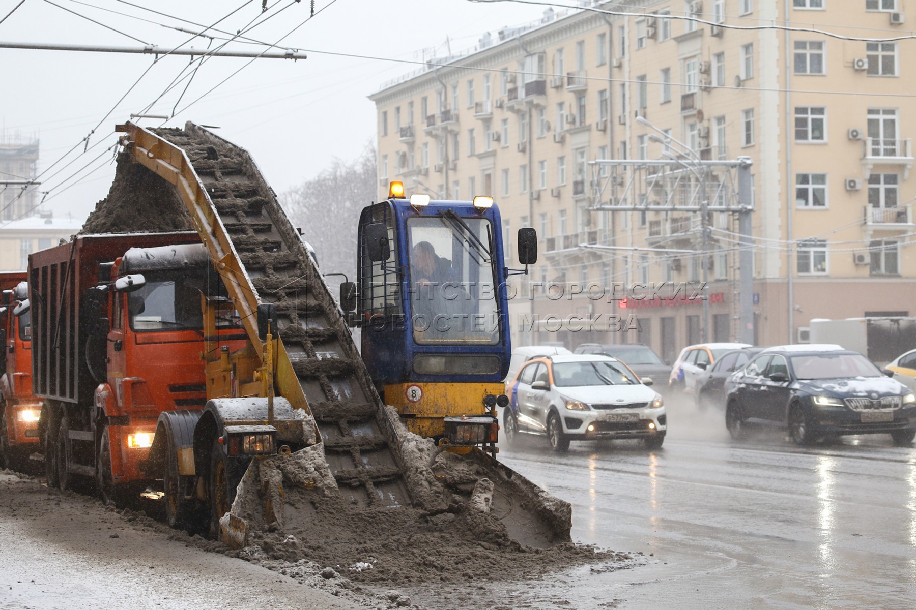 • Заголовок: Устранение последствий ночного снегопада в Москве