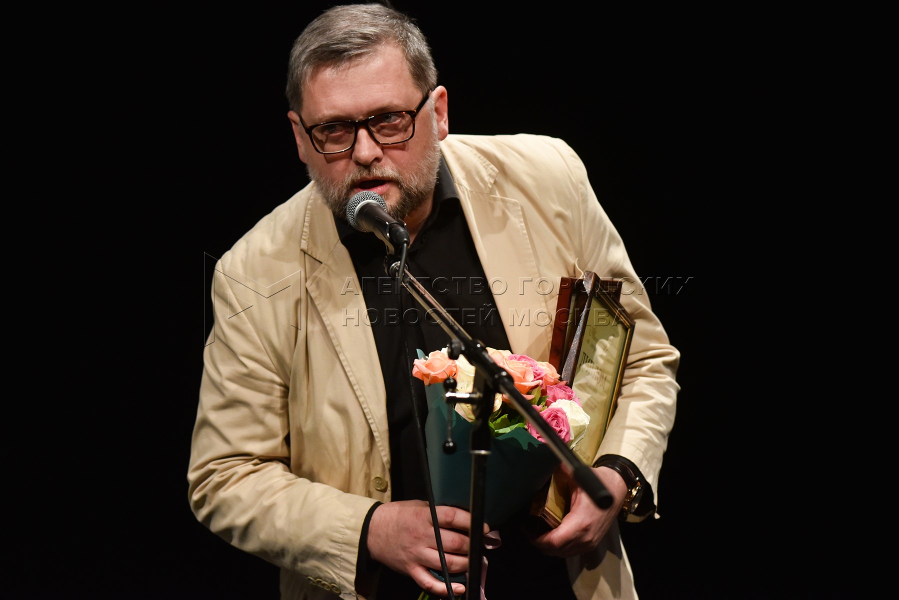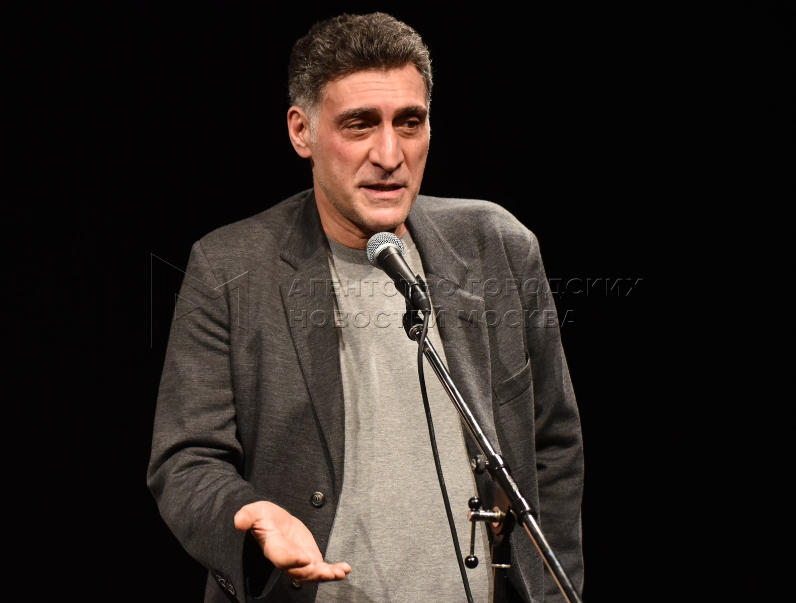 • Описание: Режиссер, актер и сценарист Тигран Кеосаян во время награждения победителей конкурса на лучшую современную пьесу года в театре им. Моссовета.