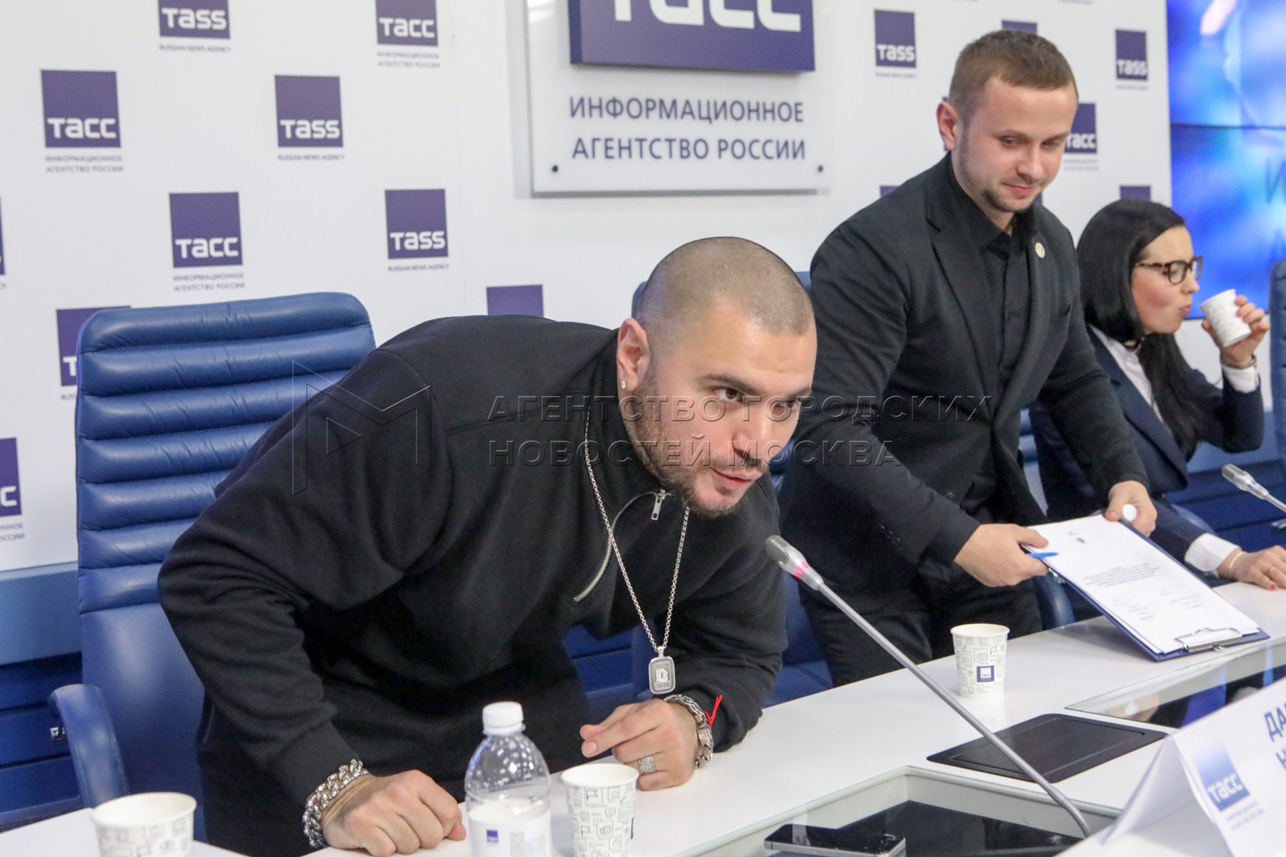 Рэп-исполнитель Птаха (Давид Нуриев) во время пресс-конференции о ситуации вокруг...