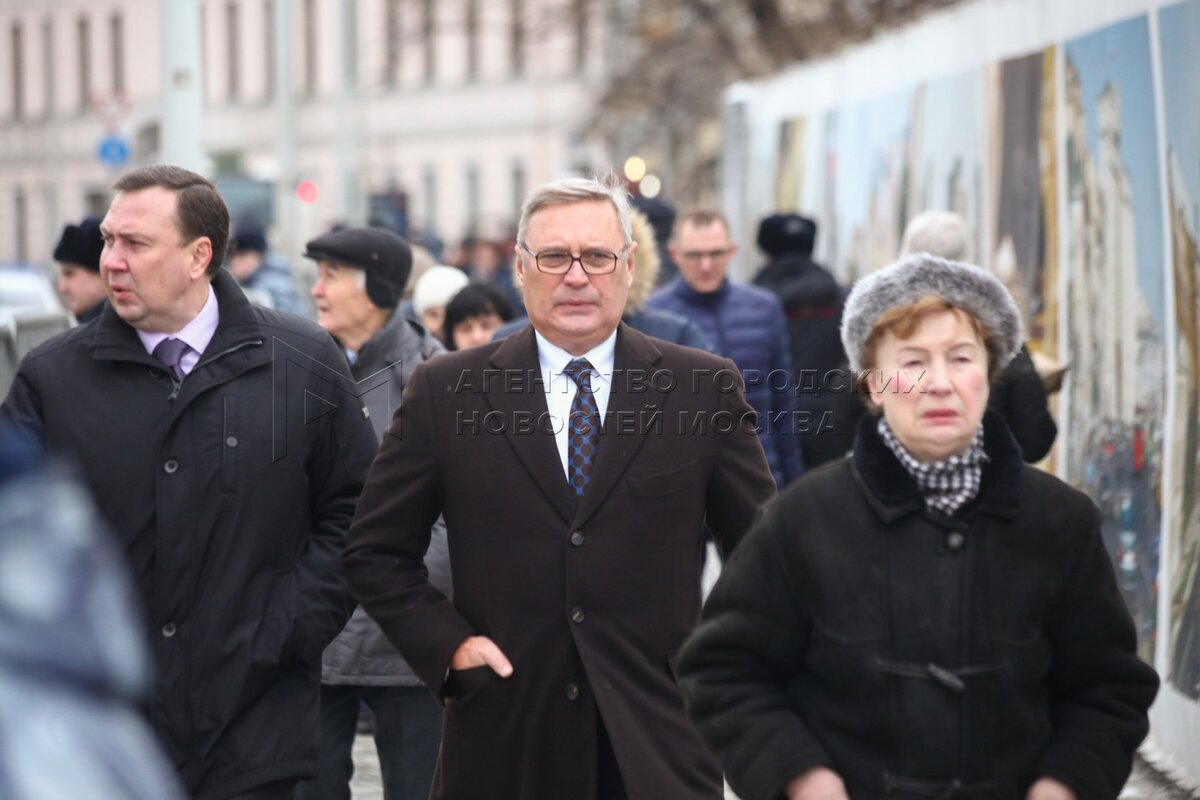 Михаил Касьянов (в центре) на церемонии прощания с правозащитницей Людмилой Алекс...